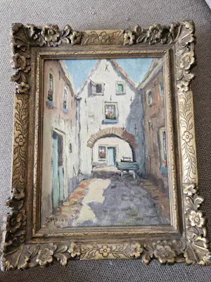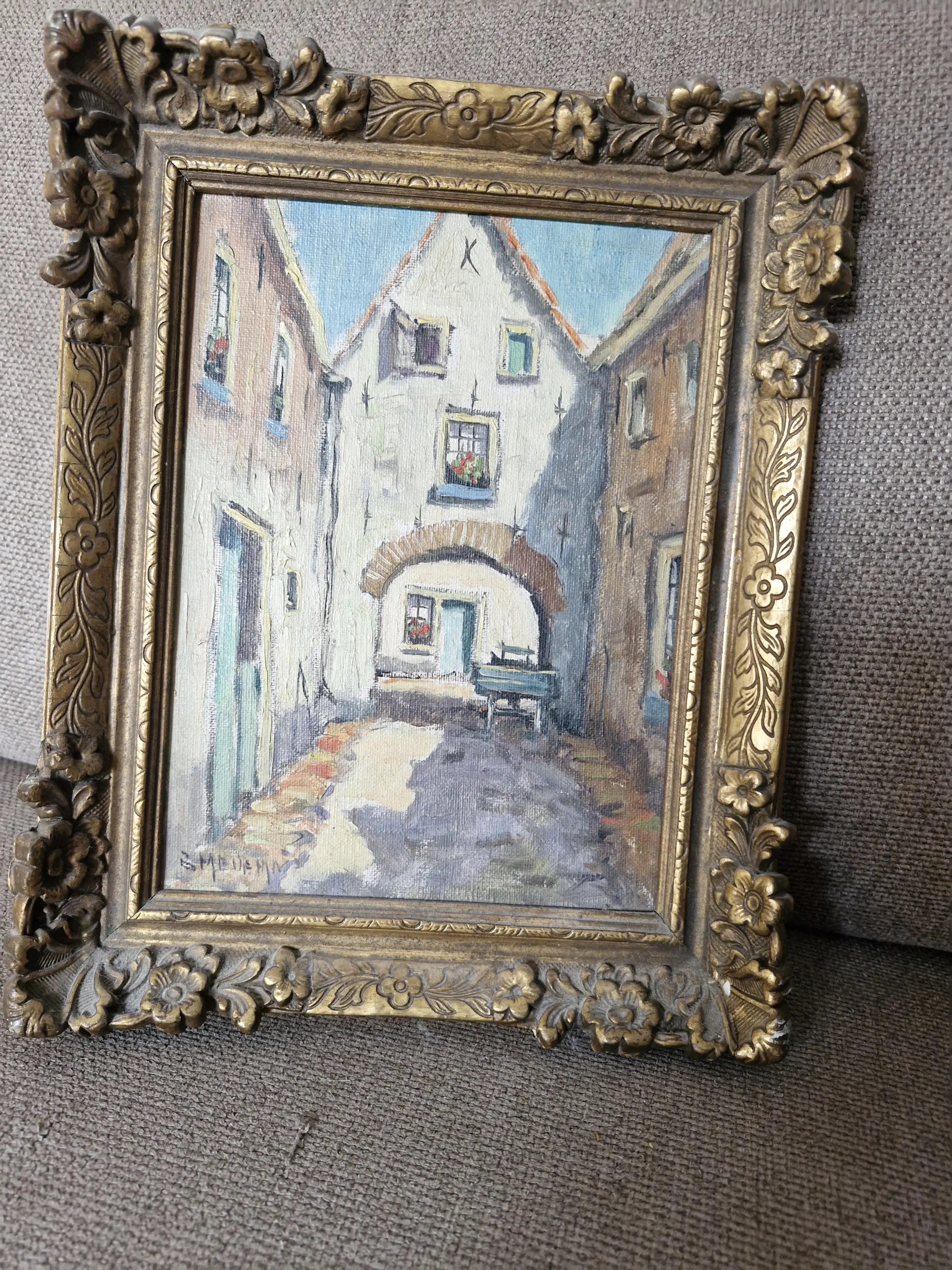 Mooi schilderij van B. Medema van een binnenplaats waarvan het jaartal voor mij onbekend is. De lijst is niet meer helemaal gaaf, maar deze kan vast bijgewerkt worden.
