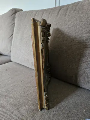 Het doek is gaaf, van de lijst is op wat plekken de verf een beetje af.