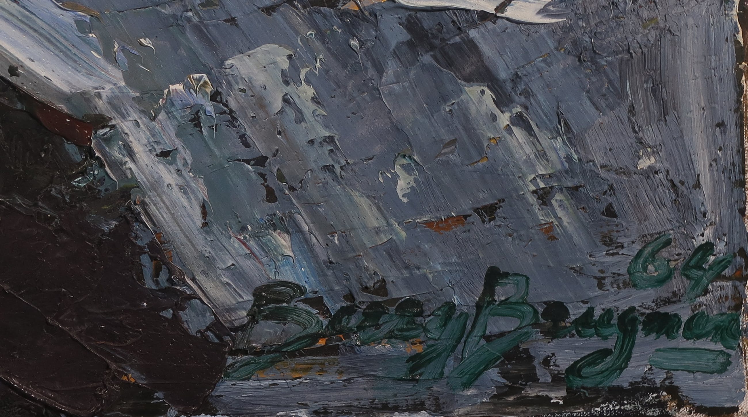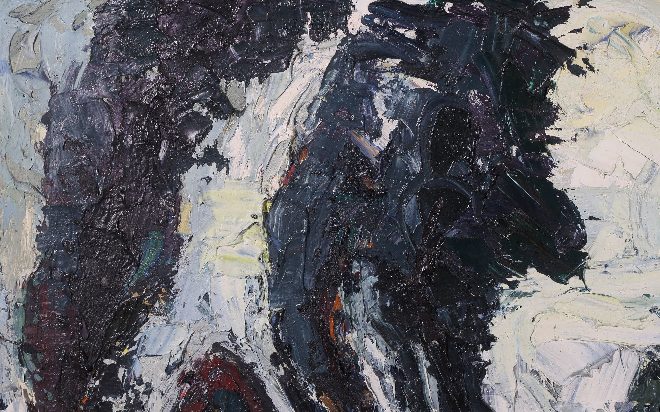 | op enkele plekken wat barstjes in de verflaag. Het werk is wat stoffig. | |