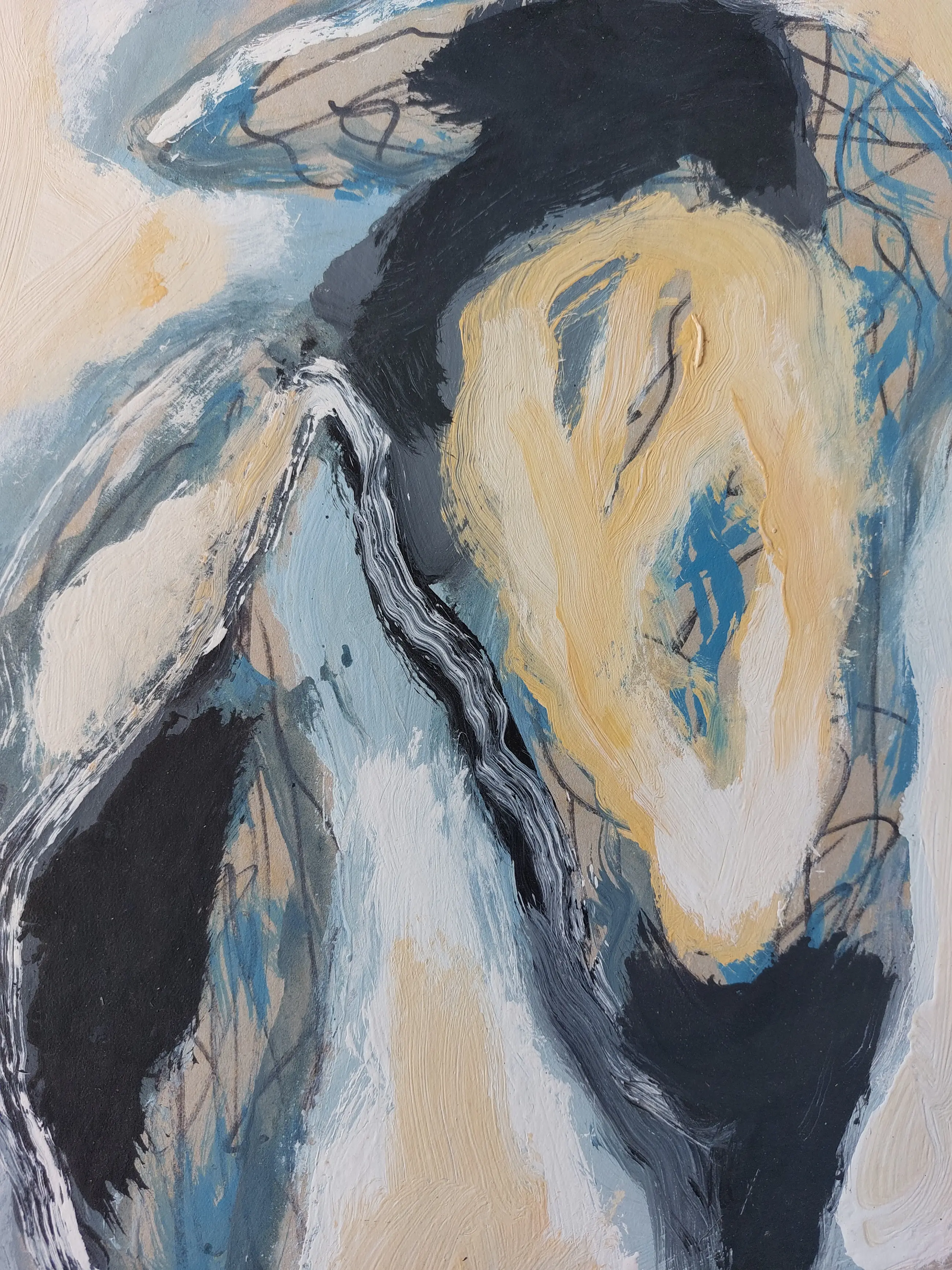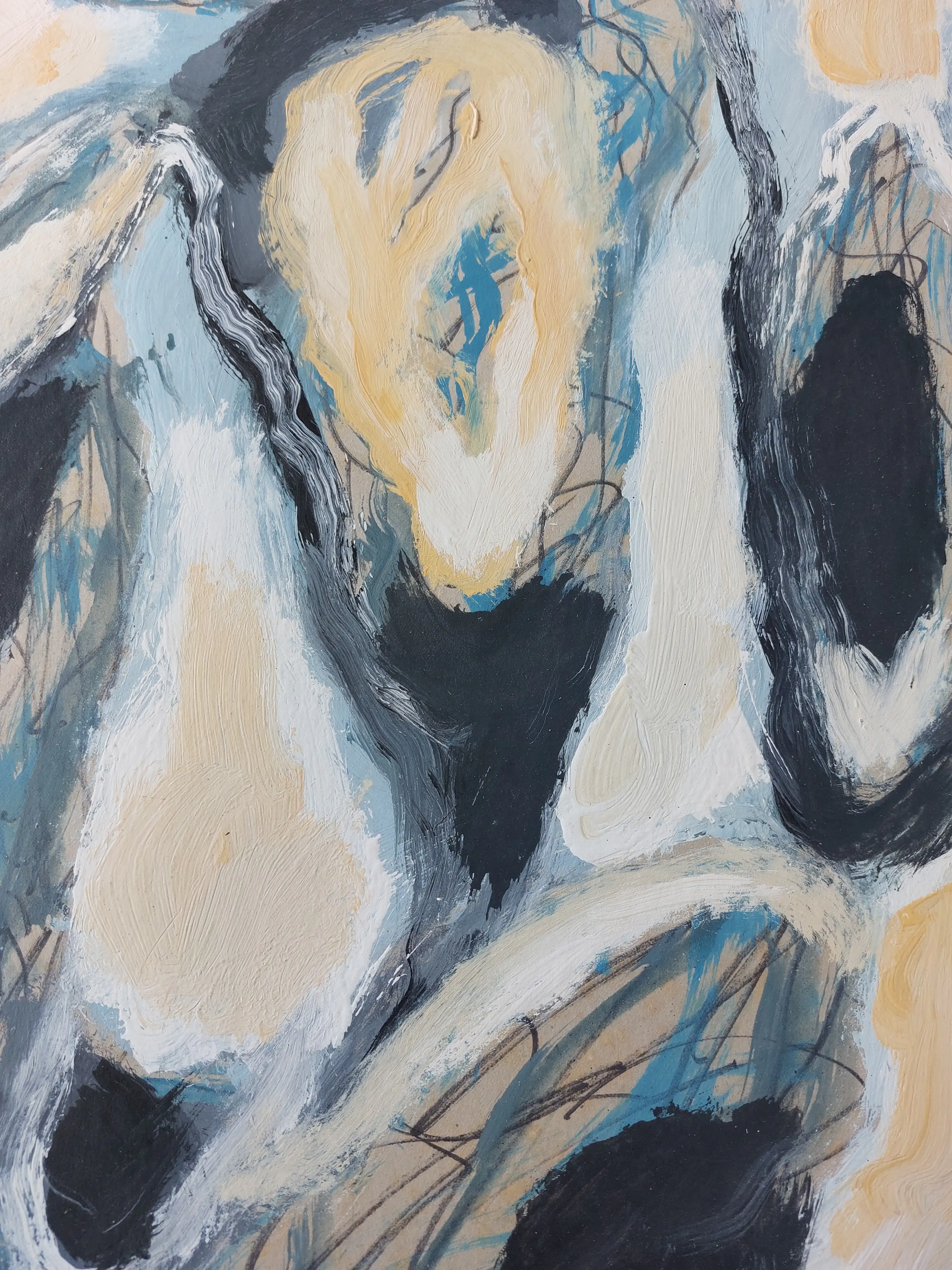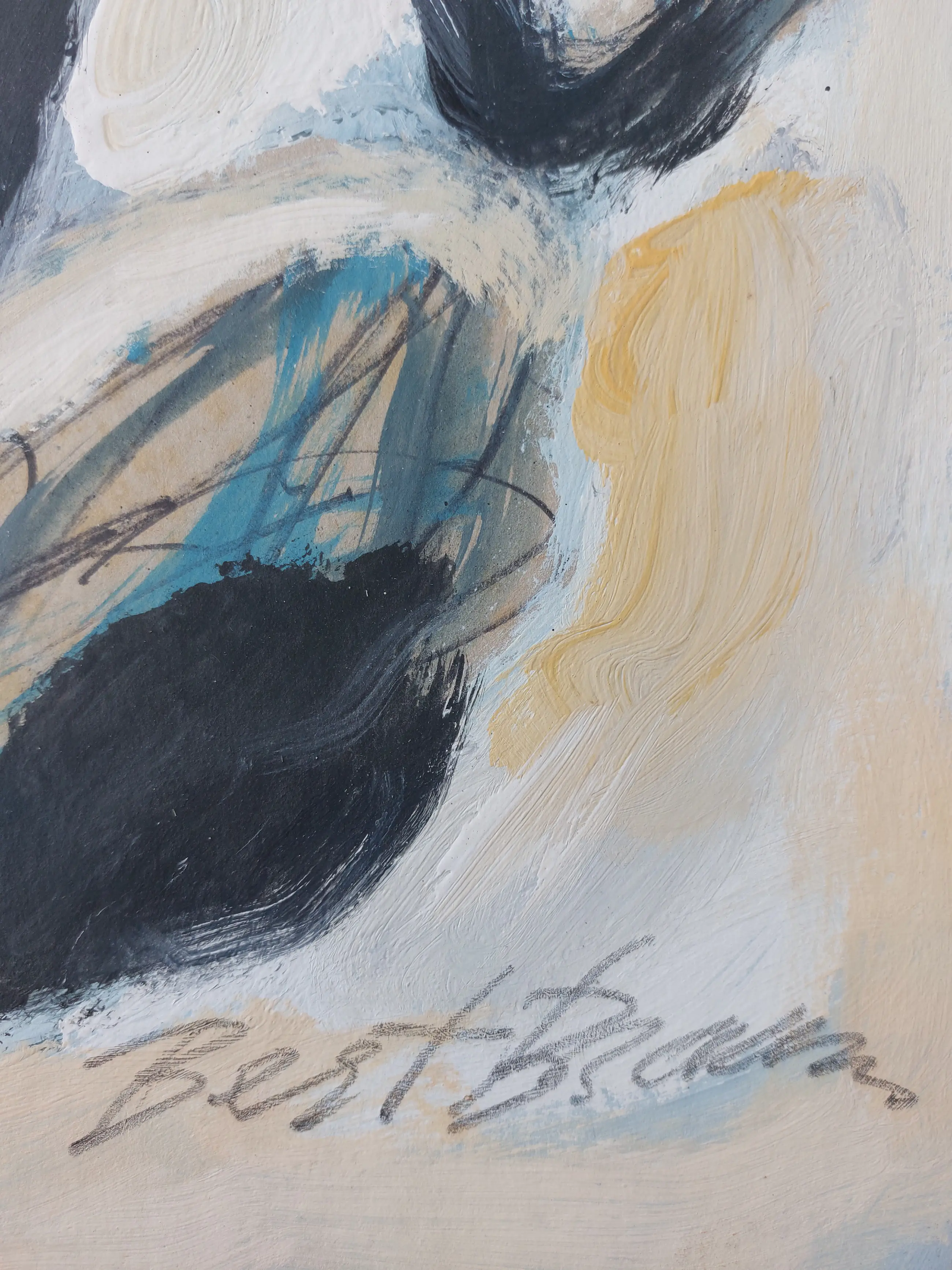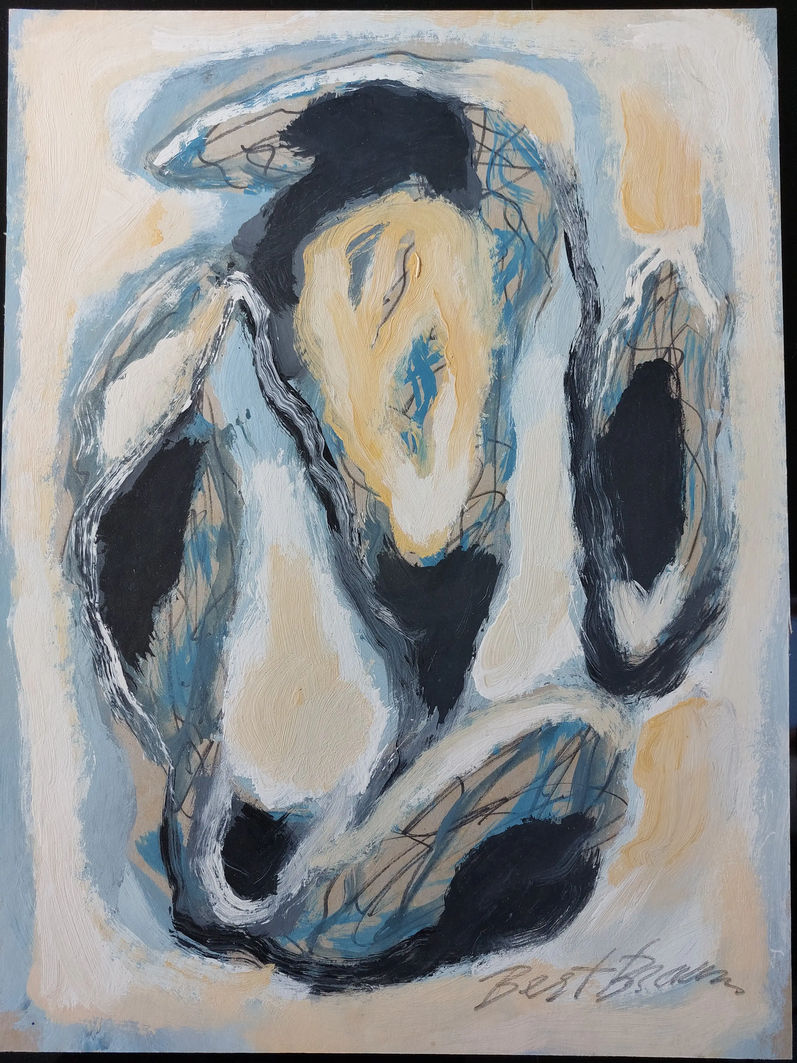 Abstracte gemengde techniek op karton van Bert Braam. Handgesigneerd rechtsonder in potlood.
