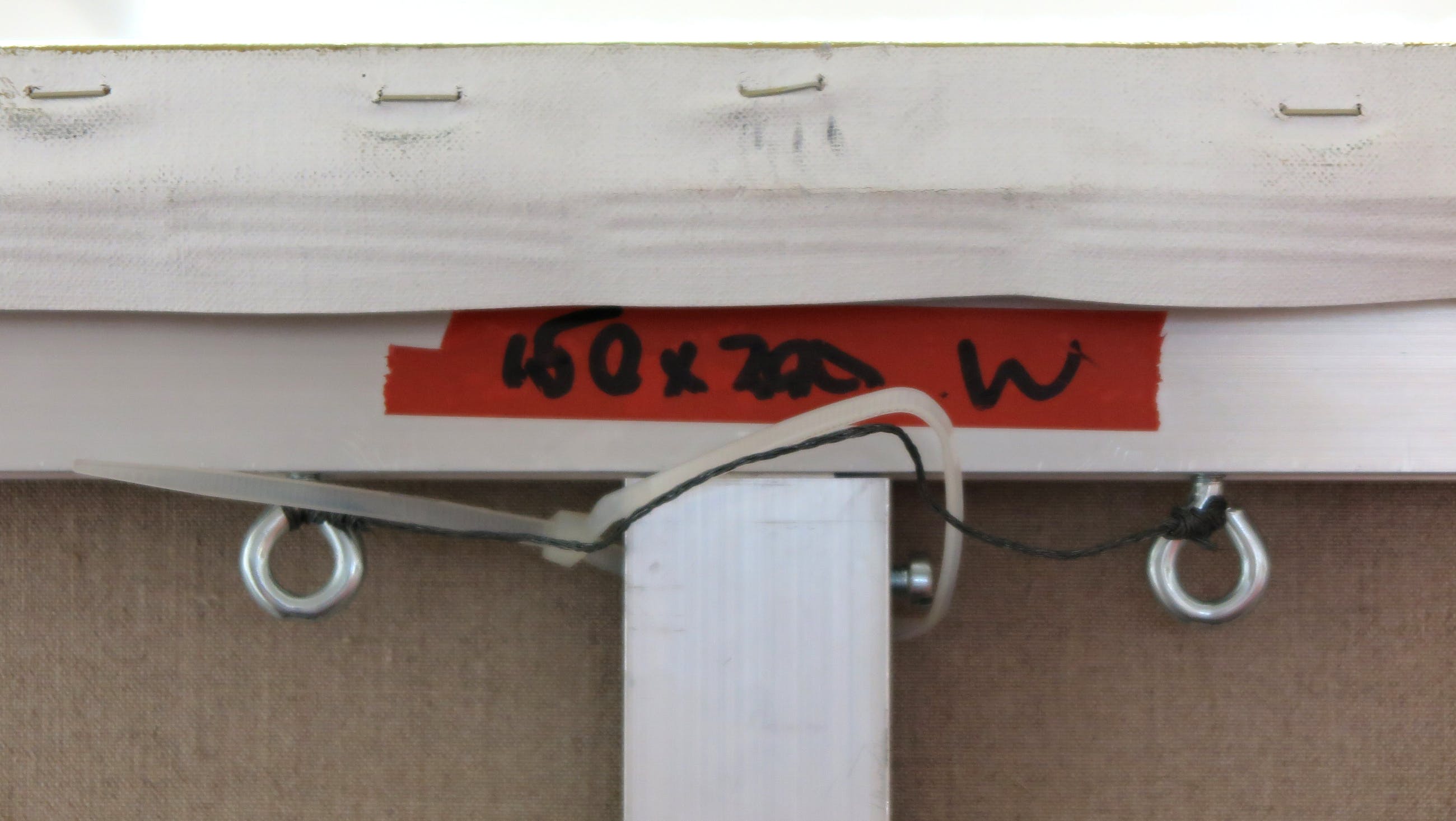 Dit zeer grote tweeluik bestaat uit twee doeken van 200x150 cm. De doeken zijn op de achterzijde voorzien van ophangsystemen (zie foto's).