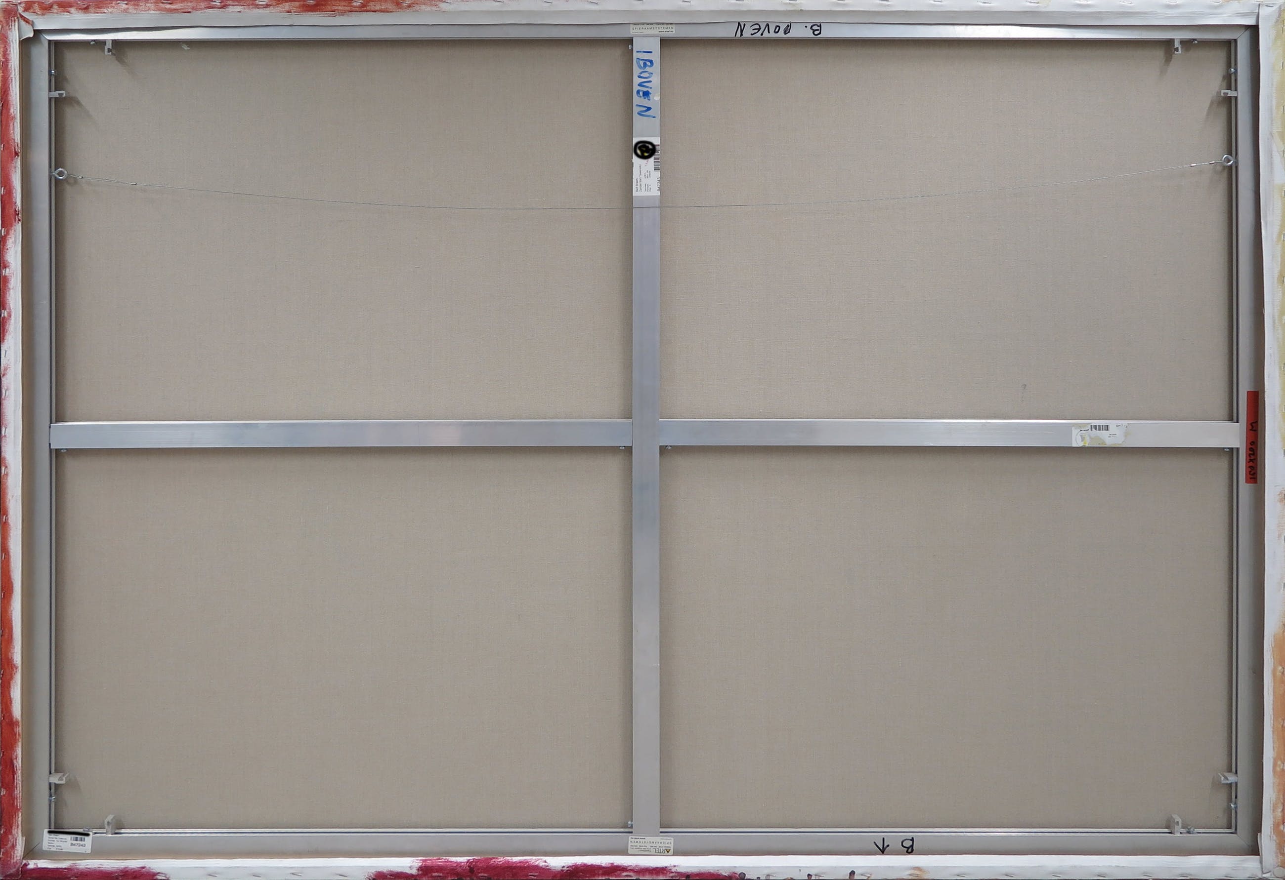 Dit zeer grote tweeluik bestaat uit twee doeken van 150x200 cm. De doeken zijn op de achterzijde voorzien van ophangsystemen (zie foto's).