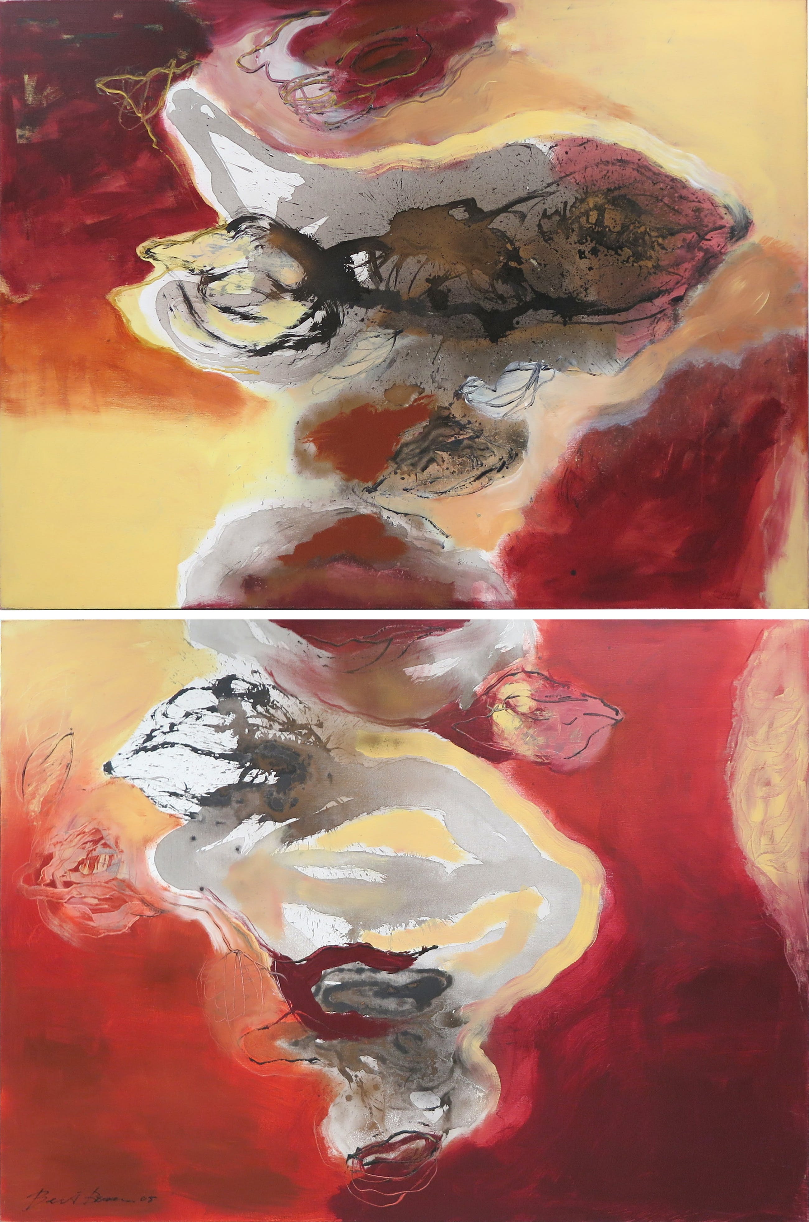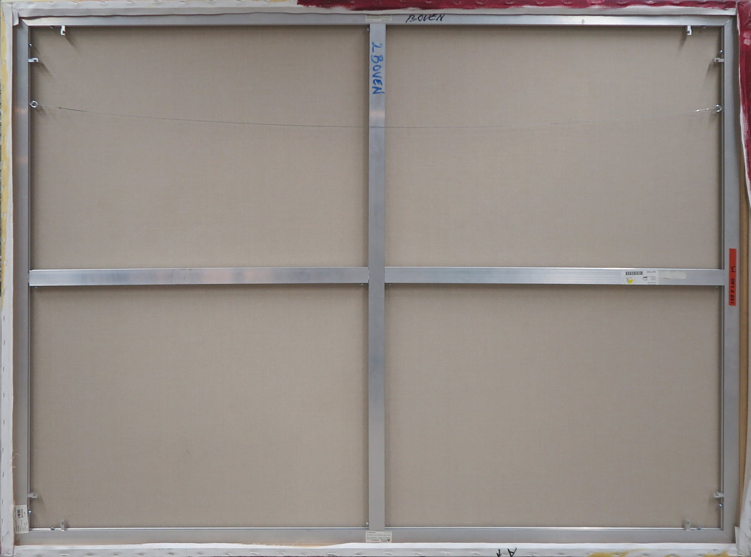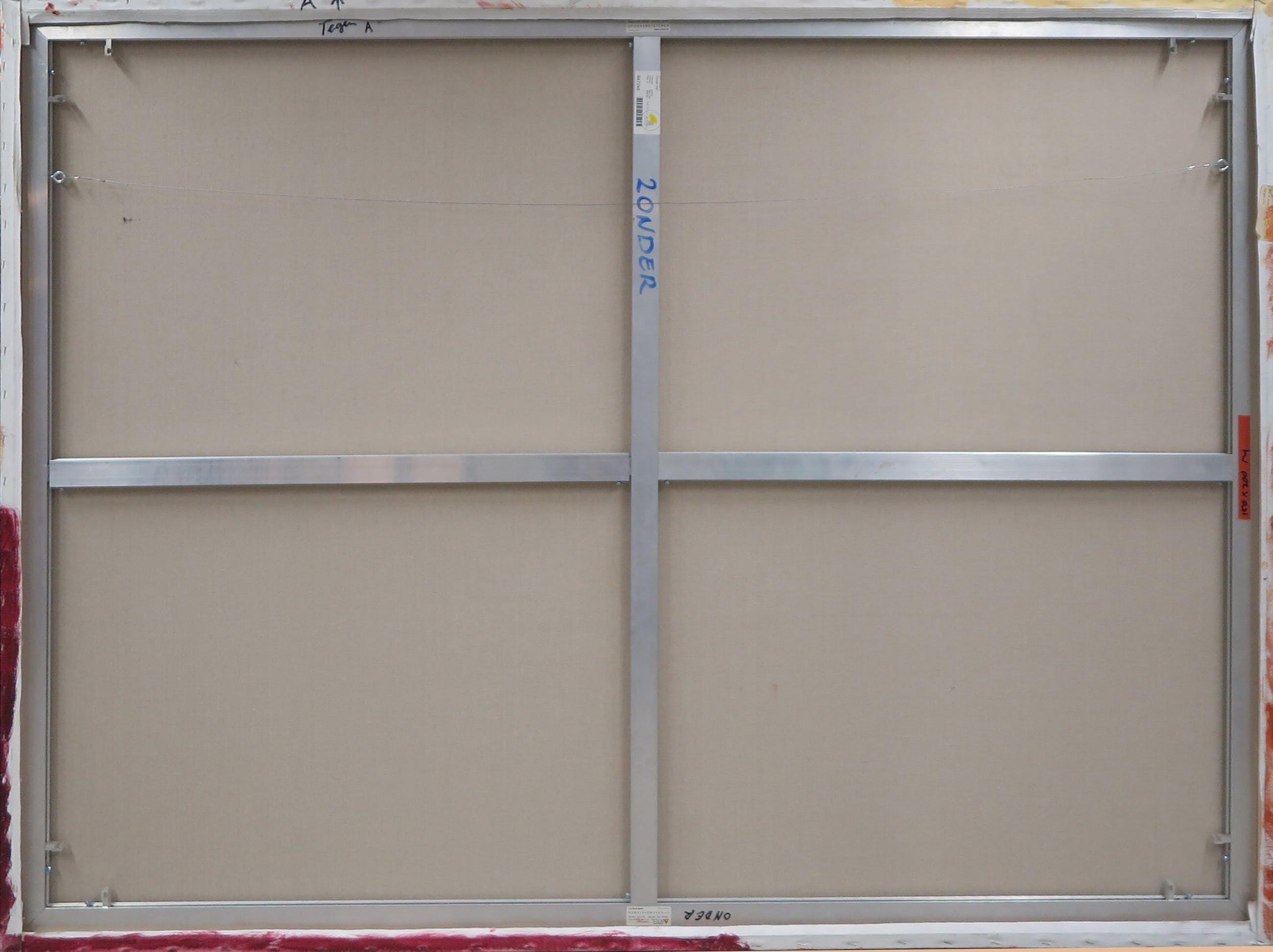Dit zeer grote tweeluik bestaat uit twee doeken van 150x200 cm. De doeken zijn op de achterzijde voorzien van ophangsystemen (zie foto's).