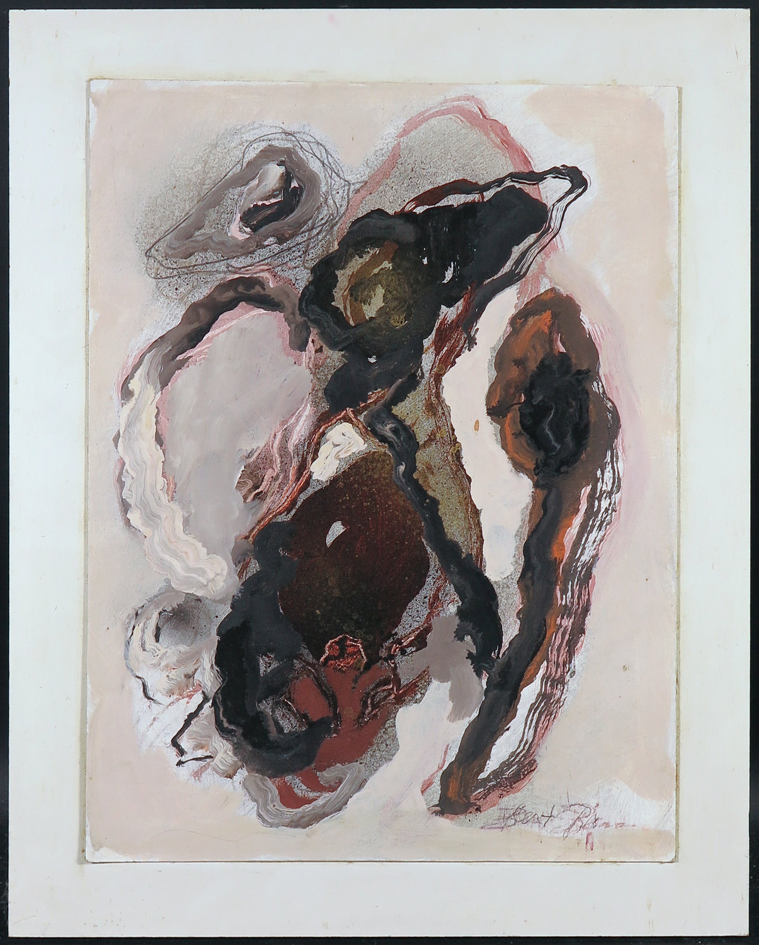 Lichte beschadigingen langs de randen van het karton. Het paneel waarop het werk is bevestigd heeft vlekken/is vuil. | |