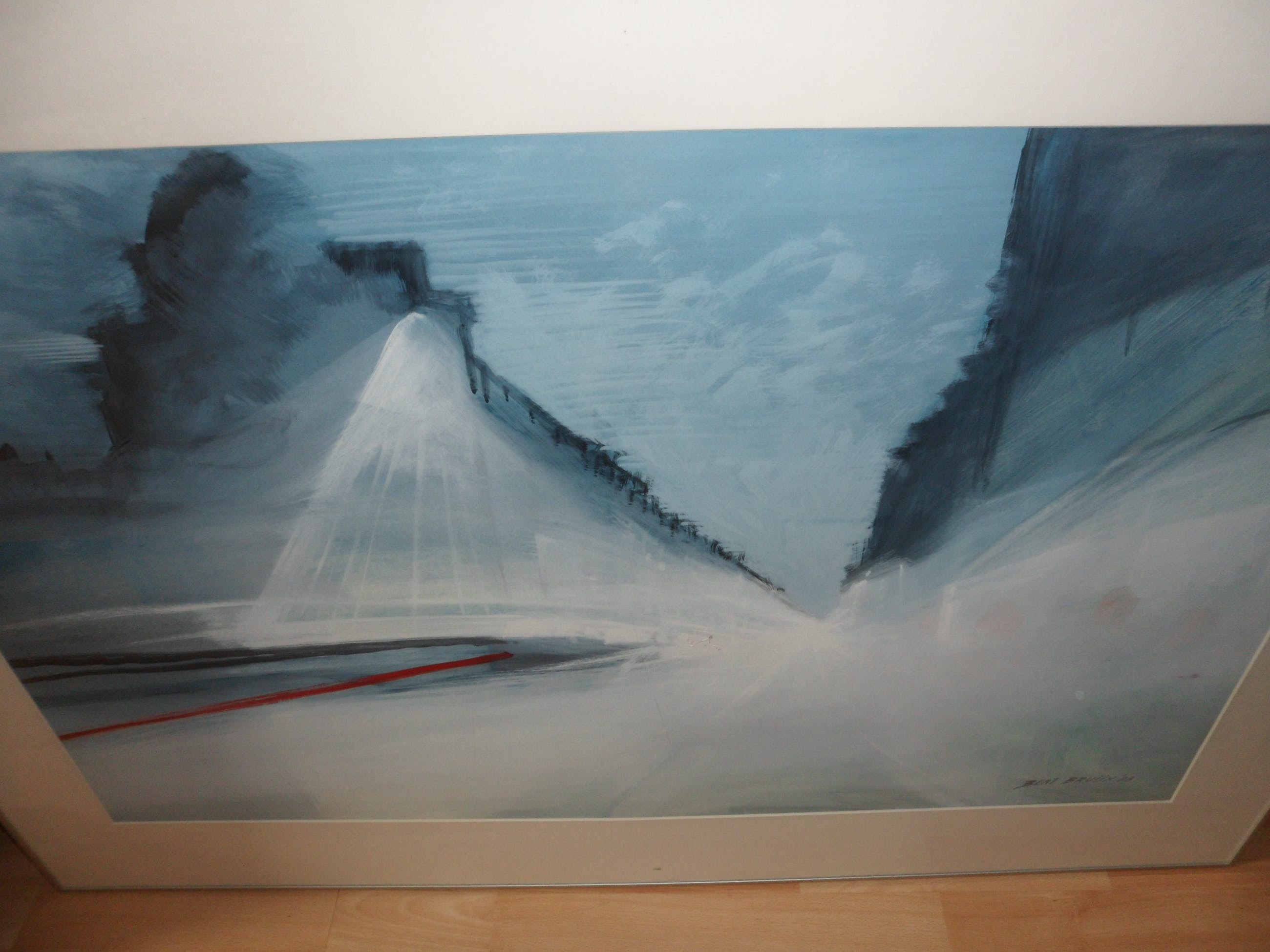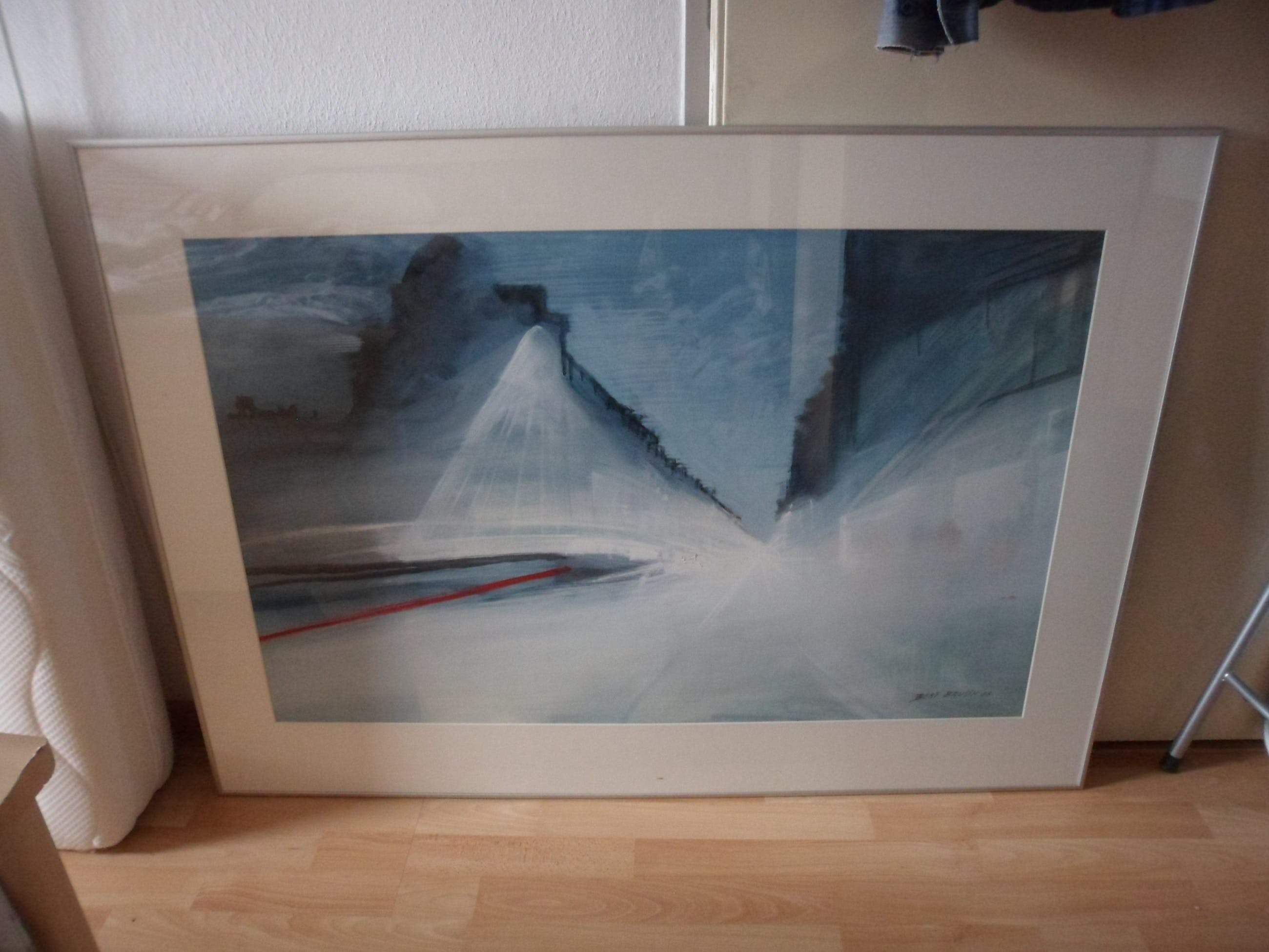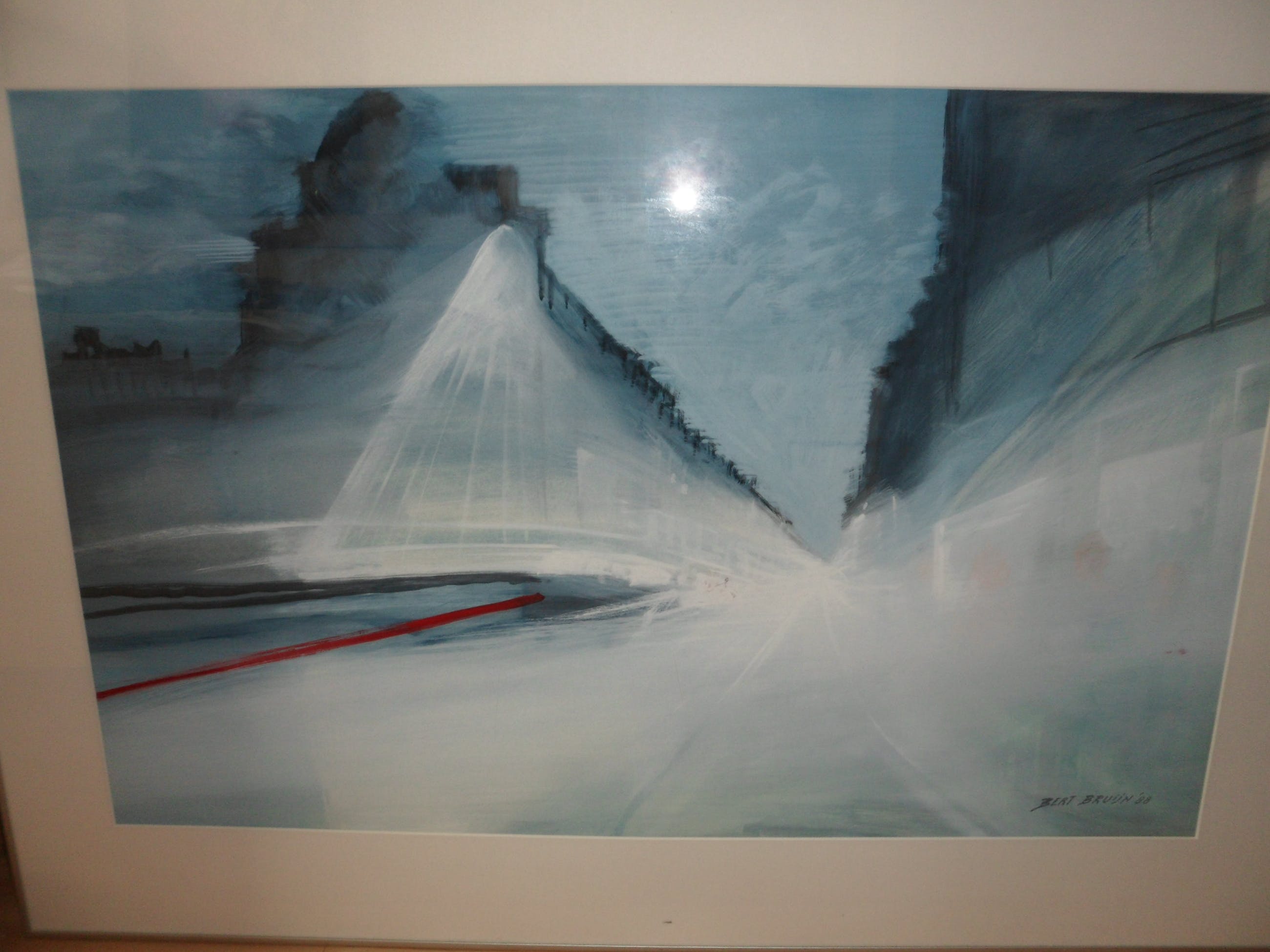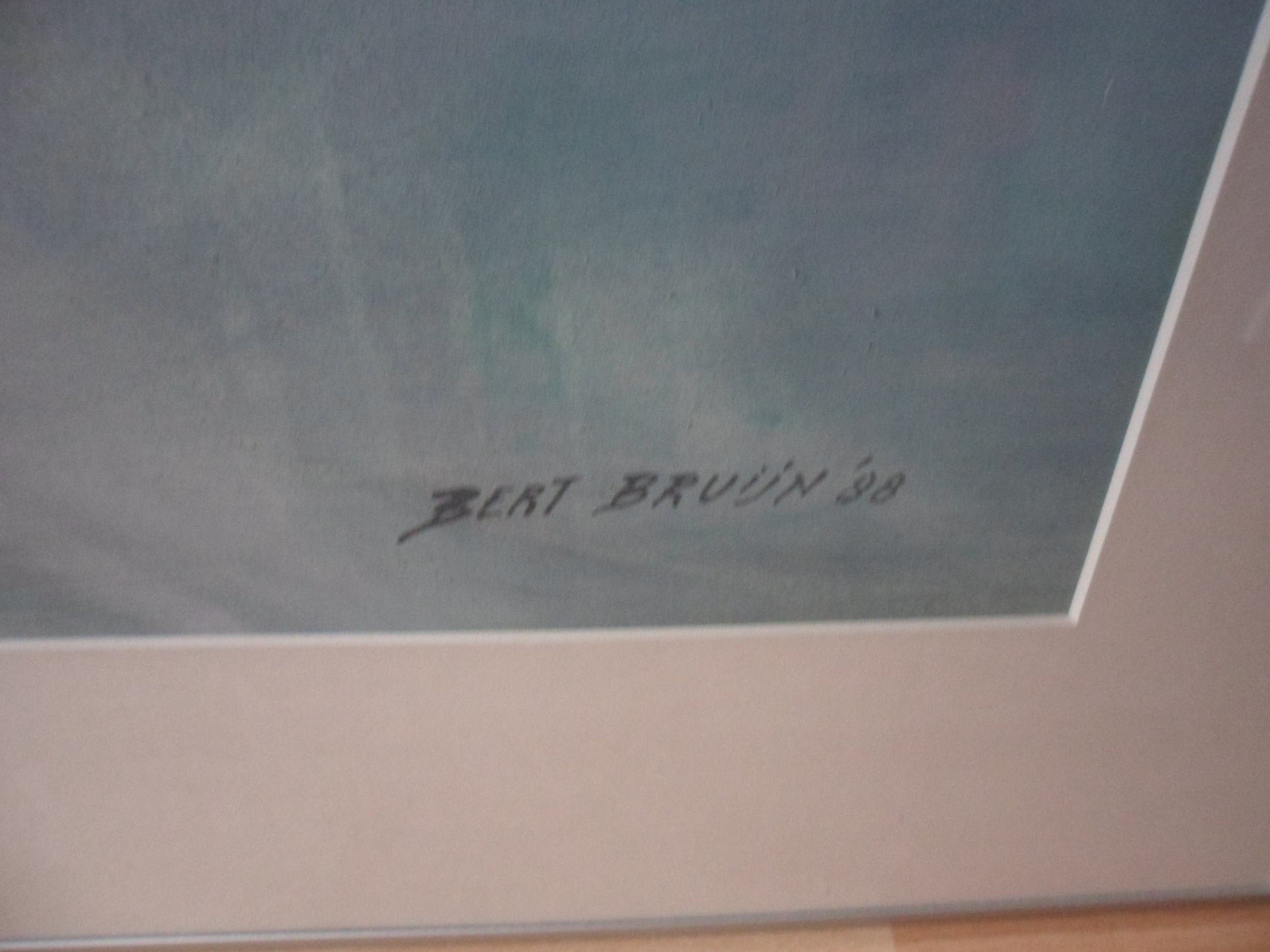 Mooie gouache van Bert Bruijn uit 1988. Gouache op papier, gesigneerd en gedateerd rechtsonder. In strakke aluminium lijst, achter glas en met passe-partout. Alles in zeer goede conditie.
