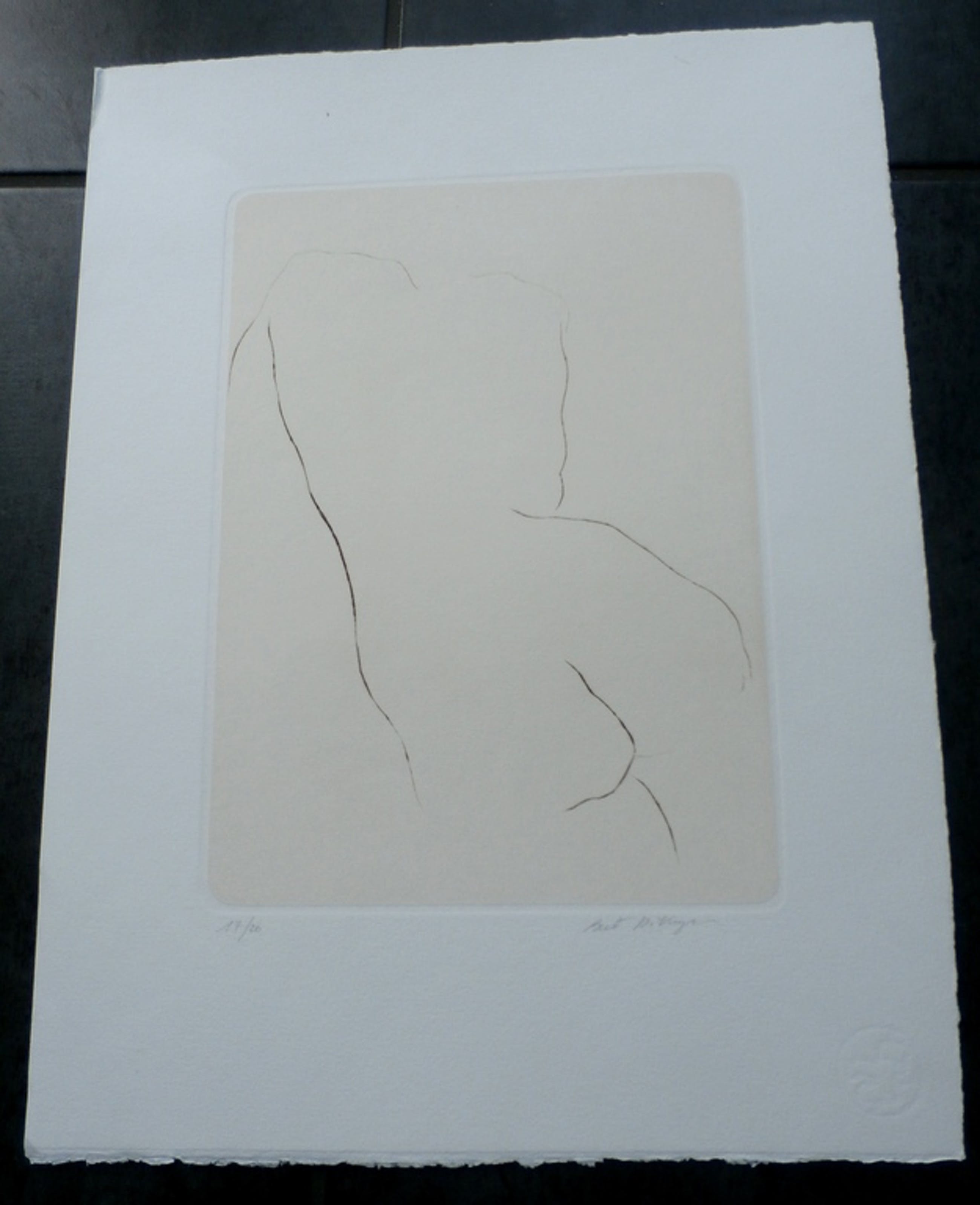 Grote ets van Bert de Keyser. Titel: Vrouwelijk naakt. Nummer: 17/20. Het werk is rechtsonder, met potlood, gesigneerd door de kunstenaar. Afmetingen blad: H44 x b34 cm. Afmetingen ets: H29,5 x b21,5 cm.Conditie: in goede staat. De authenciteit van het, aangeboden, werk wordt volledig gegarandeerd. Een certificaat van echtheid kan, op aanvraag, worden meegestuurd.