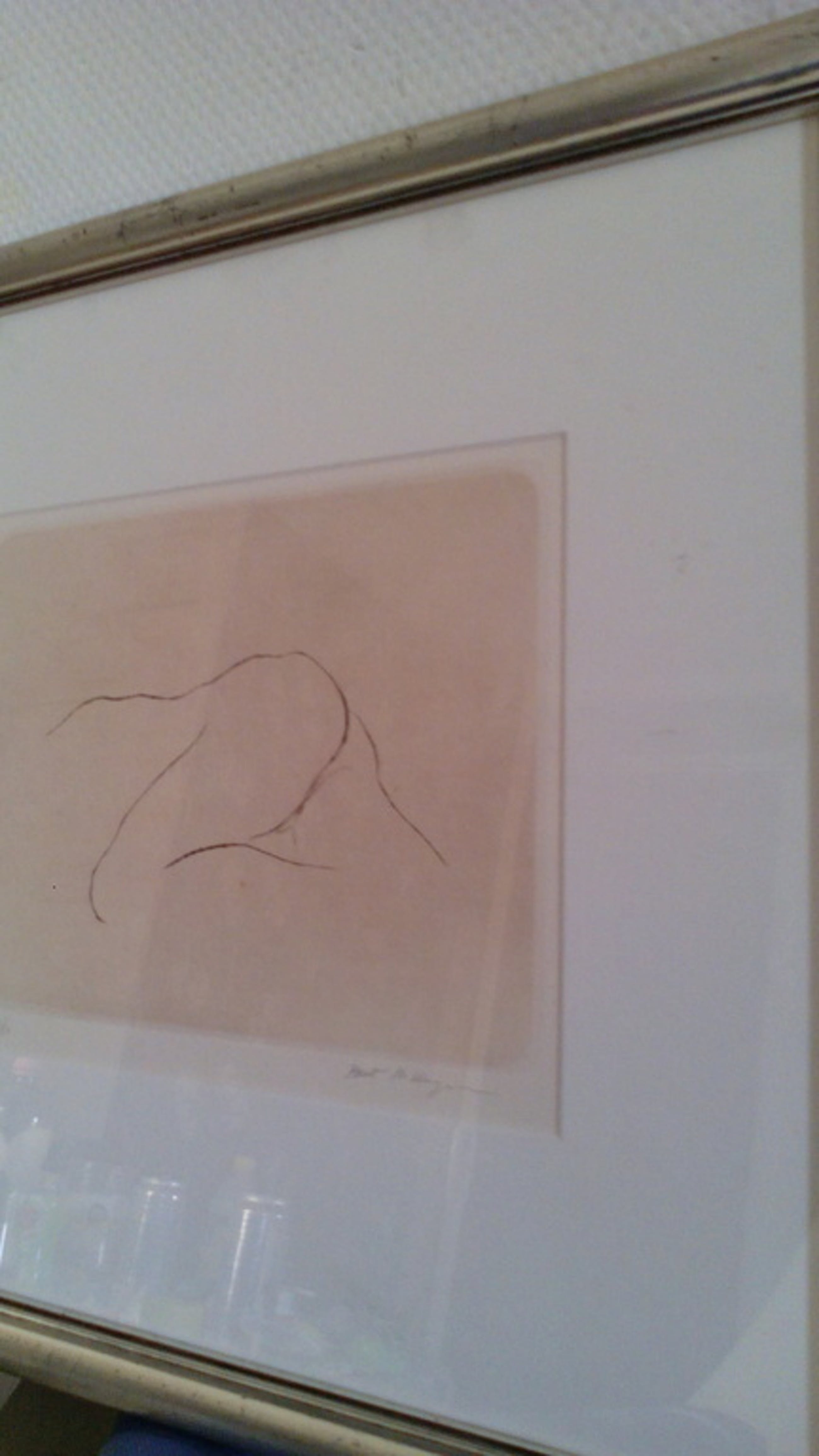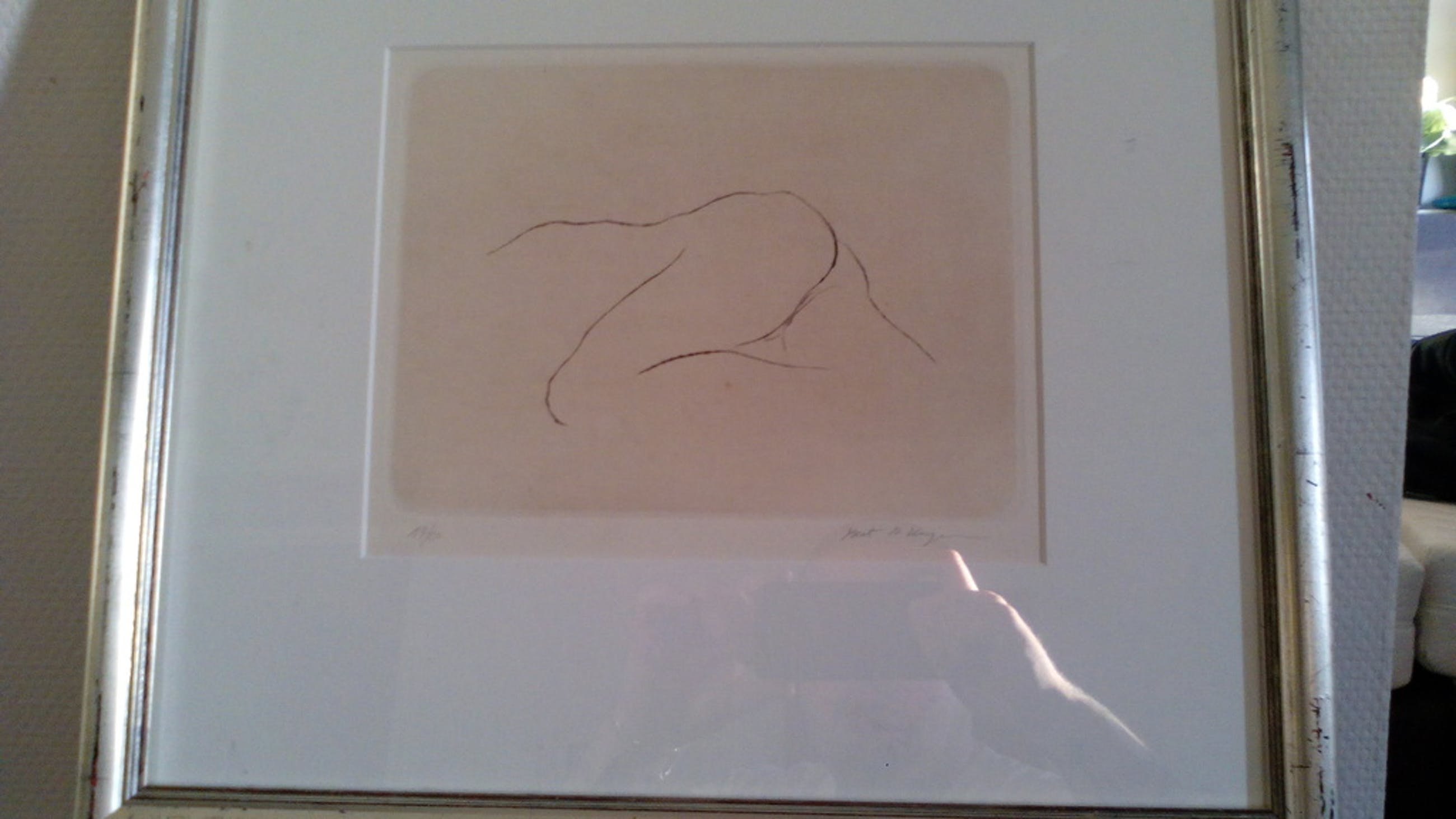 Droge naald ets, door Bert de Keyser. Naakte vrouw als model.gesigneerd, ingelijst en achter glas.jaartal 1996.Droge naald ets.