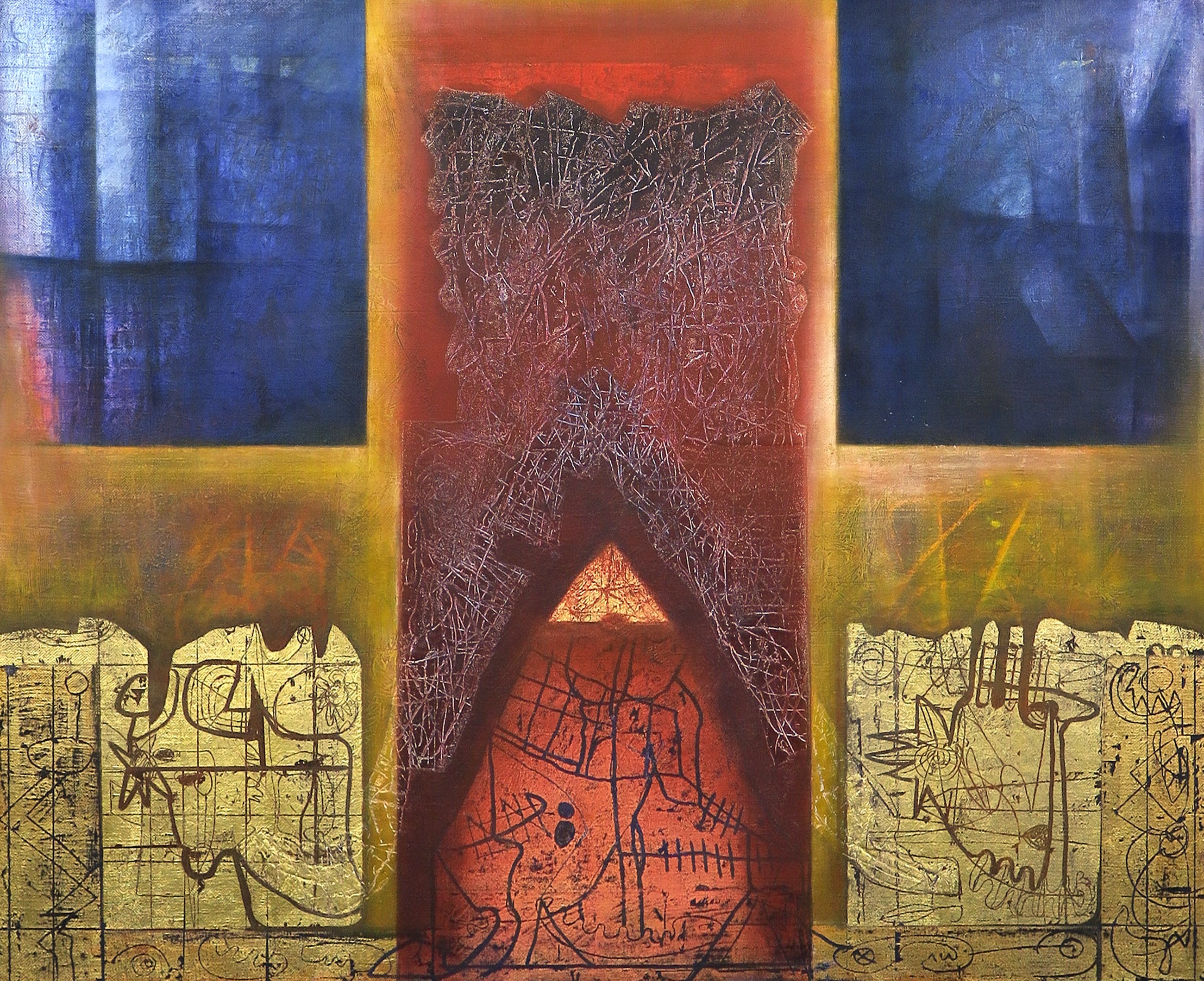 | Het werk heeft hier en daar lichte slijtage aan de randen van het doek. | |