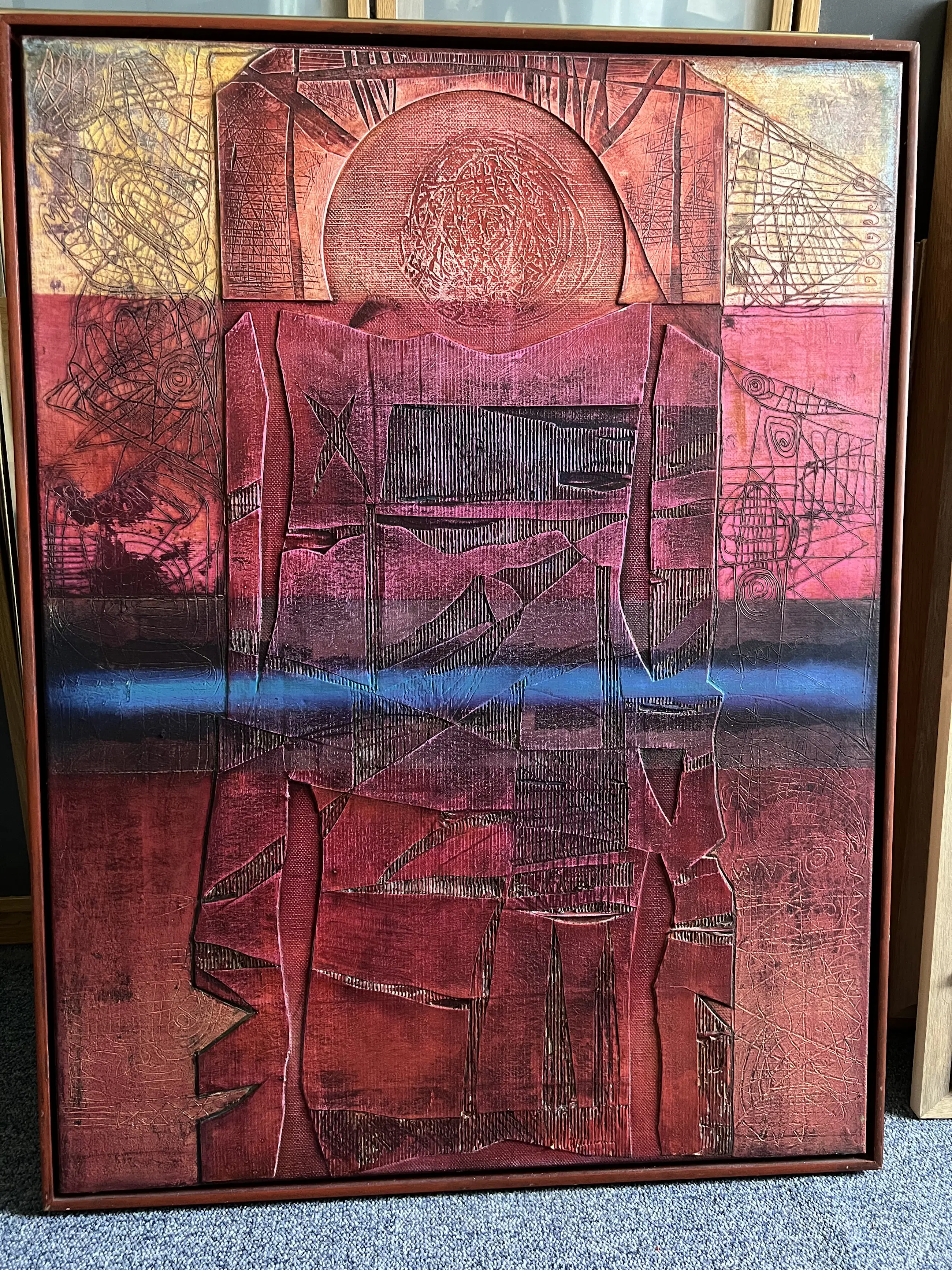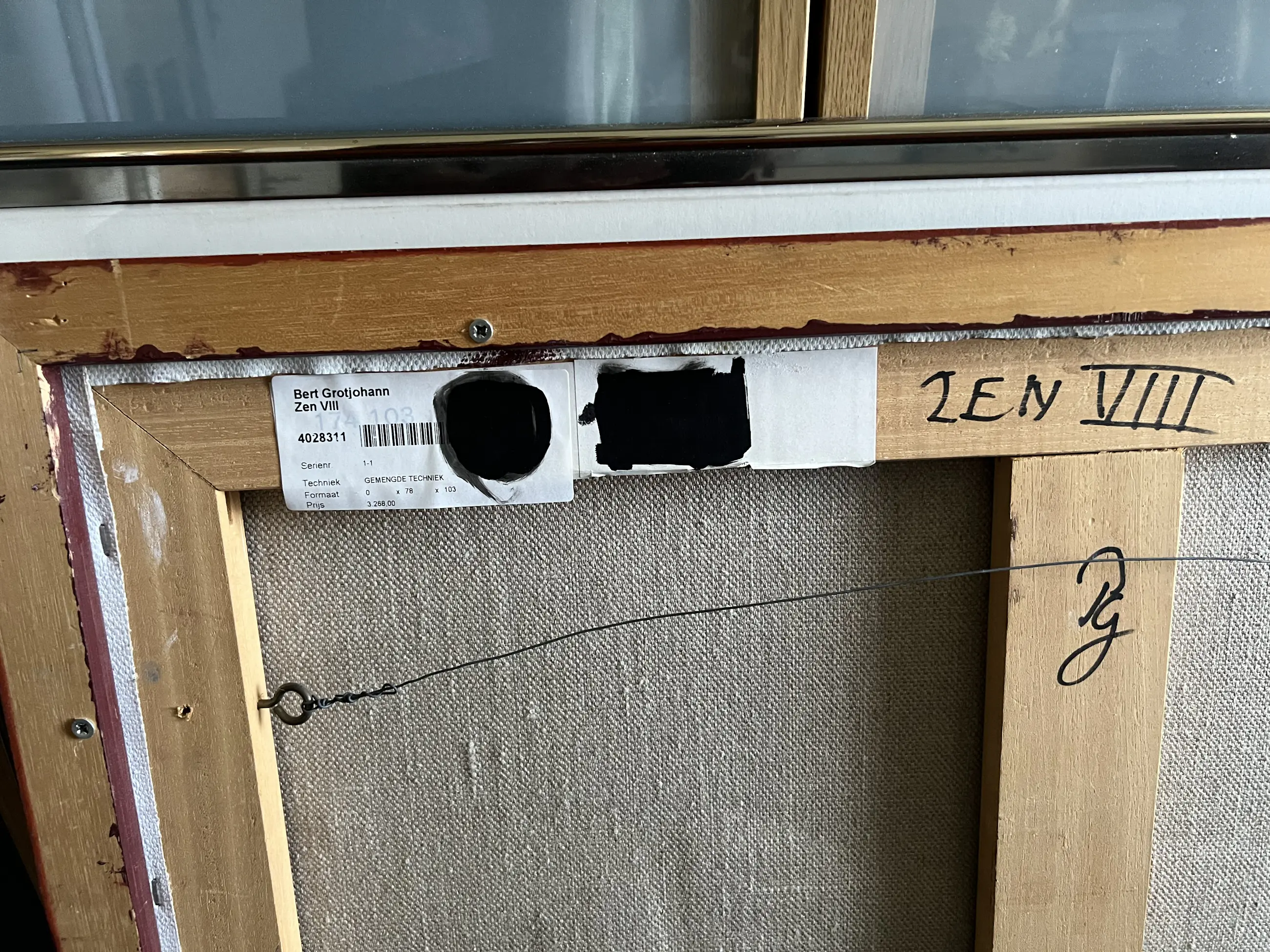 Bert Grotjohann. Behoren 1039 te Rotterdam Hij heeft de Rietveldacademie gedaan. Hij beeldhouwt, schildert, maakt glasobjecten en is ook grafisch ontwerper. Het getoonde werk is een abstracte compositie in reliëf. En heet ZENIII Bert is een veelzijdig kunstenaar.