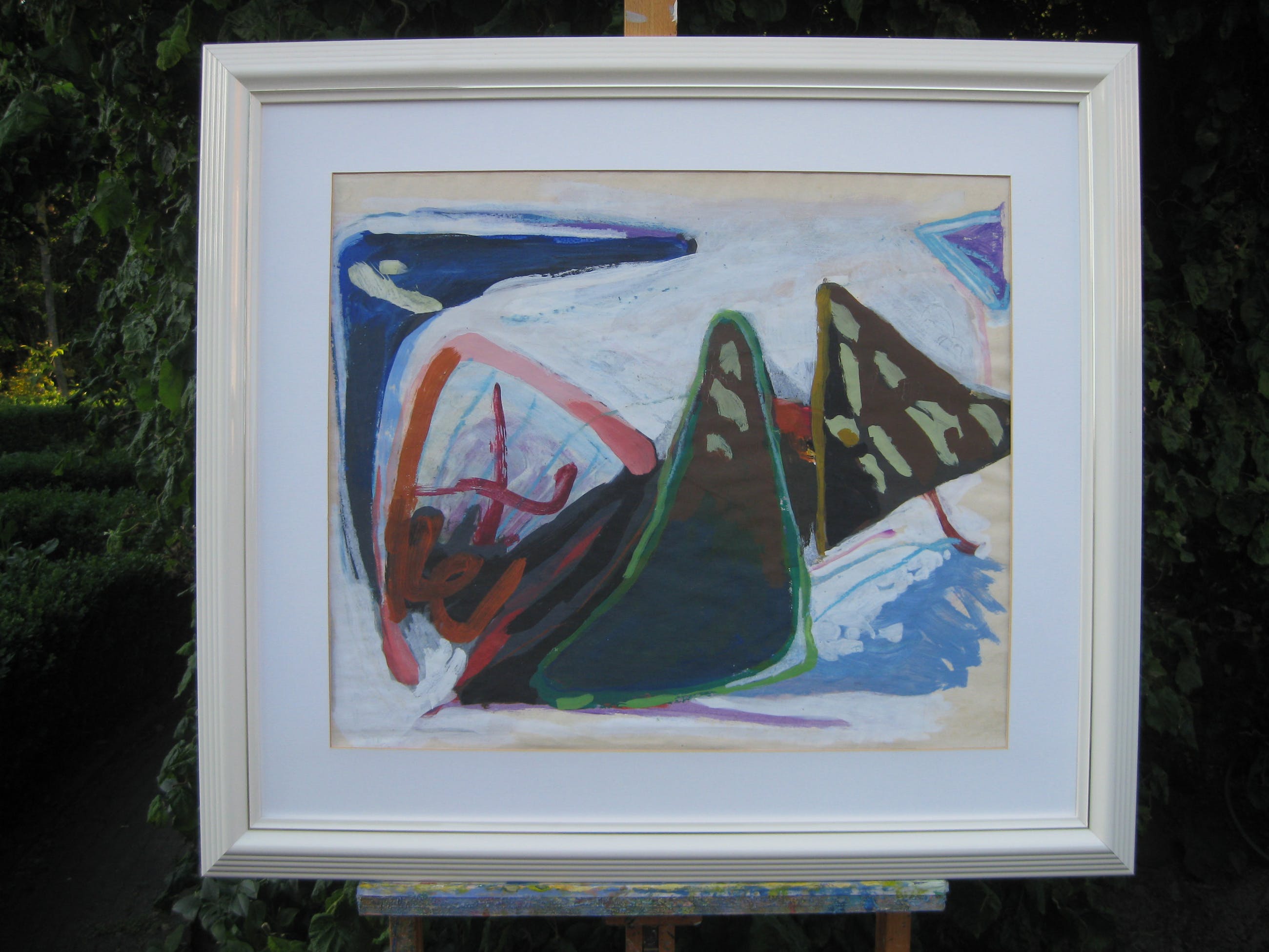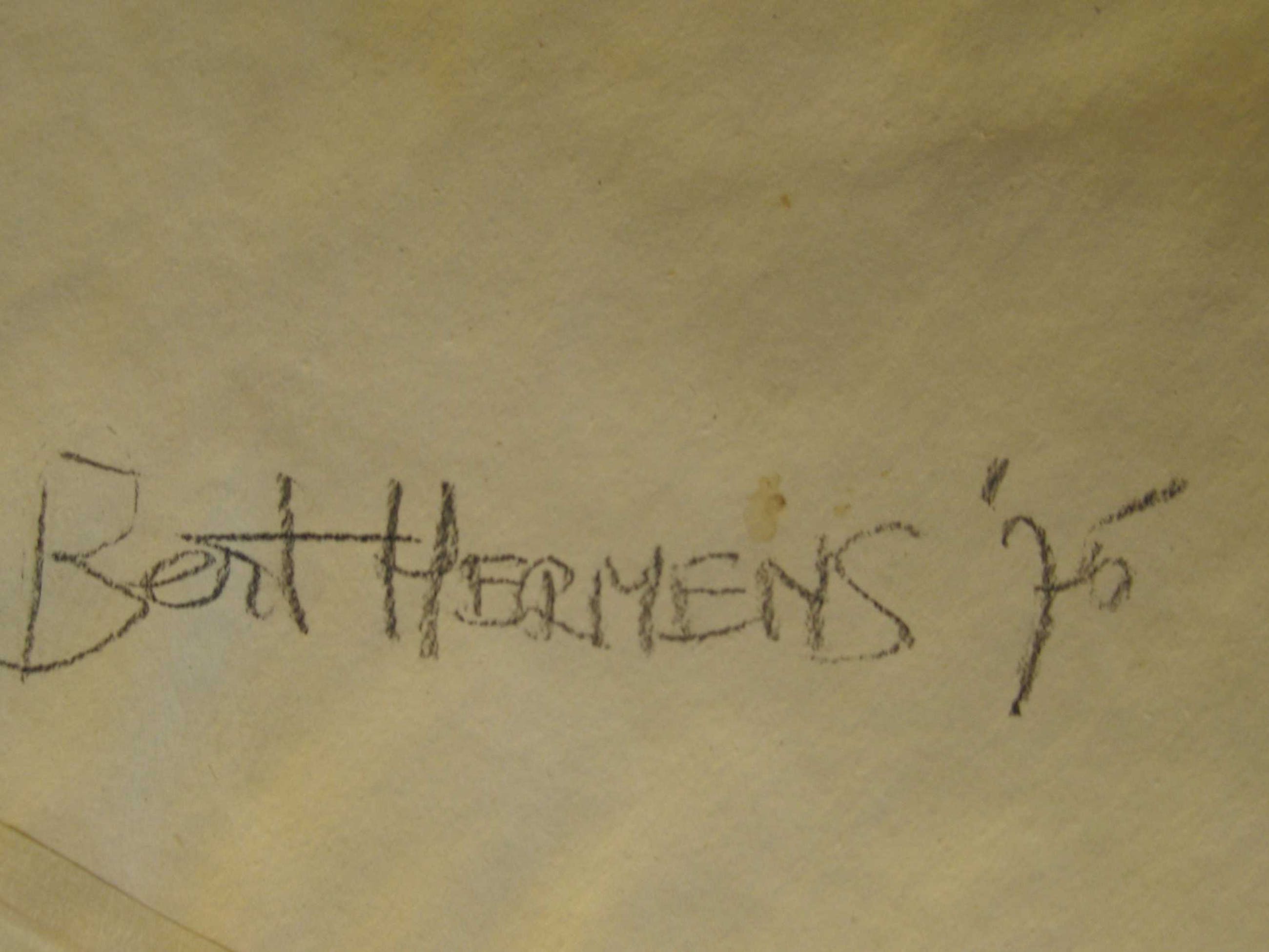 Dit werk is aan de achterzijde gesigneerd. Het werk is ingelijst met passepartout en zit achter glas.