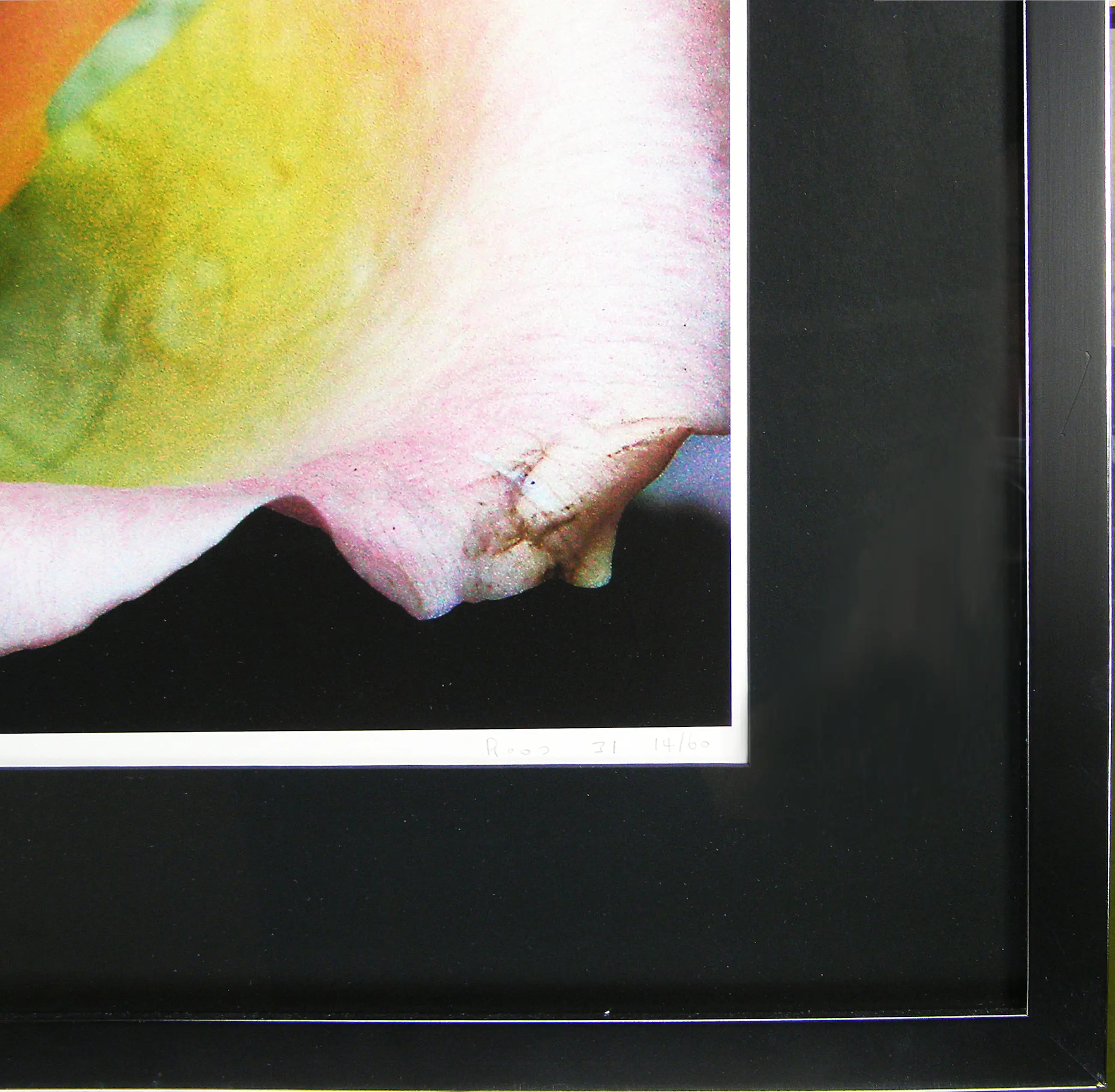 Gedetailleerde, bijna mac fotografische waragave van een roos. Mooi sfeervol ingelijst.