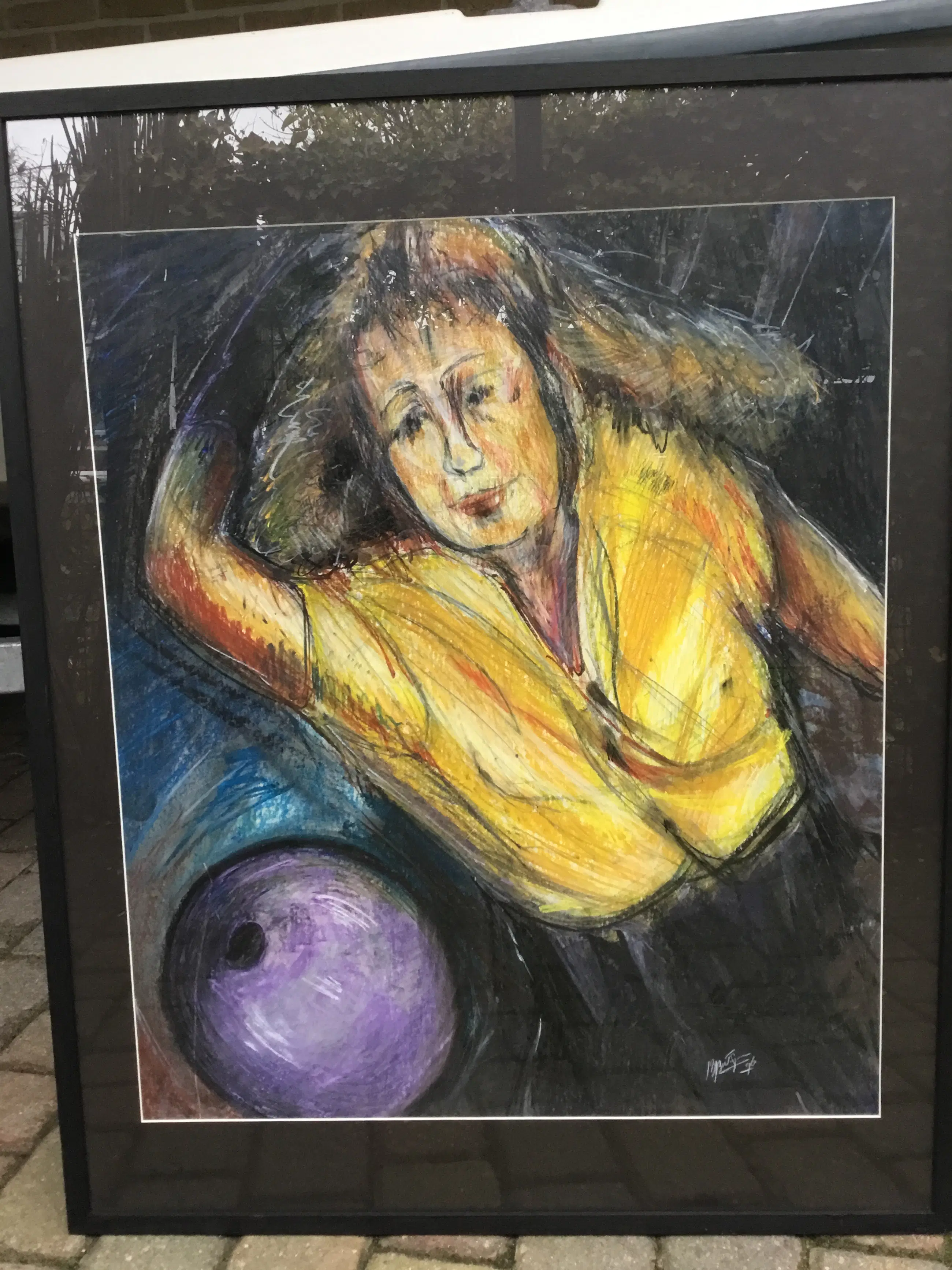 Bert Jan Botschuijver was zelf een fervent bowler, en heeft dit werk in 1995 gemaakt en ter beschikking gesteld voor de eerste plaats in de bowling Leaque Groningen. Ik heb dit werk van Bert Jan zelf in ontvangst mogen nemen, en heb nog veel dierbare herinneringen aan deze bijzondere kunstenaar en sportieve bowler. Voor dit werk heeft zijn medespeelster, en later bowlingcentrum eigenaresse Janny Westerdijk model gestaan. Ook de dochter van dit model BeeJee staat momenteel weer hoog genoteerd.