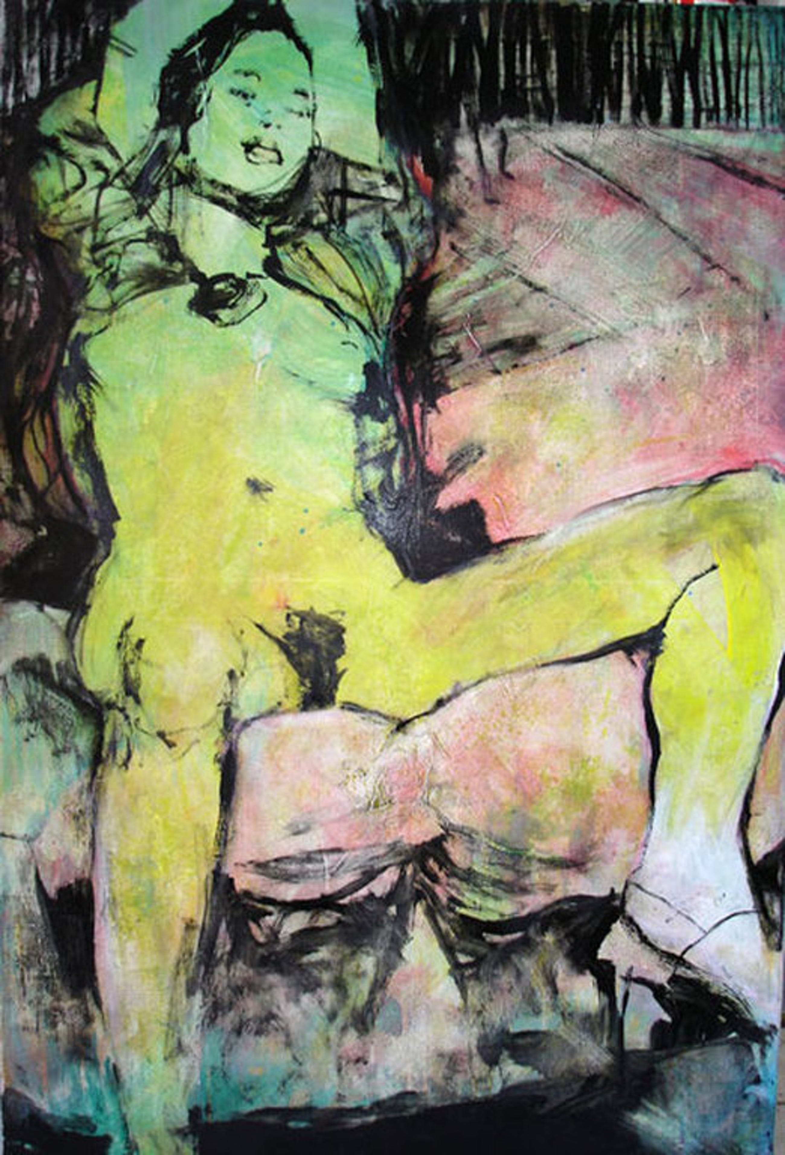 Dit niets verhullende, expressionistische naakt van de Haarlemse schilder Bert Maurits, is duidelijk niet geschikt voor de kinderkamer maar het schilderij, een van de weinige overgebleven naaktstudies van zijn hand uit de jaren 90, is misschien daarom wel zo de moeite waard.