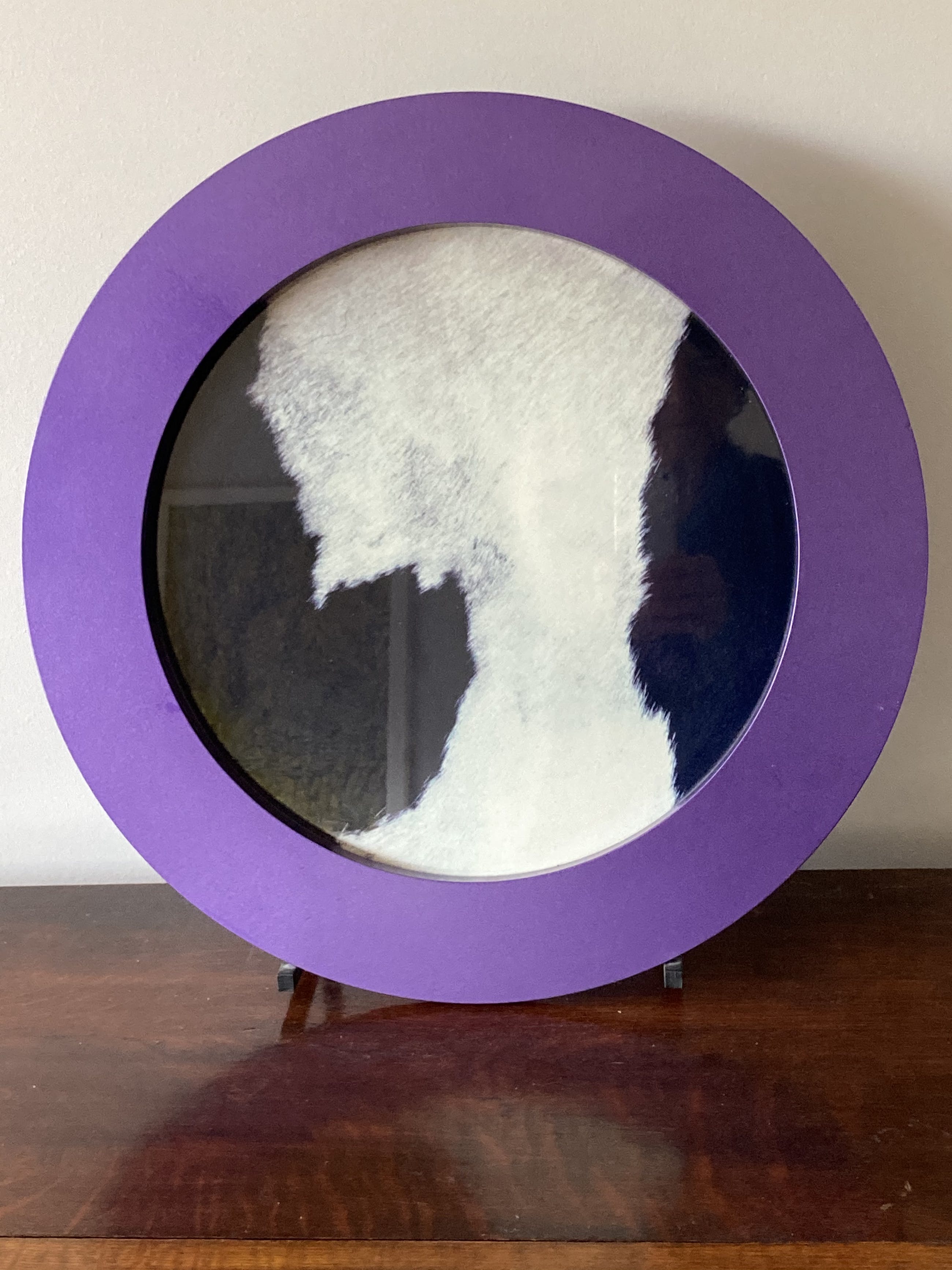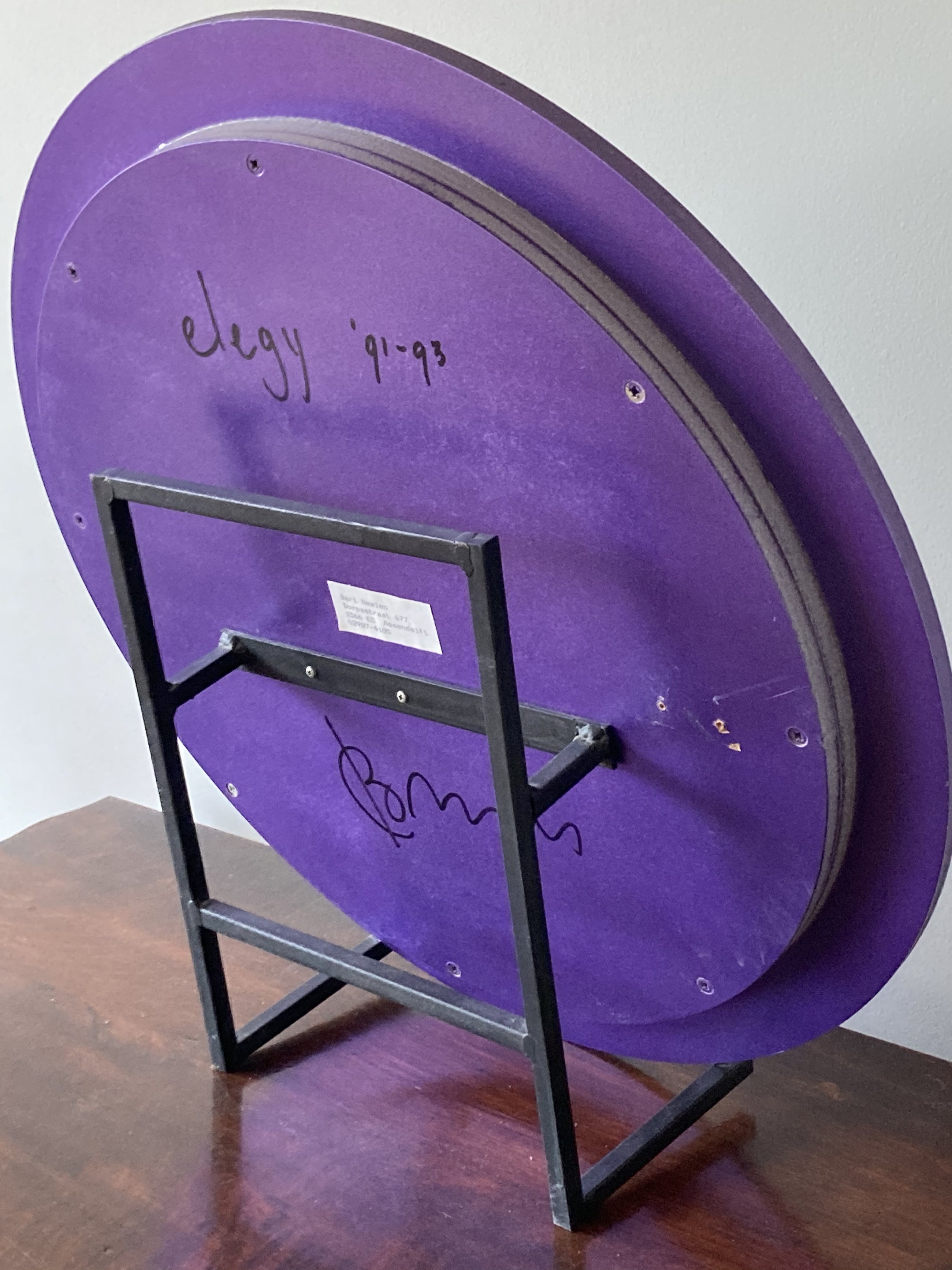 Aan de achterkant zijn twee extra gaatjes in het houtwerk. Paarse rand is op kleinen oneffenheid na gaaf. Zie 1e foto.