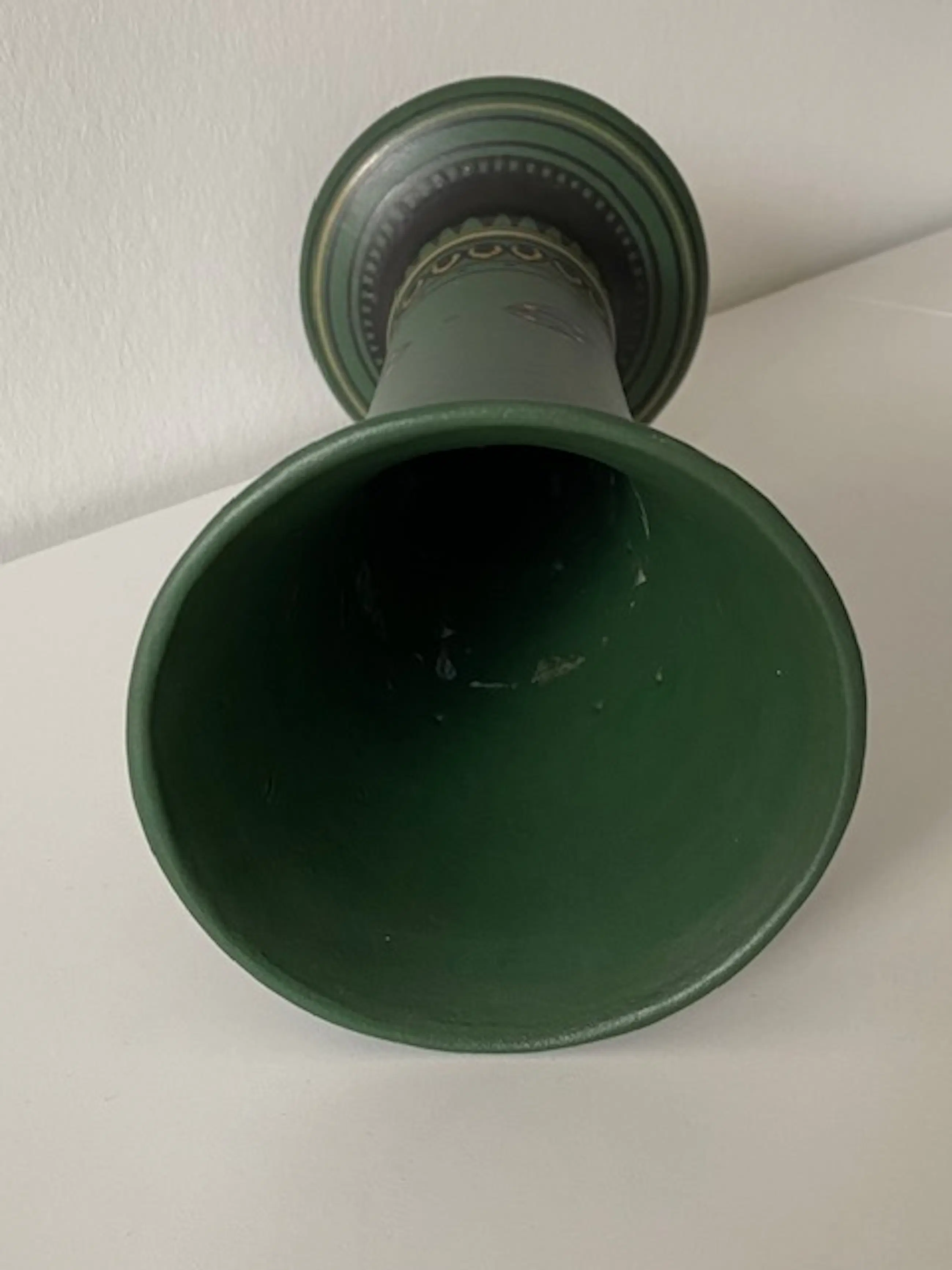 | Enige randverschijnselen onder de voet (zie foto) en enige gebruikssporen laag in de kelk (zie foto). Zie beschrijving. | |||||||||||