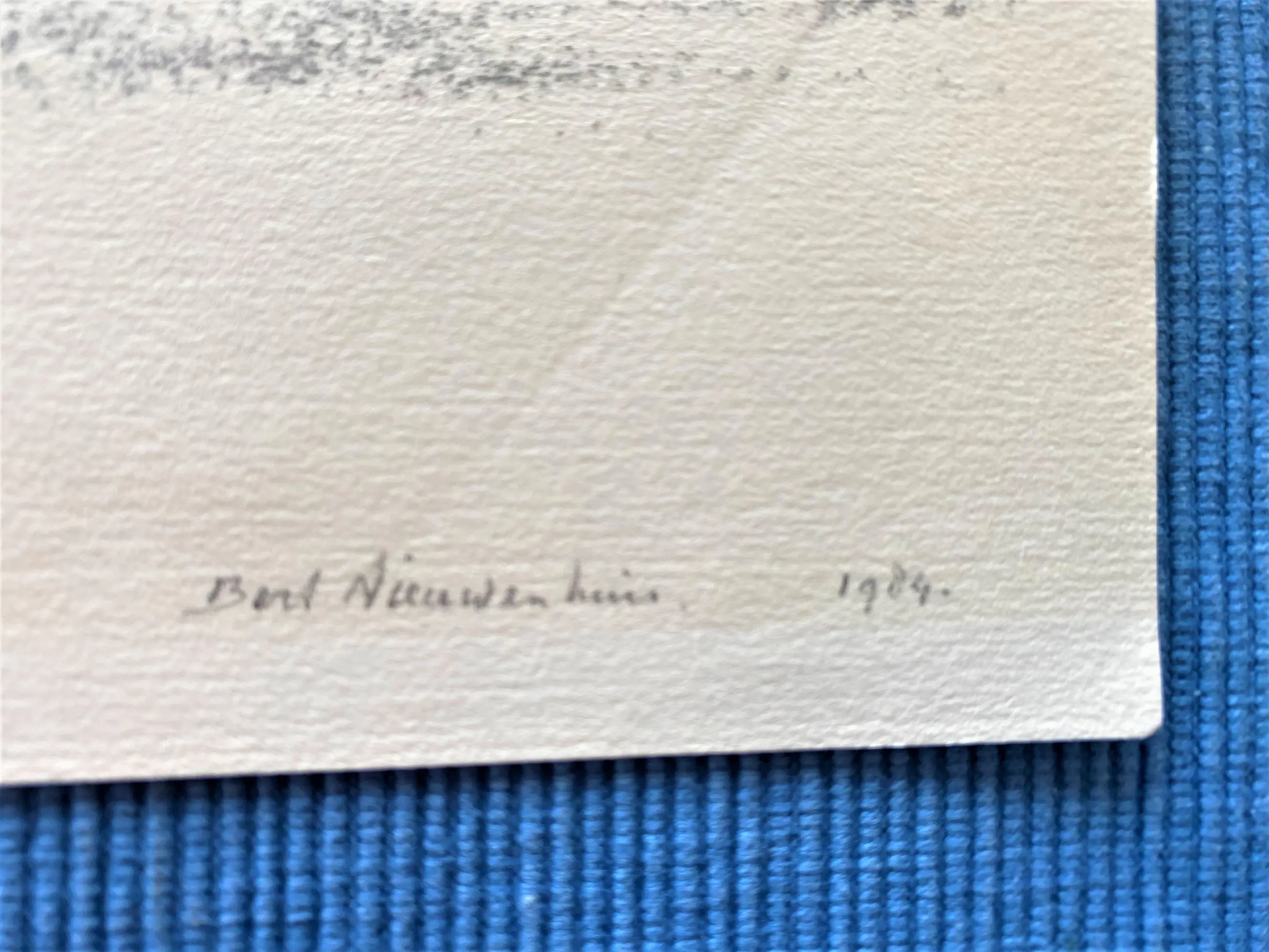 Het werk heeft in 2 hoeken een lichte vouw in het papier.