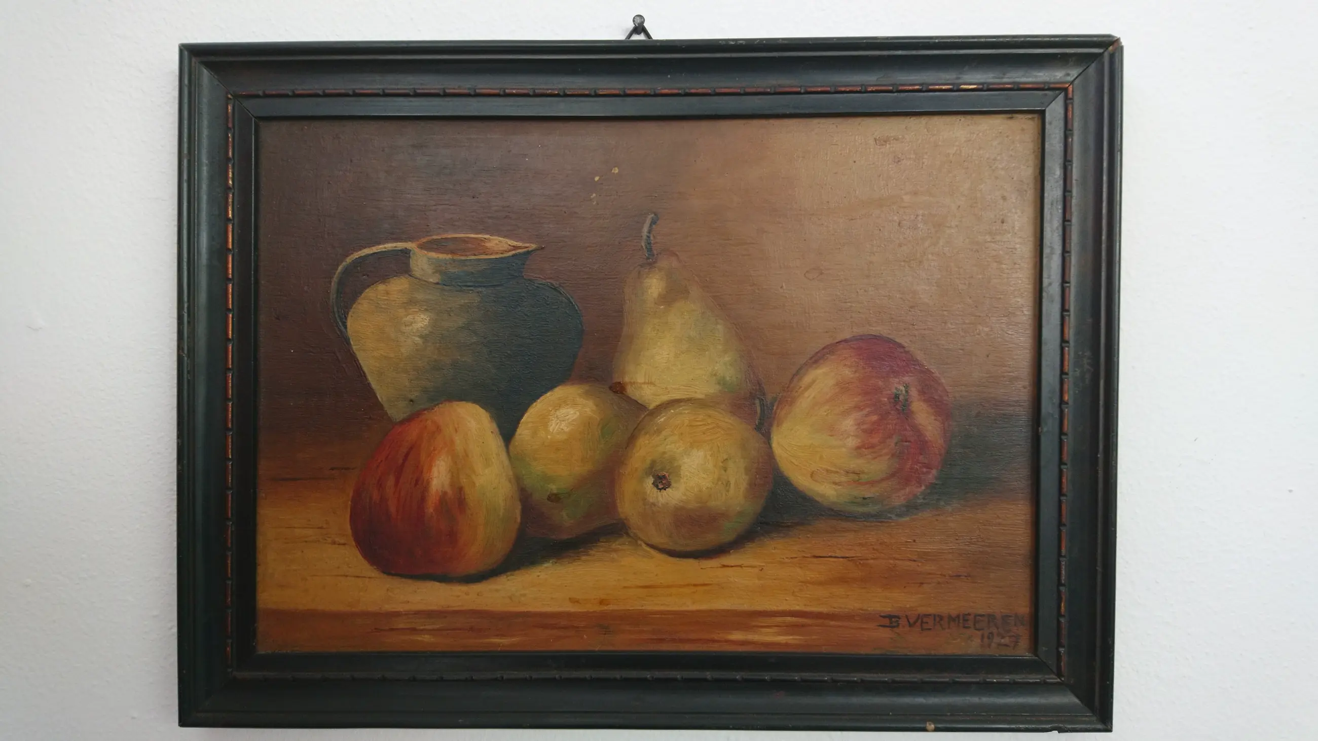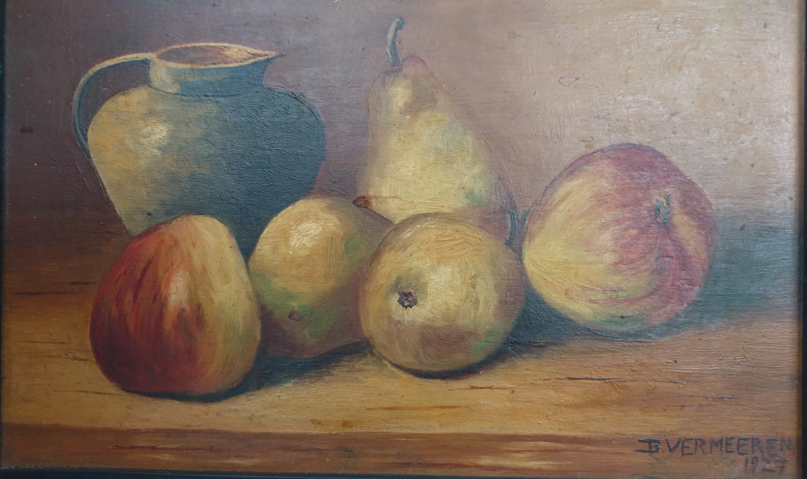 Olieverfschilderij (stilleven) op houten paneel van Bert Vermeeren (Teteringen, 20 januari 1910 - Breda, 24 januari 1967)
