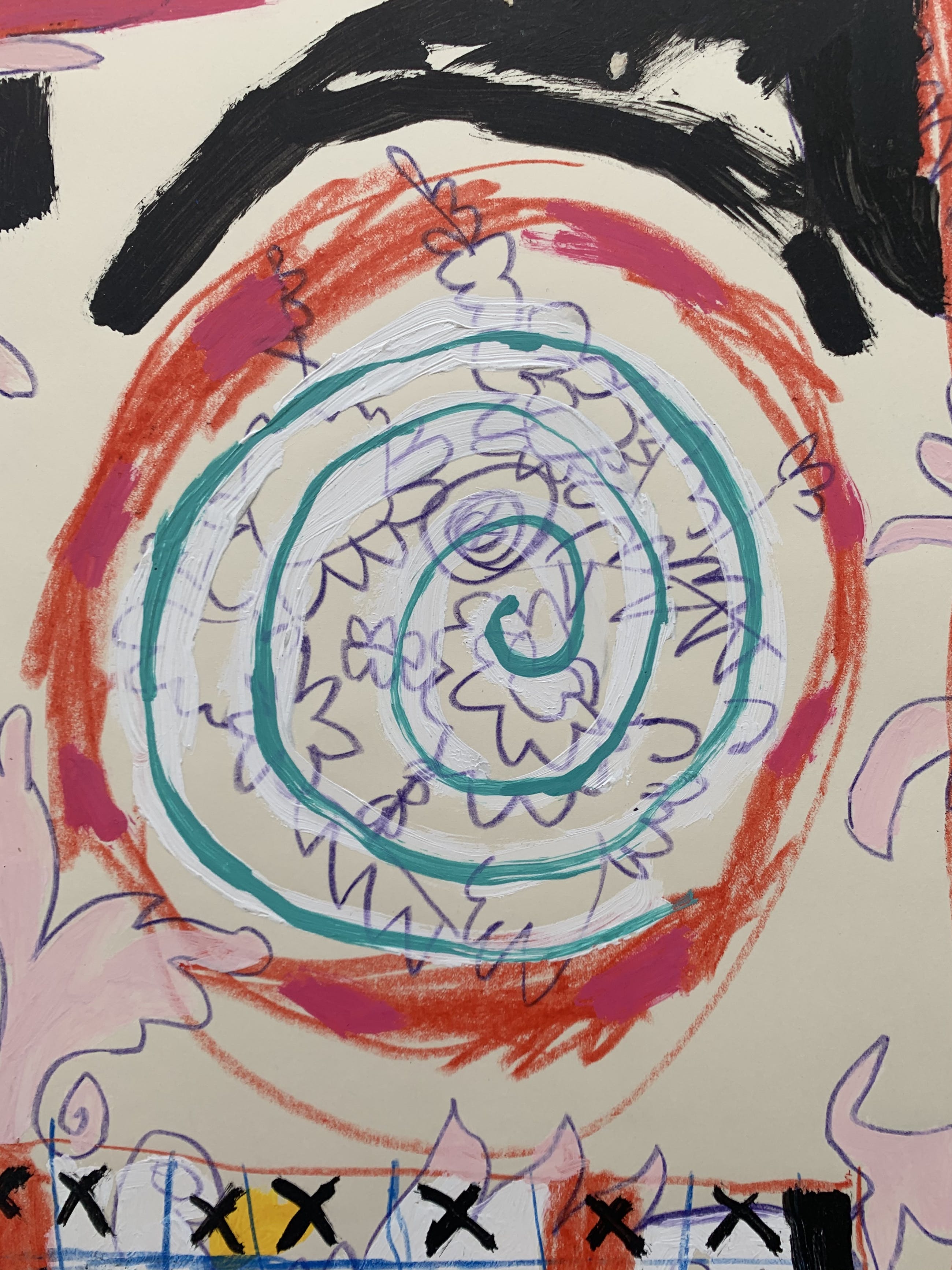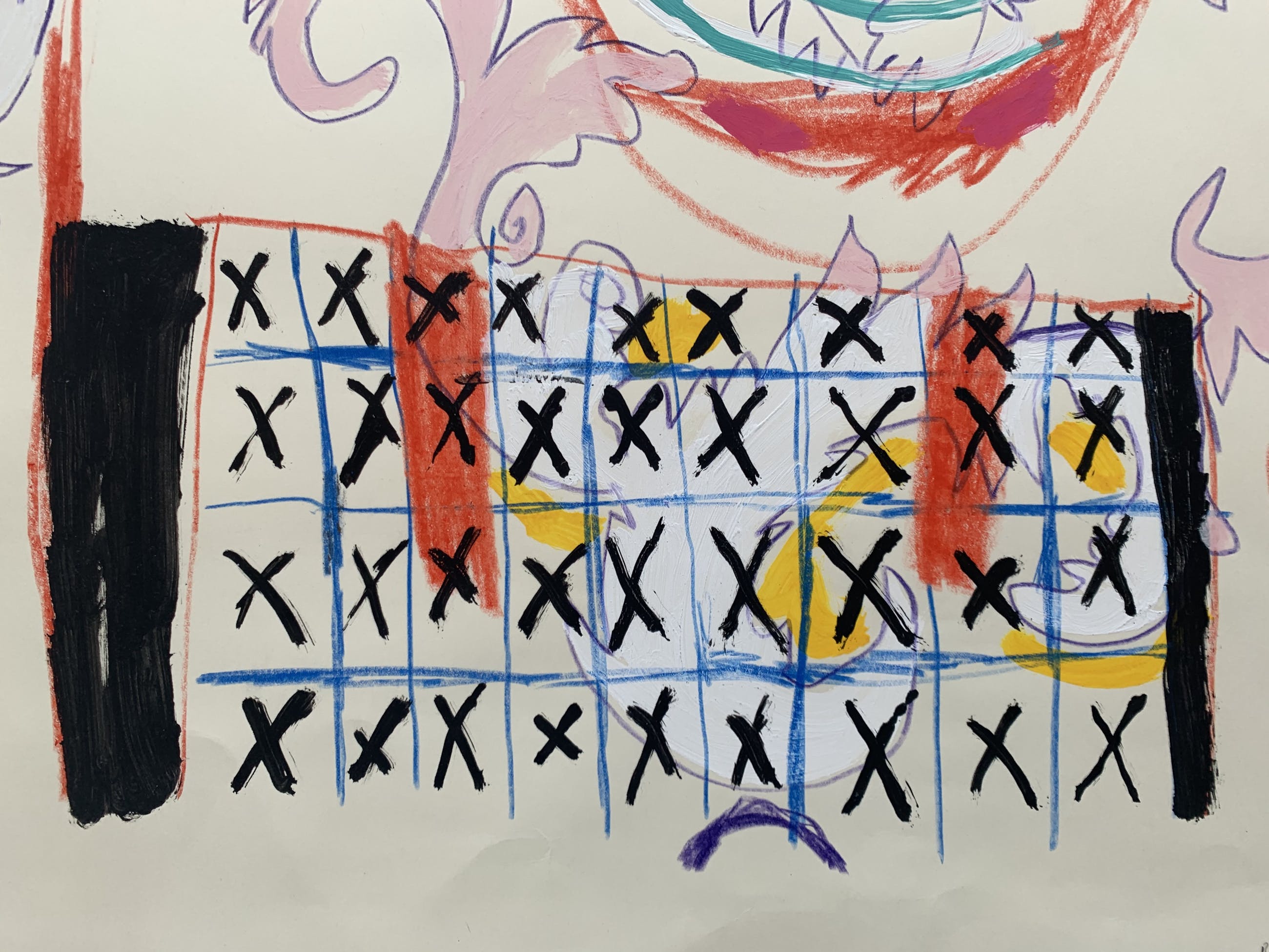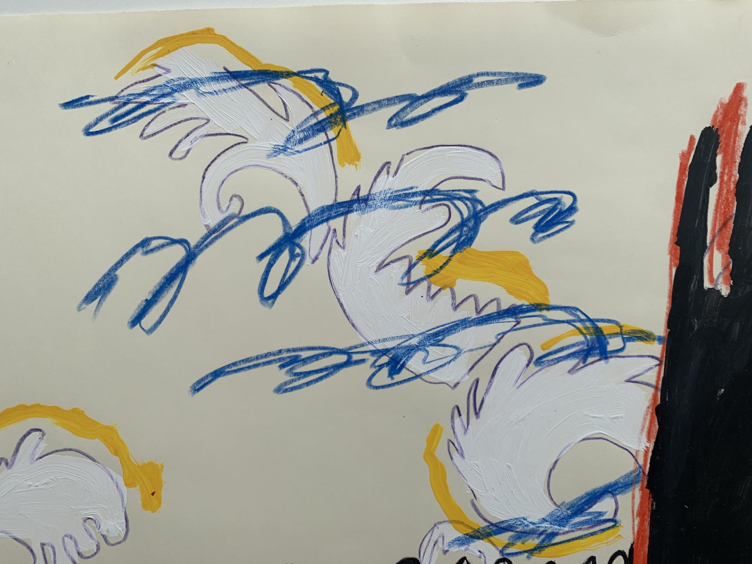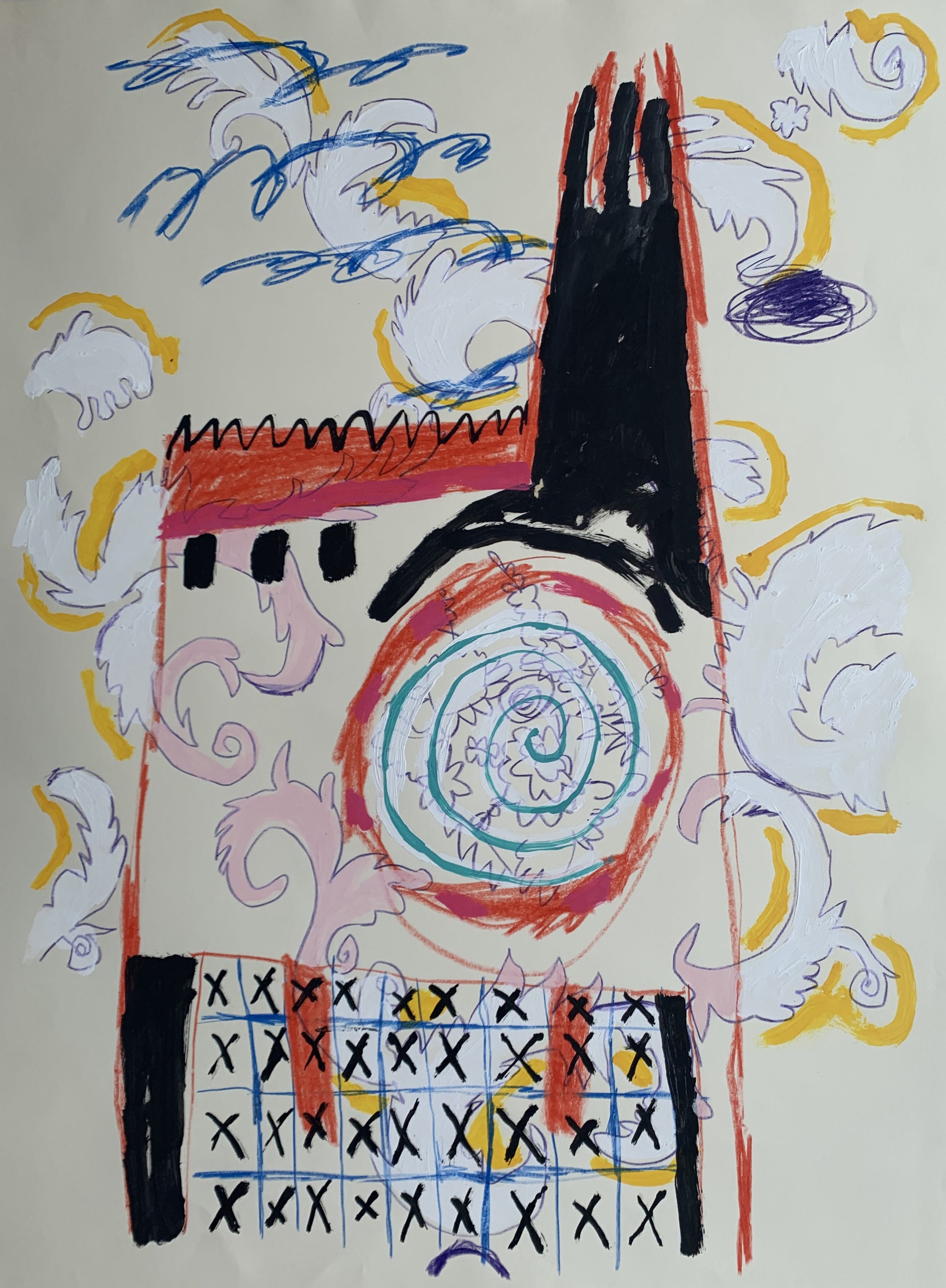 Krijt en acrylverf op papier van de hand van Bert Vredegoor.