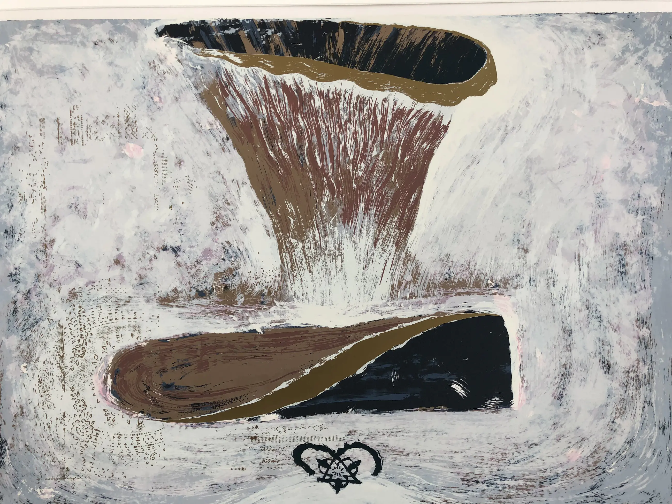 Middelgrote zeefdruk van Bert Vredegoor, prentmaat ca 55 x 77 cm en met passe partout 70 x 90 cm. Kunstwerk verkeert in goede staat. Gedrukt in een oplage van 45 exemplaren, dit is nummer32. Kan worden afgehaald met passe partout bij galerie Rotor in Gorinchem of verzonden worden zonder passe partout per aangetekende post in een stevige kartonnen verpakking.