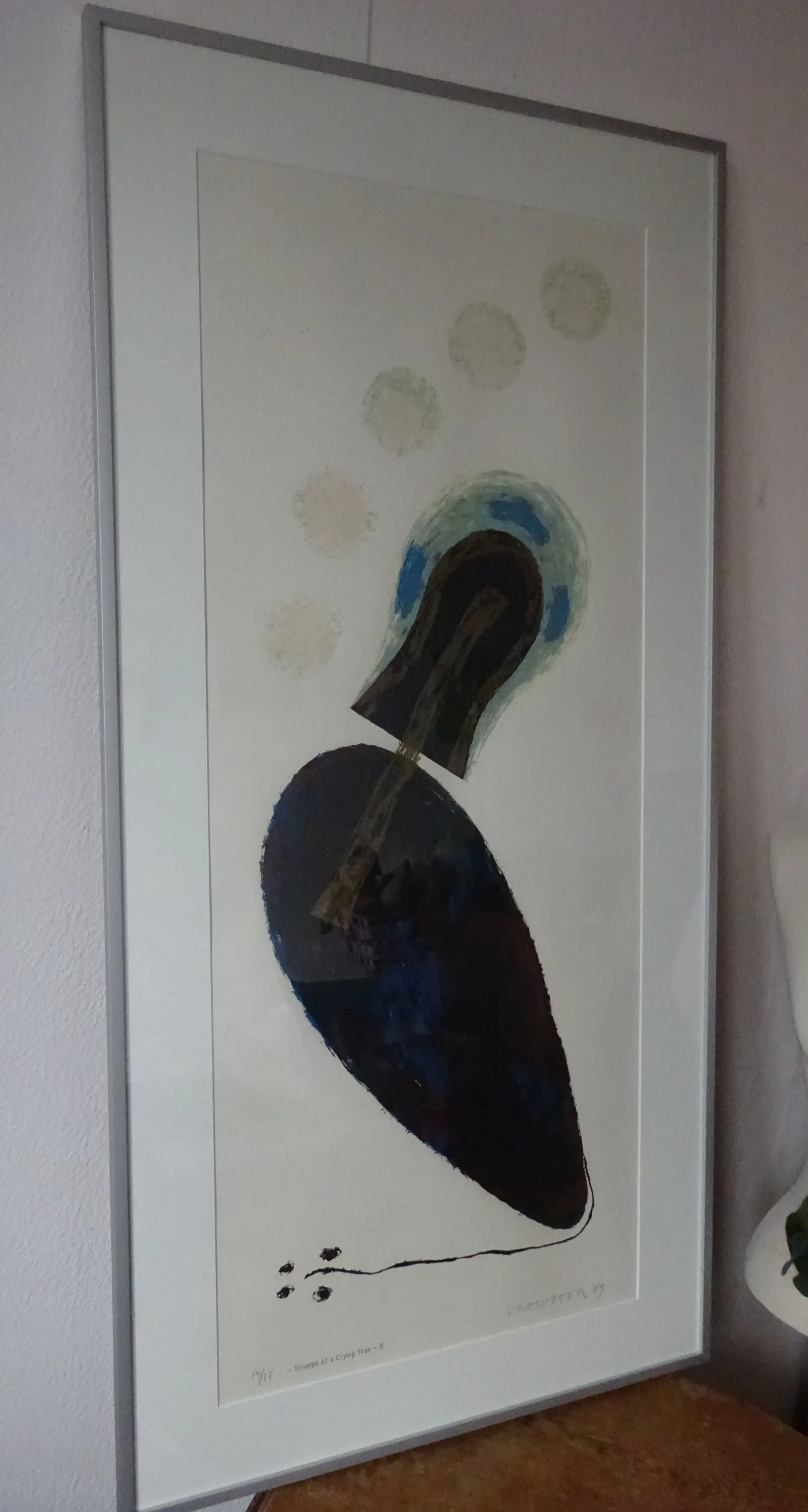 Zeefdruk: A Triumph of a Crying Tree- II Beeldend kunstenaar: Bert Vredegoor 1956 No: 14/25 Jaar: 1989 Afmeting: 45 x 100 cm, met passe-partout 55 x 110.5 cm Nieuwe metalen backlijst