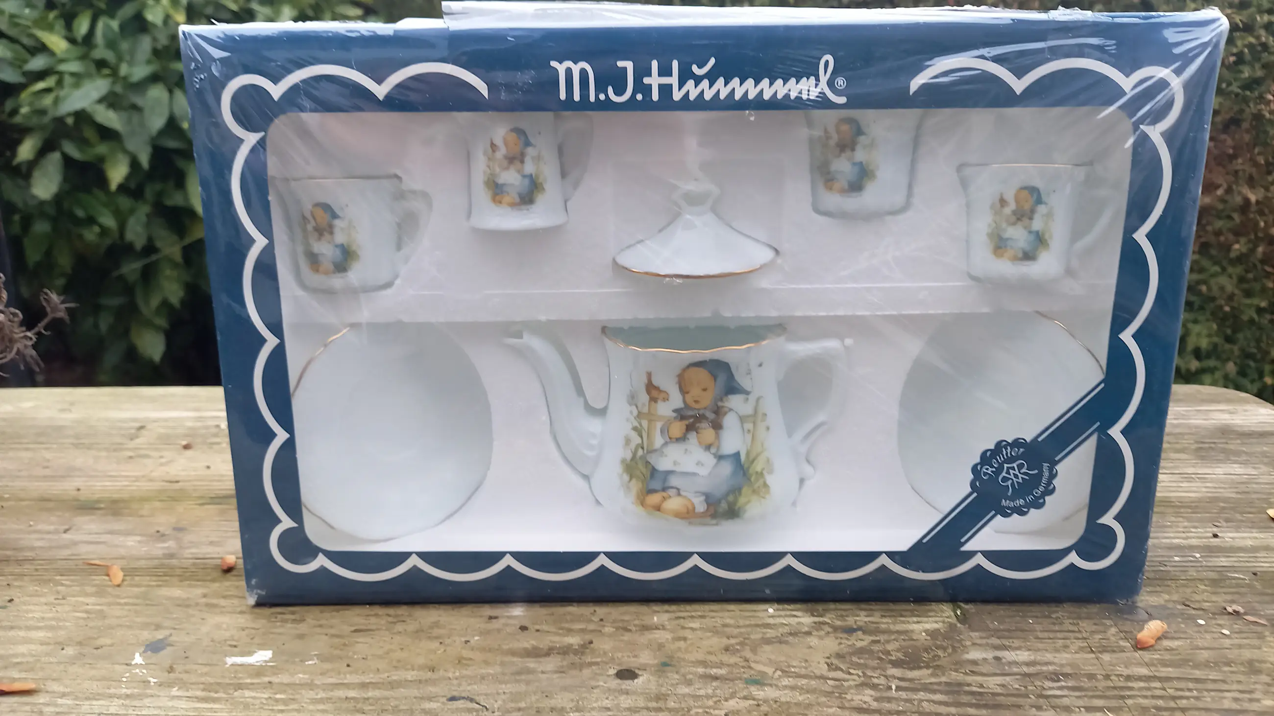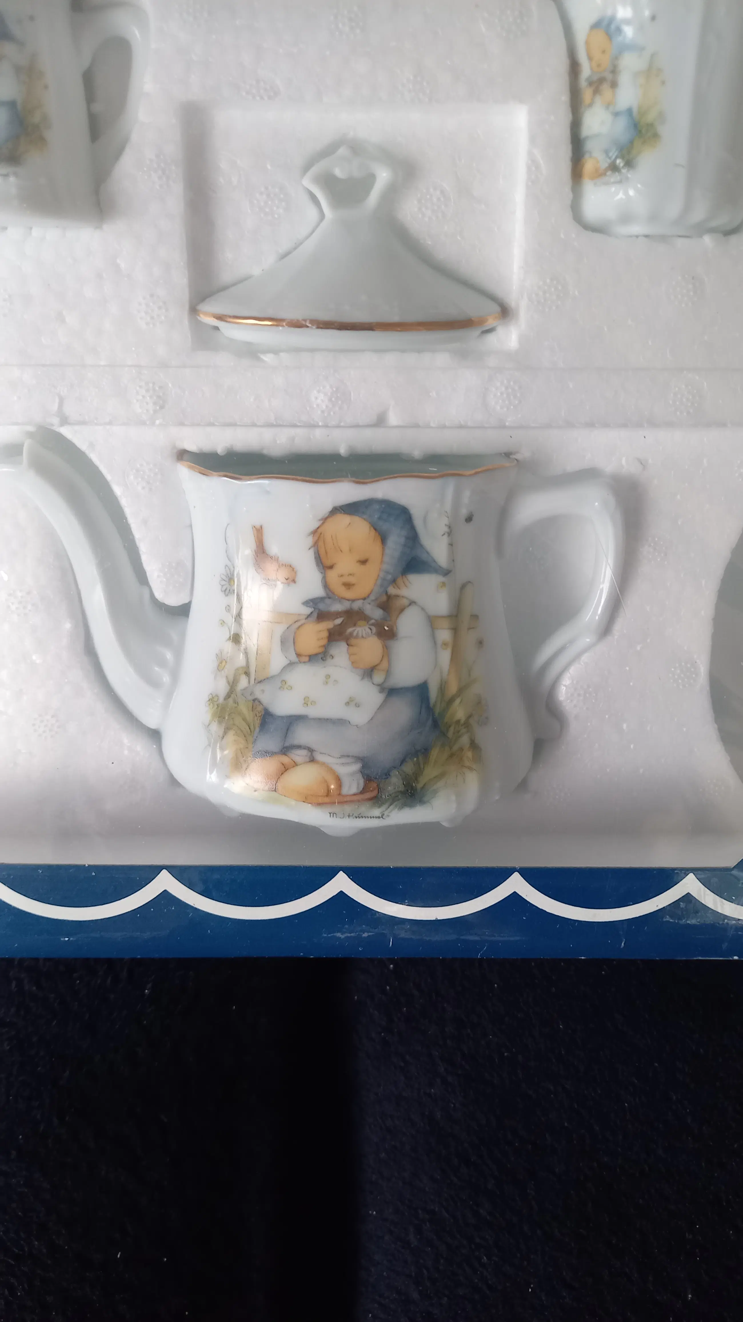 Kinderserviesje theepotje,suikerpotje,melkkannetje, 2 kop en schotel.