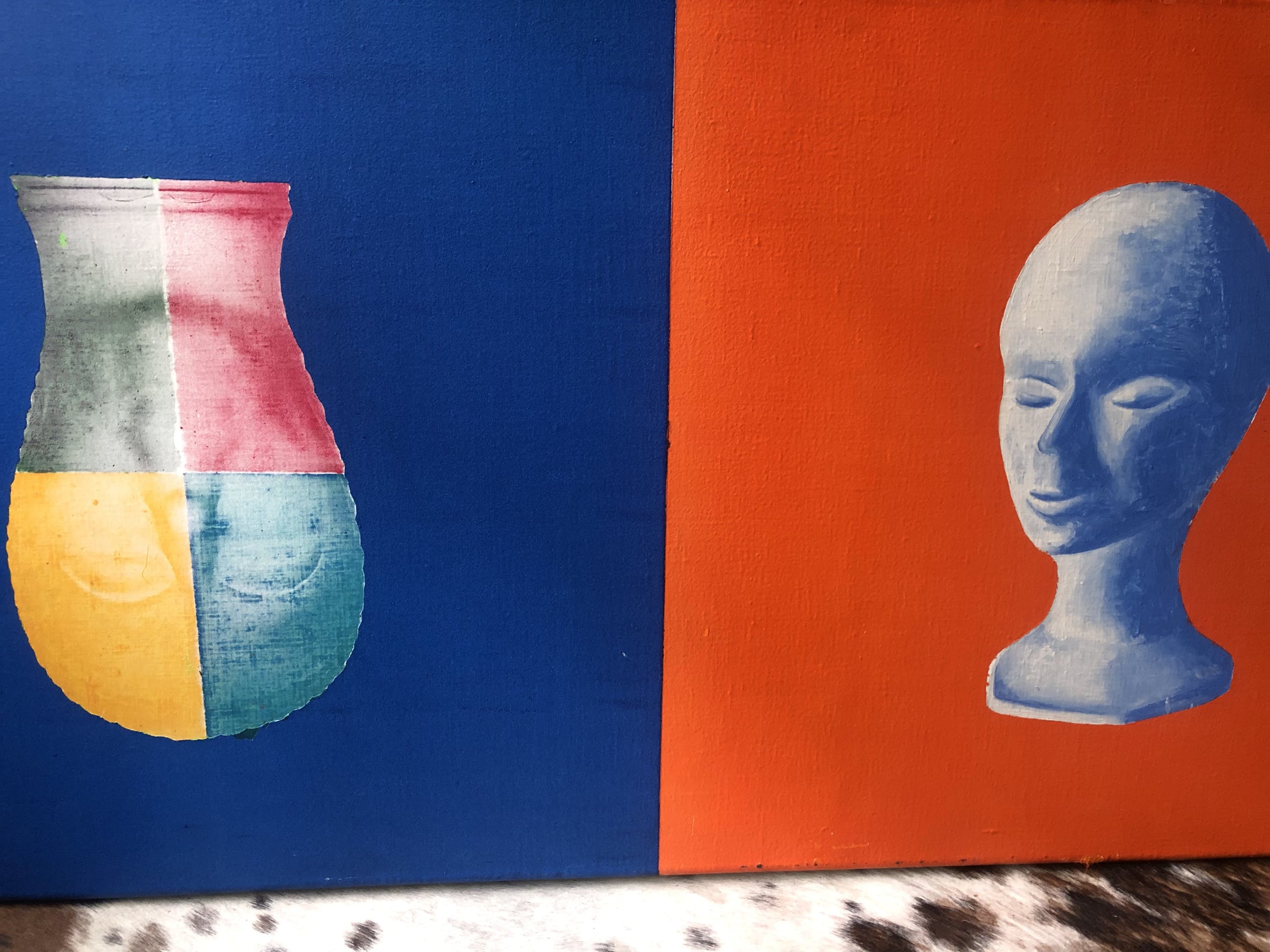 Bertil Neijts 1960“Vaas en gezicht”1989Groot werk 50x100 cm Gesigneerd op de achterkant en gedateerd