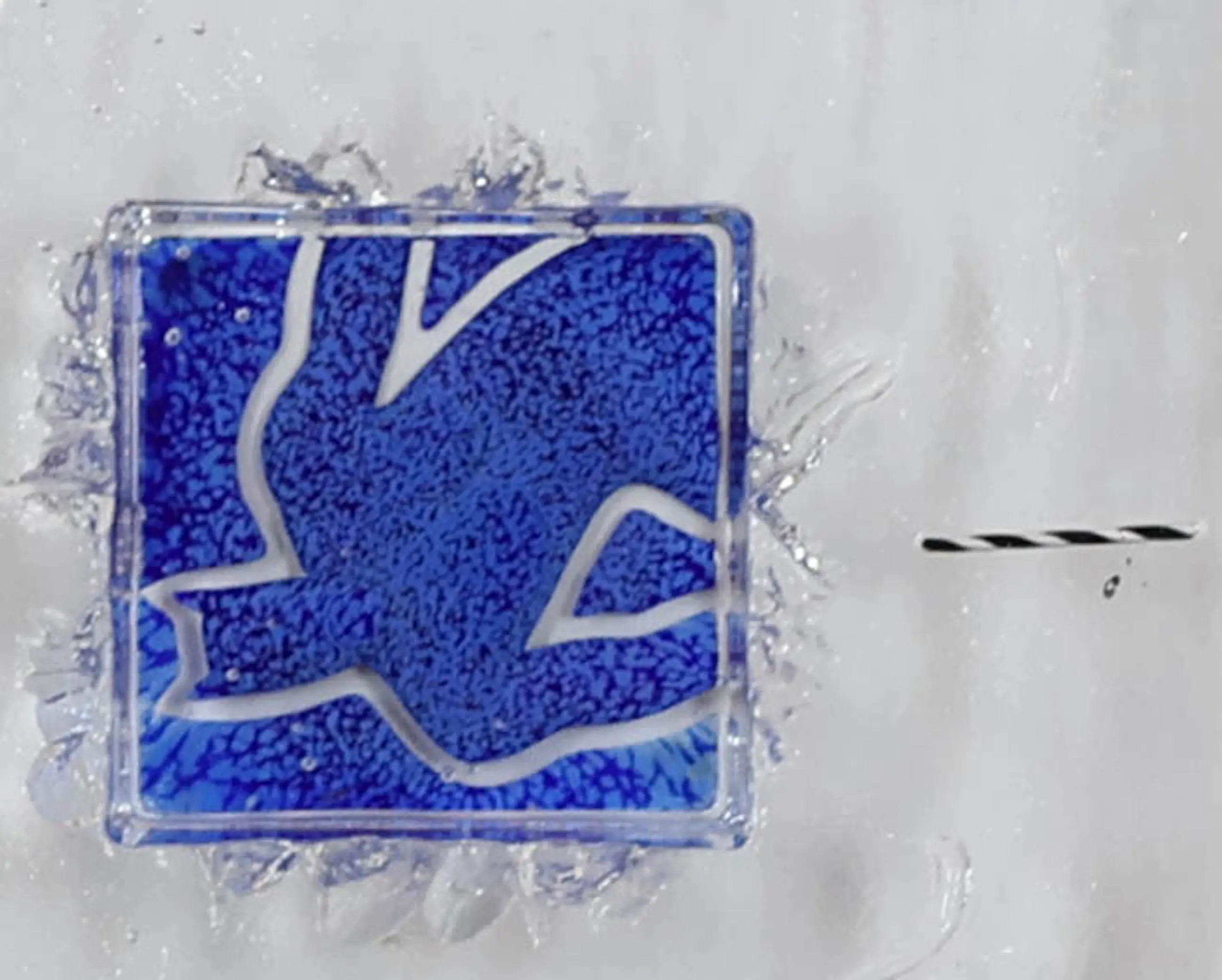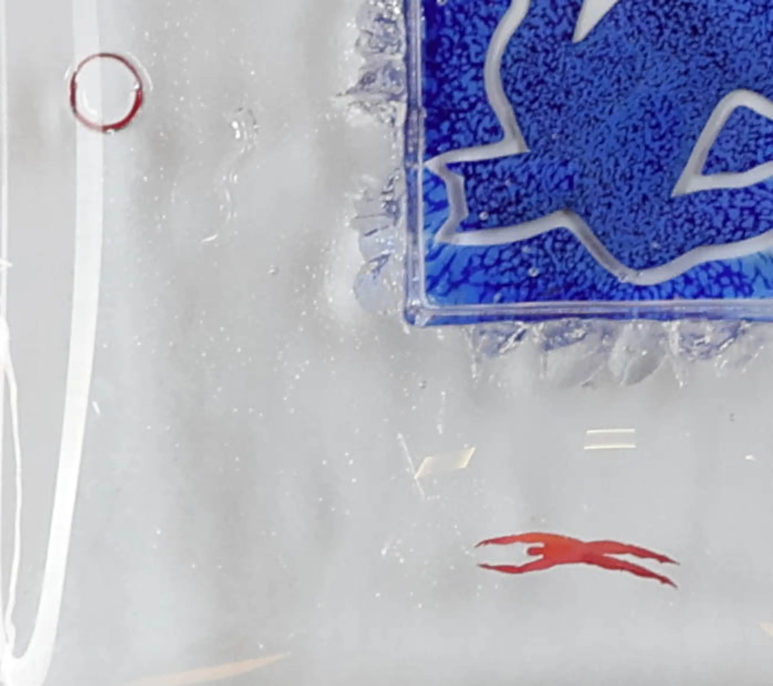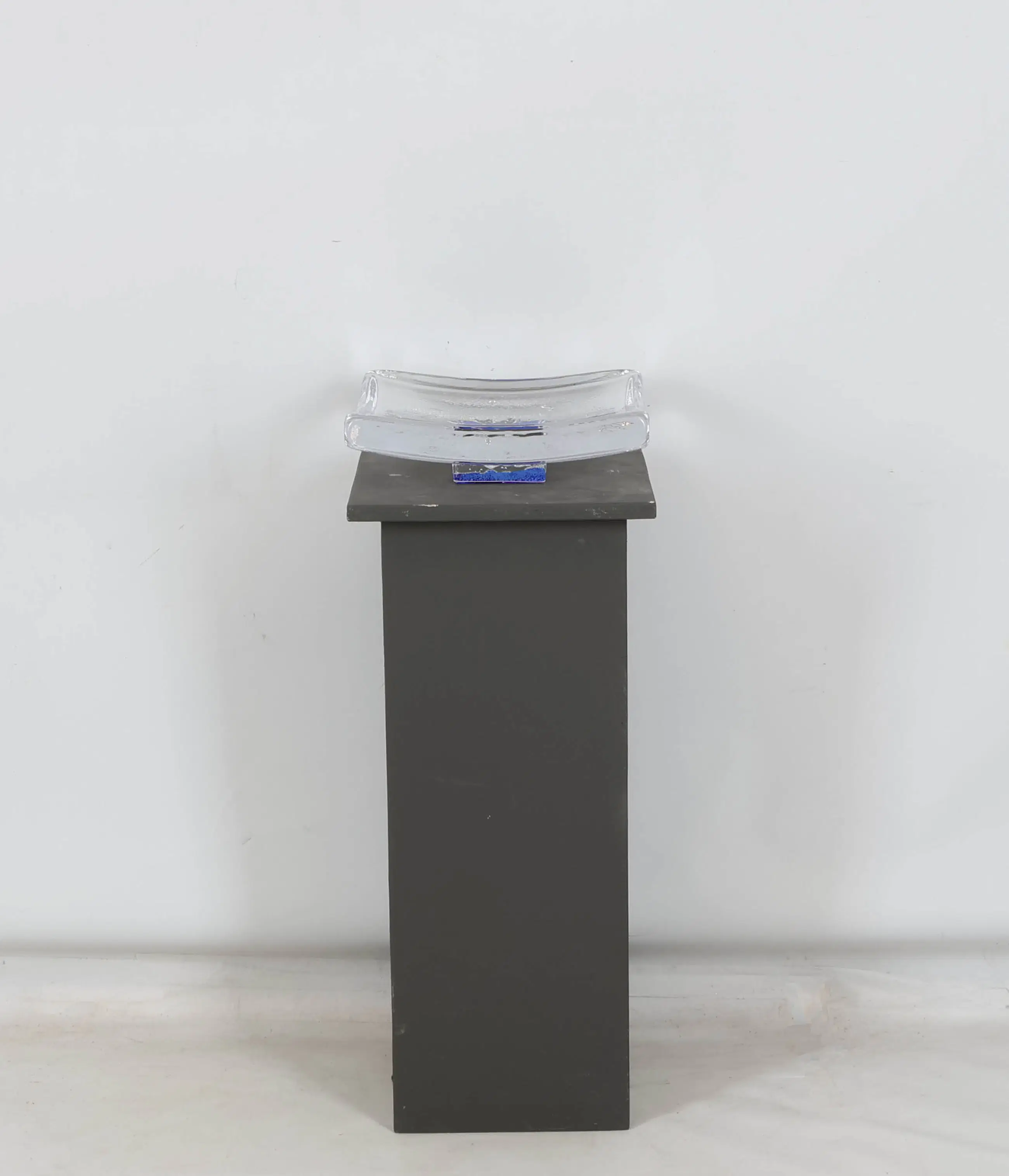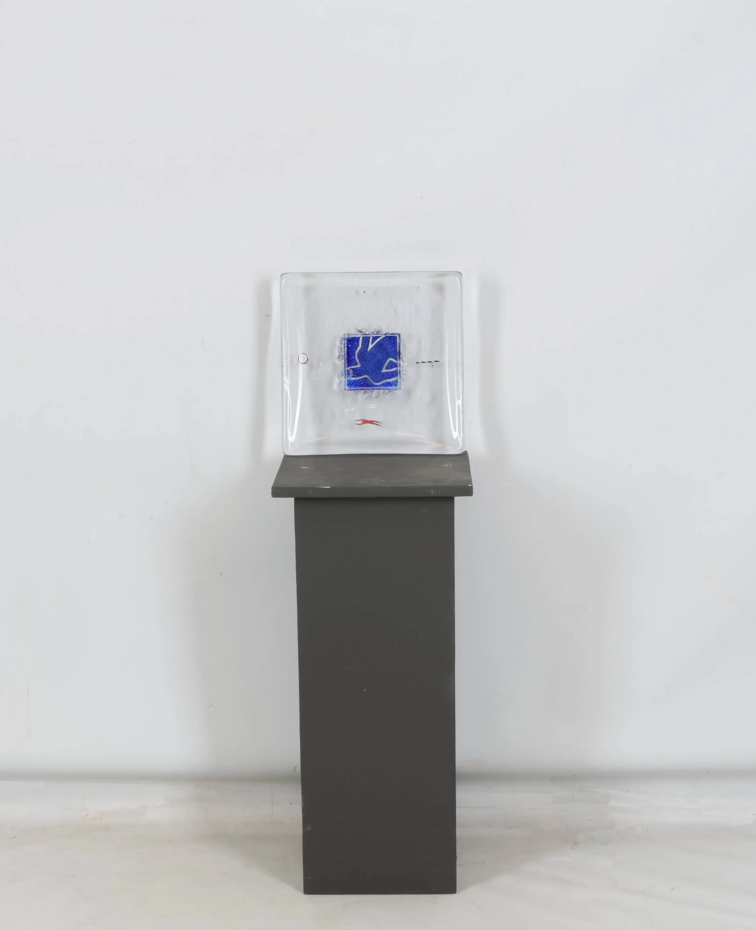 Dit glaskunstwerk is vervaardigd door Bertil Vallien en bestaat uit een massief glazen schaalvorm waarin verschillende figuren zijn opgenomen, waaronder een klein zwemmend figuur. Het werk is typerend voor Valliens verhalende en symbolische benadering van glas, waarbij transparantie en diepte een belangrijke rol spelen.