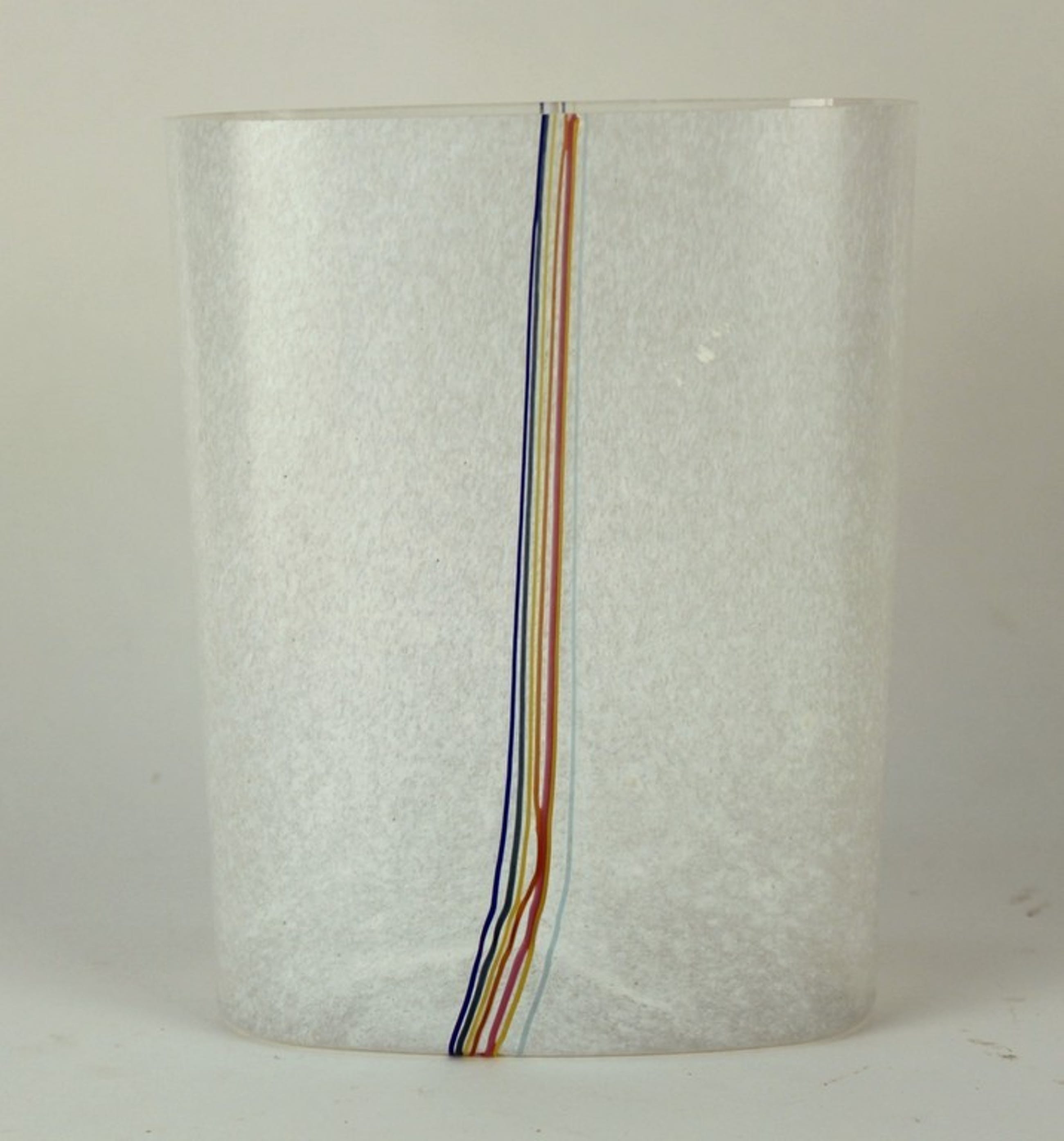 Ovale glazen vaas uit de beroemde Rainbow-Serie van Bertil Vallien voor Kosta Boda, Zweden.