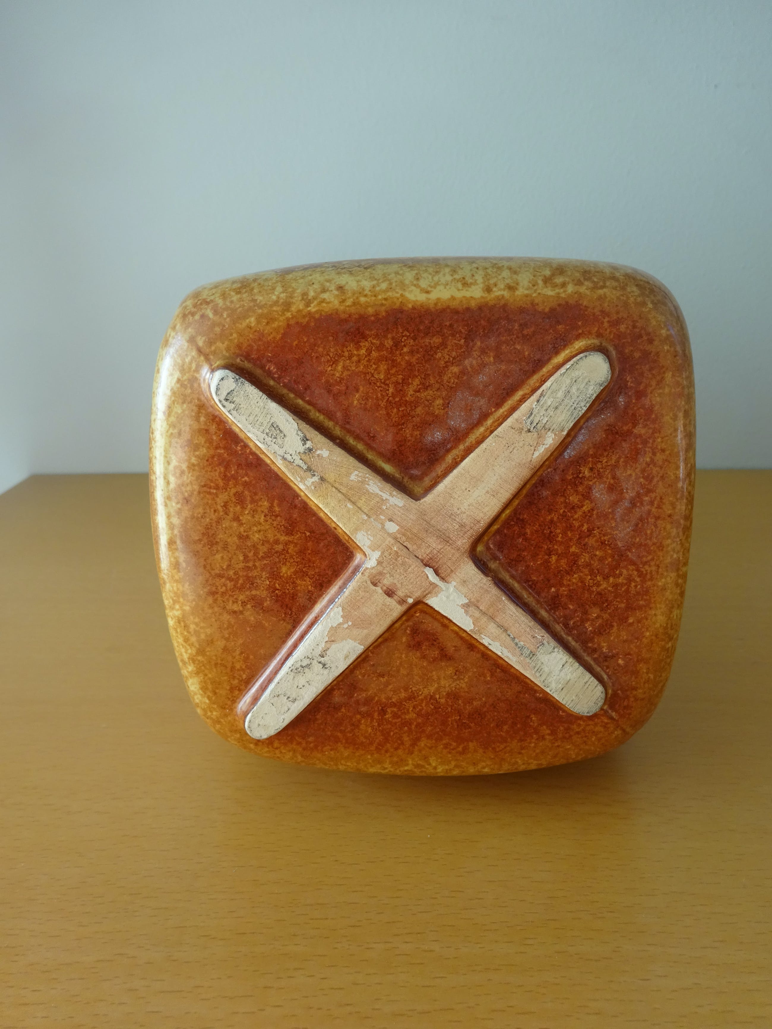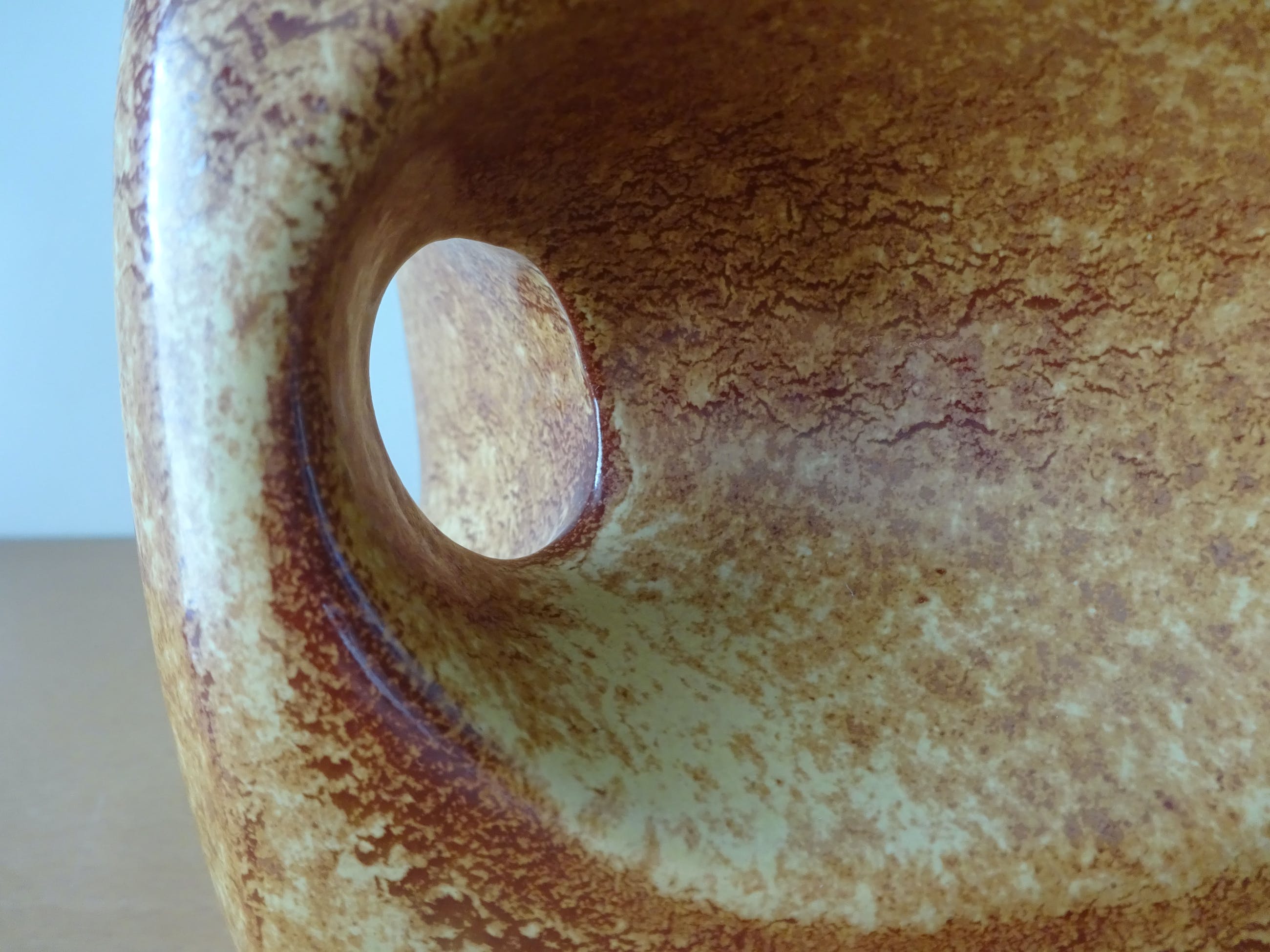 Dit is een beige glazuur over een donkerbruin glazuur. Deze laatste kleur is veel gebruikt in de periode 1975-1998