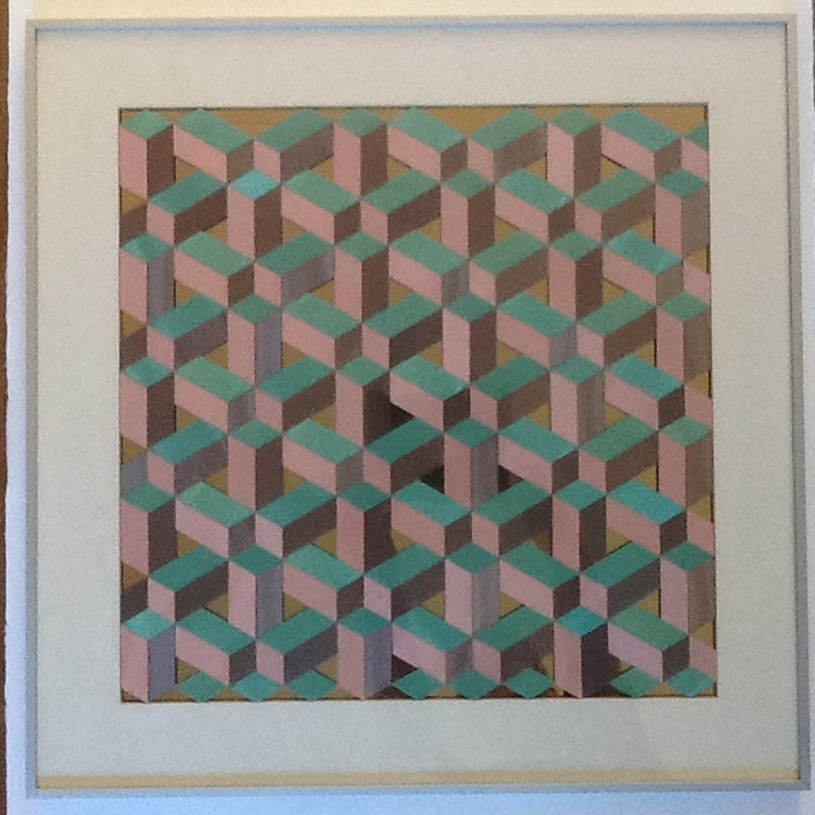 De lijstafmeting is 66 x 66 cm, het werk zelf is 50 x 50 cm. Het werk is in een prima staat.