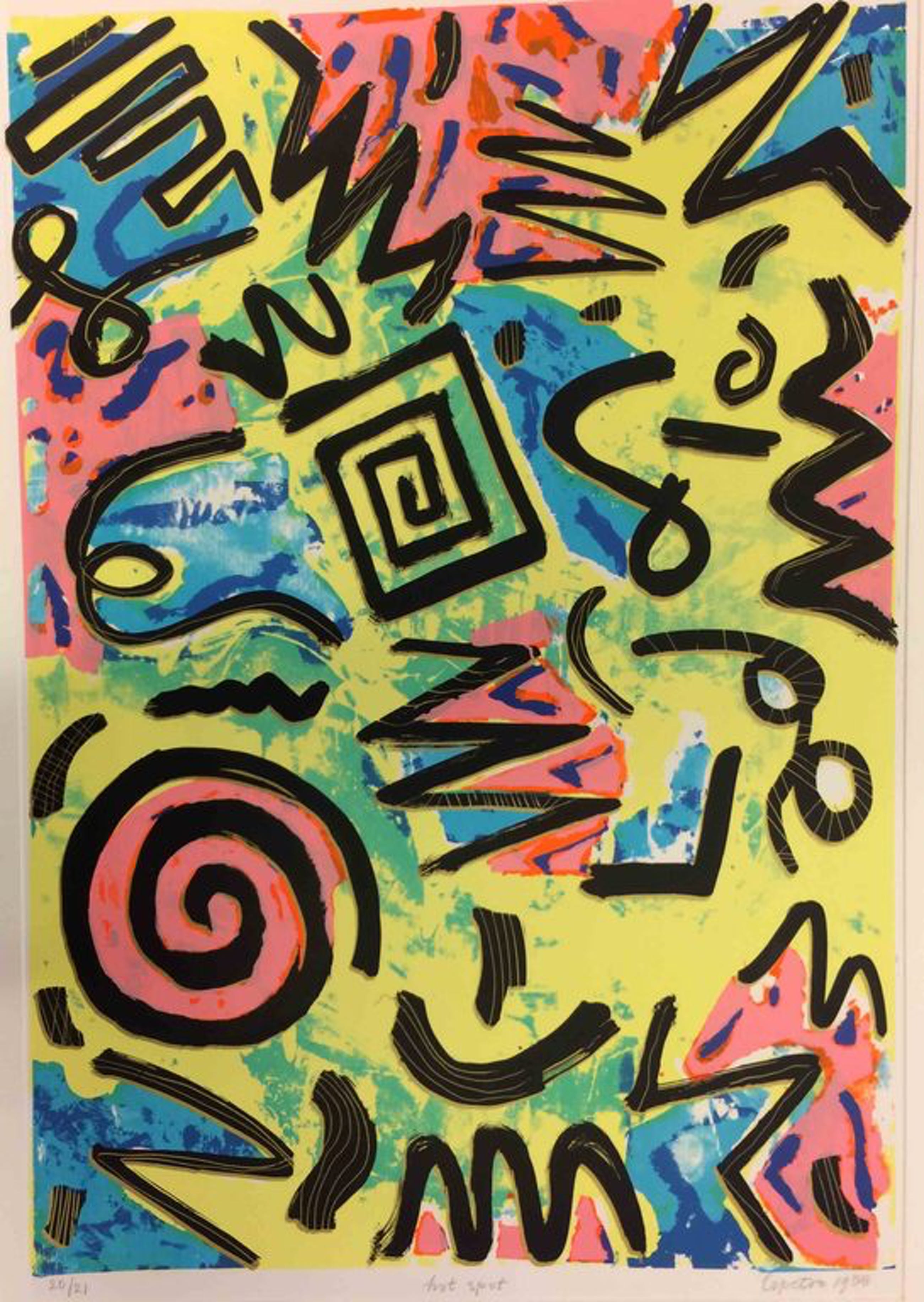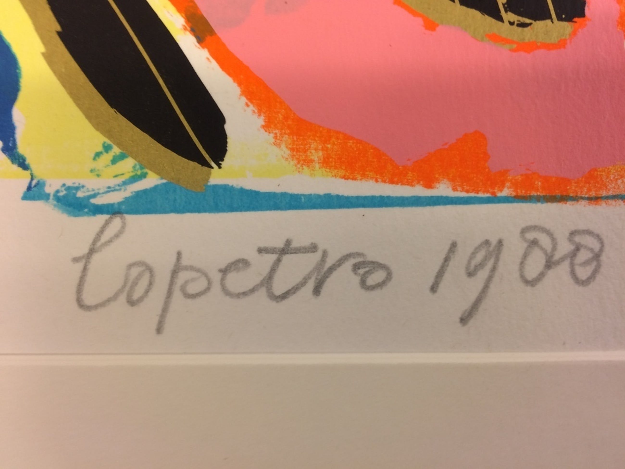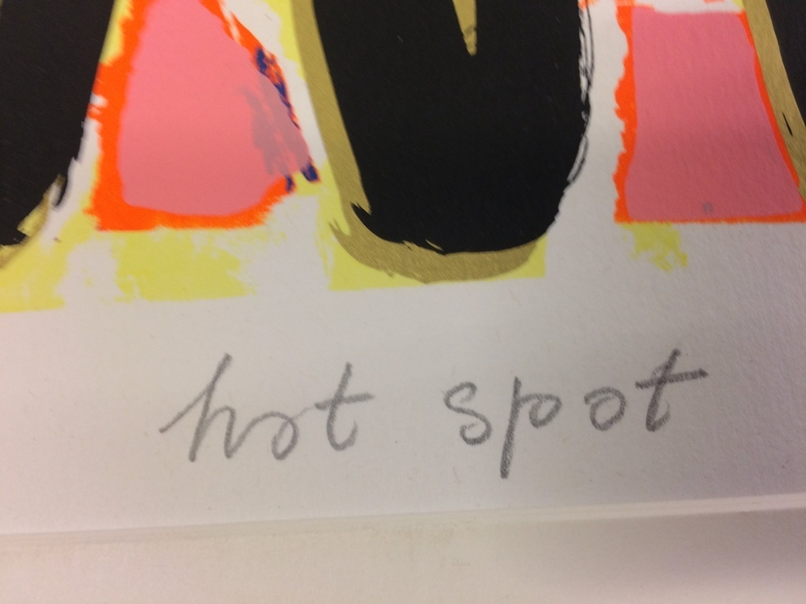 Deze grote en kleurrijke zeefdruk van Bettina Lopetro uit 1988 is in prima staat en heeft een afmeting van 96 x 66 cm. Hot Spot is gemaakt in een oplage van 21 exemplaren. Dit is nummer 20. Het werk kan worden opgehaald in onze galerie in Arkel of kan worden verzonden in een stevige. We hebben een grote collectie werken van Bettina Lopetro in onze galerie in Arkel.