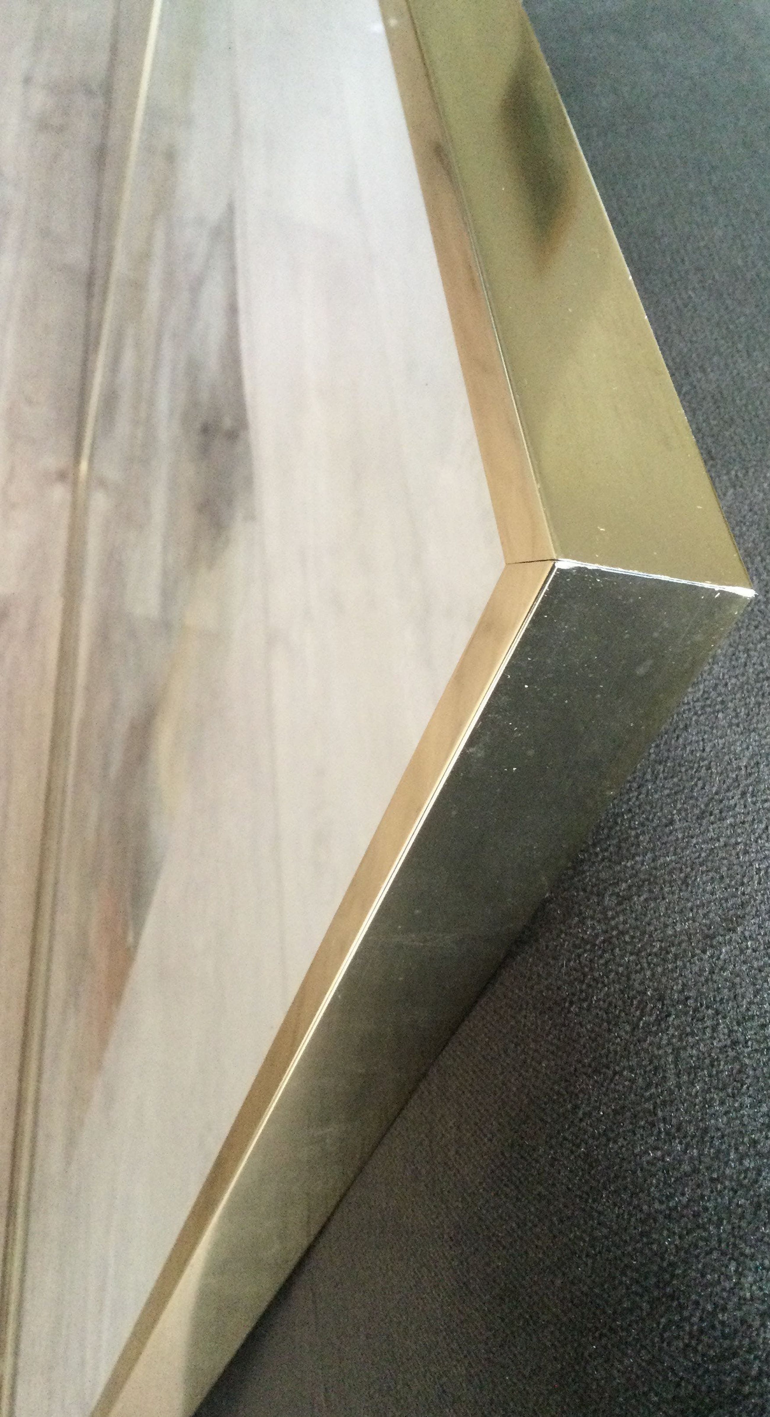 | Lichte golving in het blad, valt nauwelijks op; in sjieke en zware goudkleurige metalen wissellijst met nauwelijks gebruikssporen. Zie ook foto's. | |