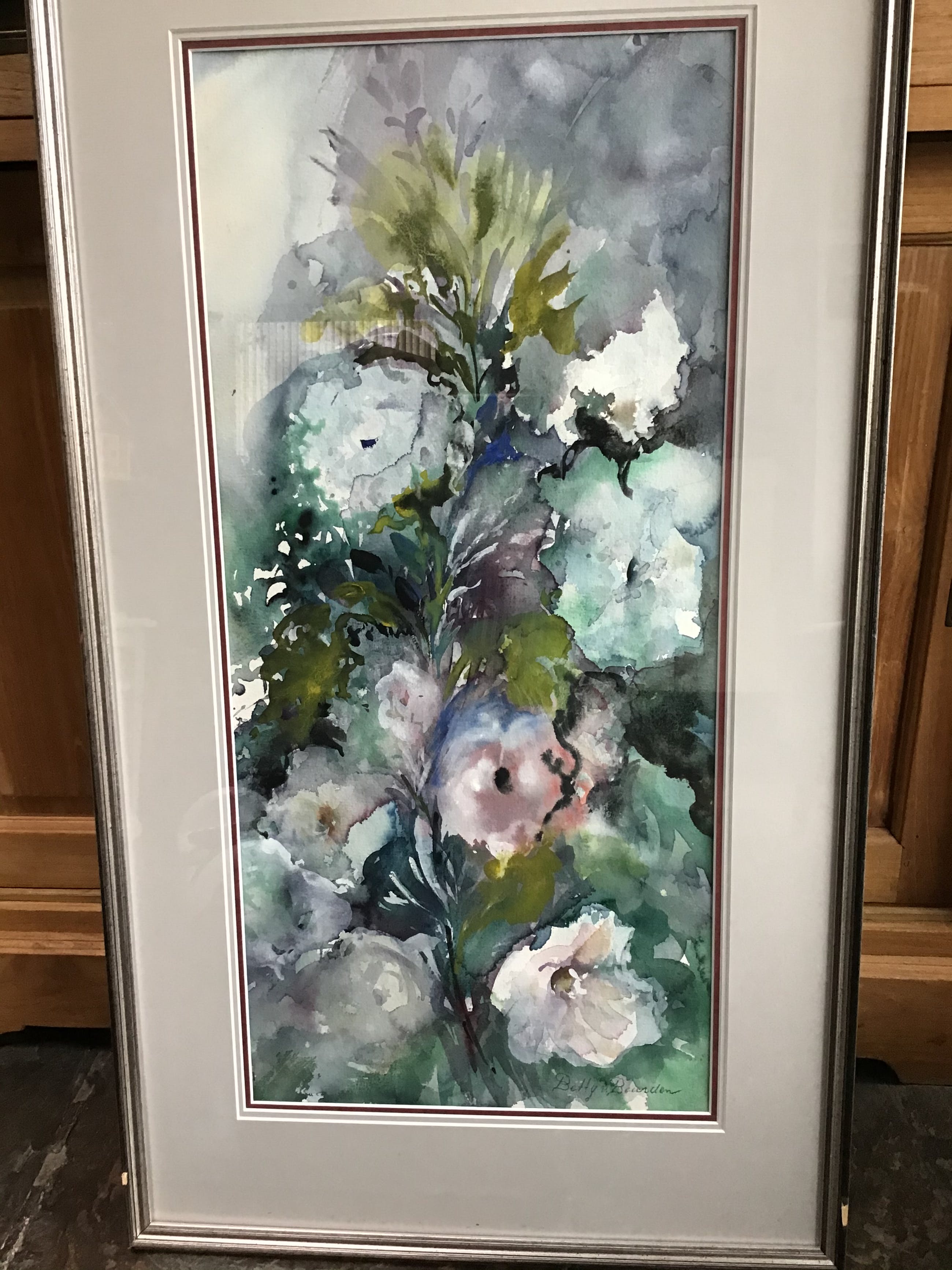 Erg mooi stilleven van Eindhovense aquarellist Betty van Beurden. Geboren 1928 als Maeria Elisabeth Theodora Theeuwen. Lijst op twee plaatsen beschadigd. Verzenden is mogelijk maar gezien de grootte en het glaswerk is in overleg halen of brengen een optie. De lijst moet eenvoudig te repareen zijn.