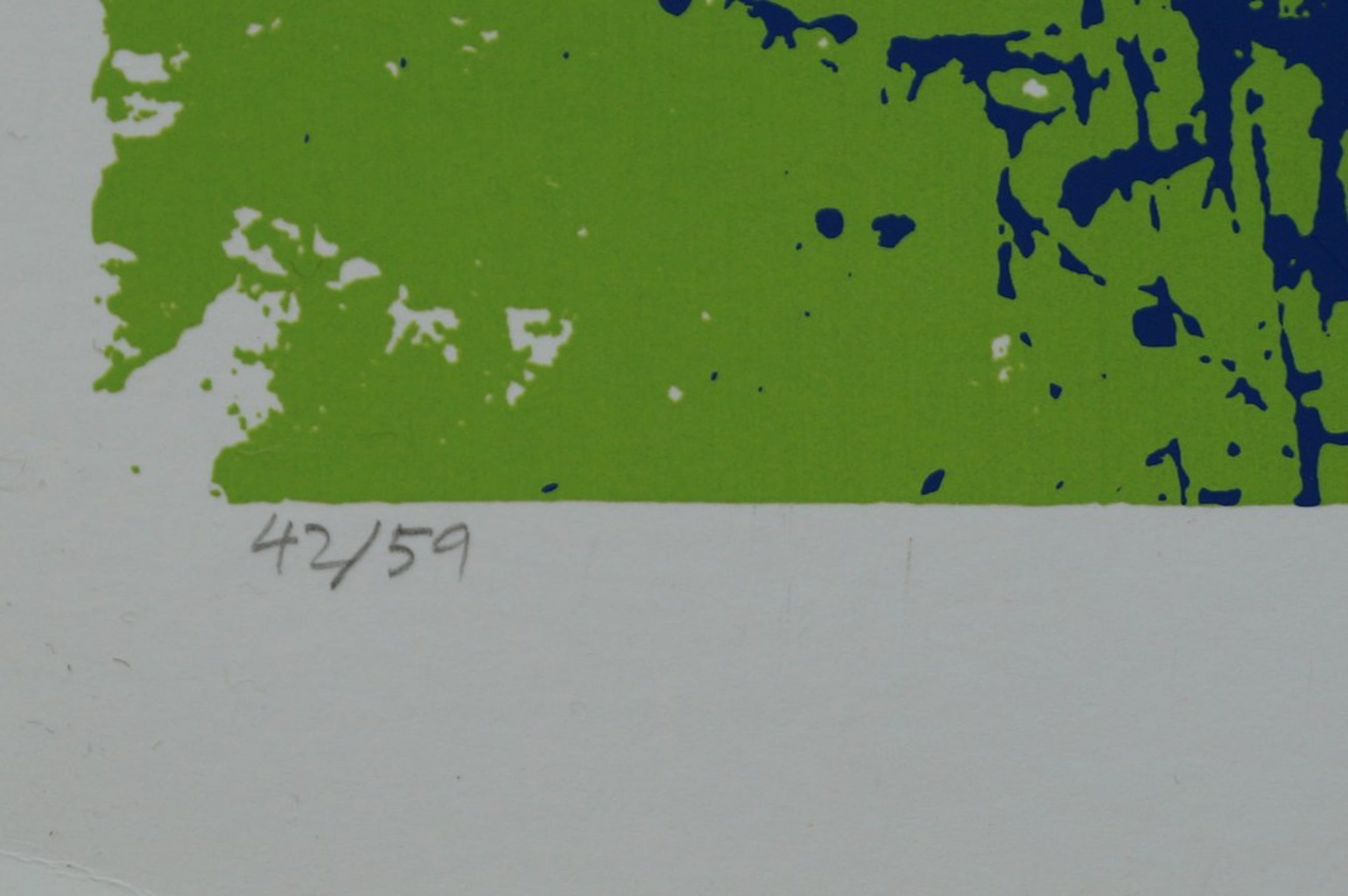 Conditie: de zeefdruk verkeert in zeer goede staat, is nog nooit ingelijst geweest