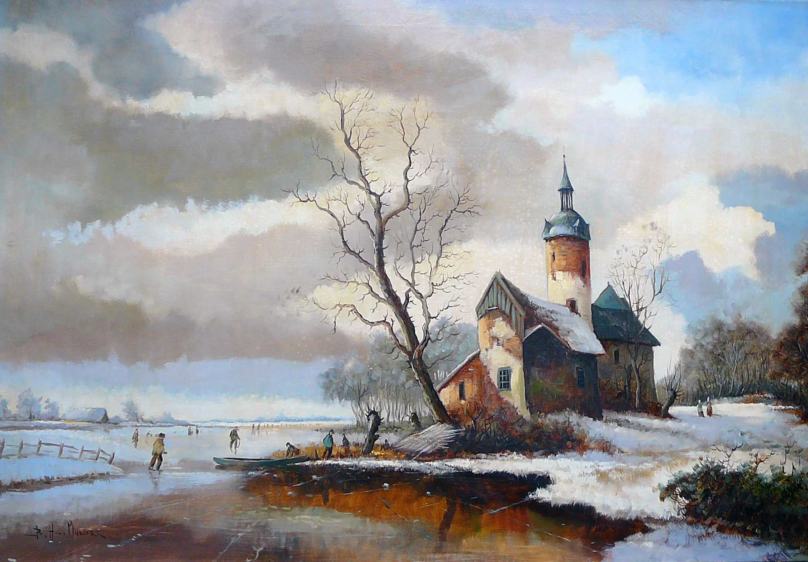 In zeer goede staat verkerend olieverf op canvas doek van de hand van de kunstschilder B.H.C. Mulder, linksonder gesigneerd. Landschap vermoedelijk Noord-Duitsland. Professioneel gereinigd zonder lijst.