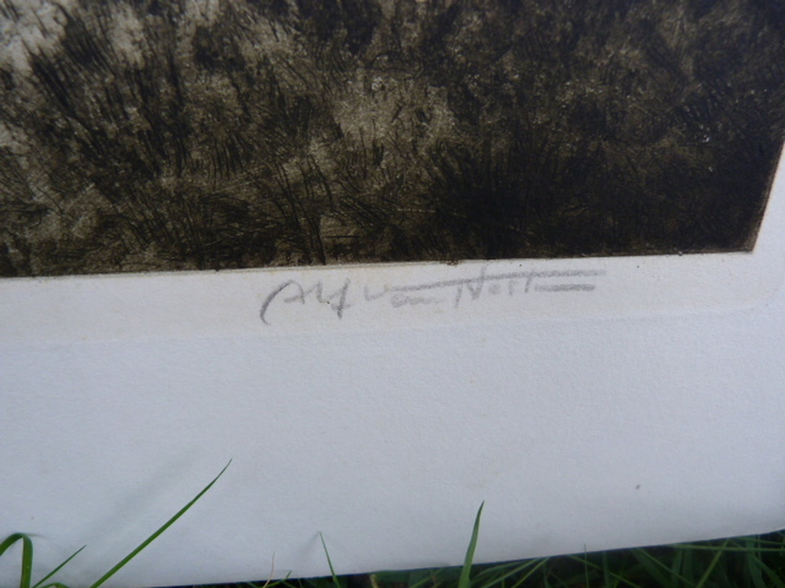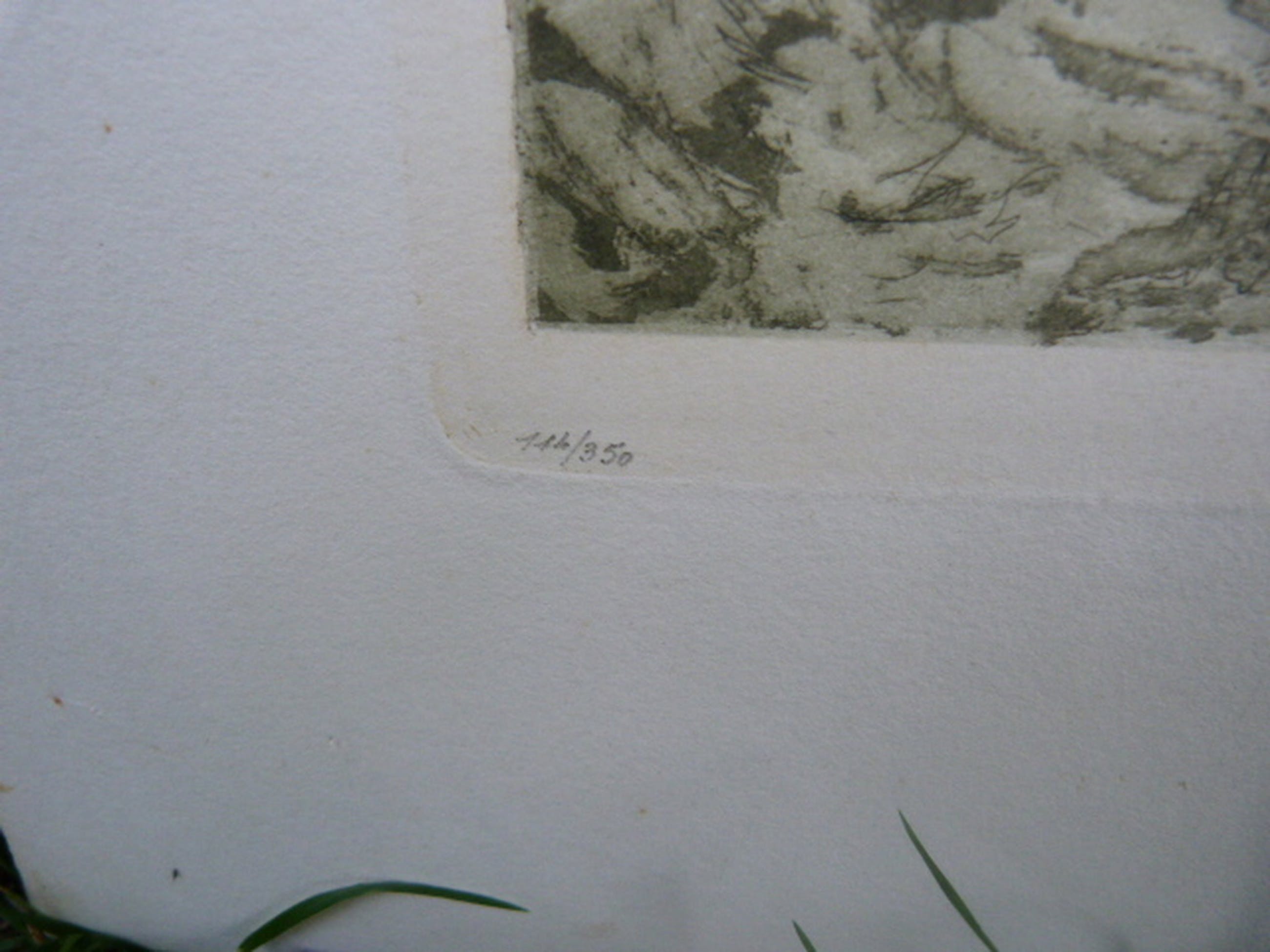 Ets : 60 x 48 cm. Volledig blad : 75 x 61 cm.