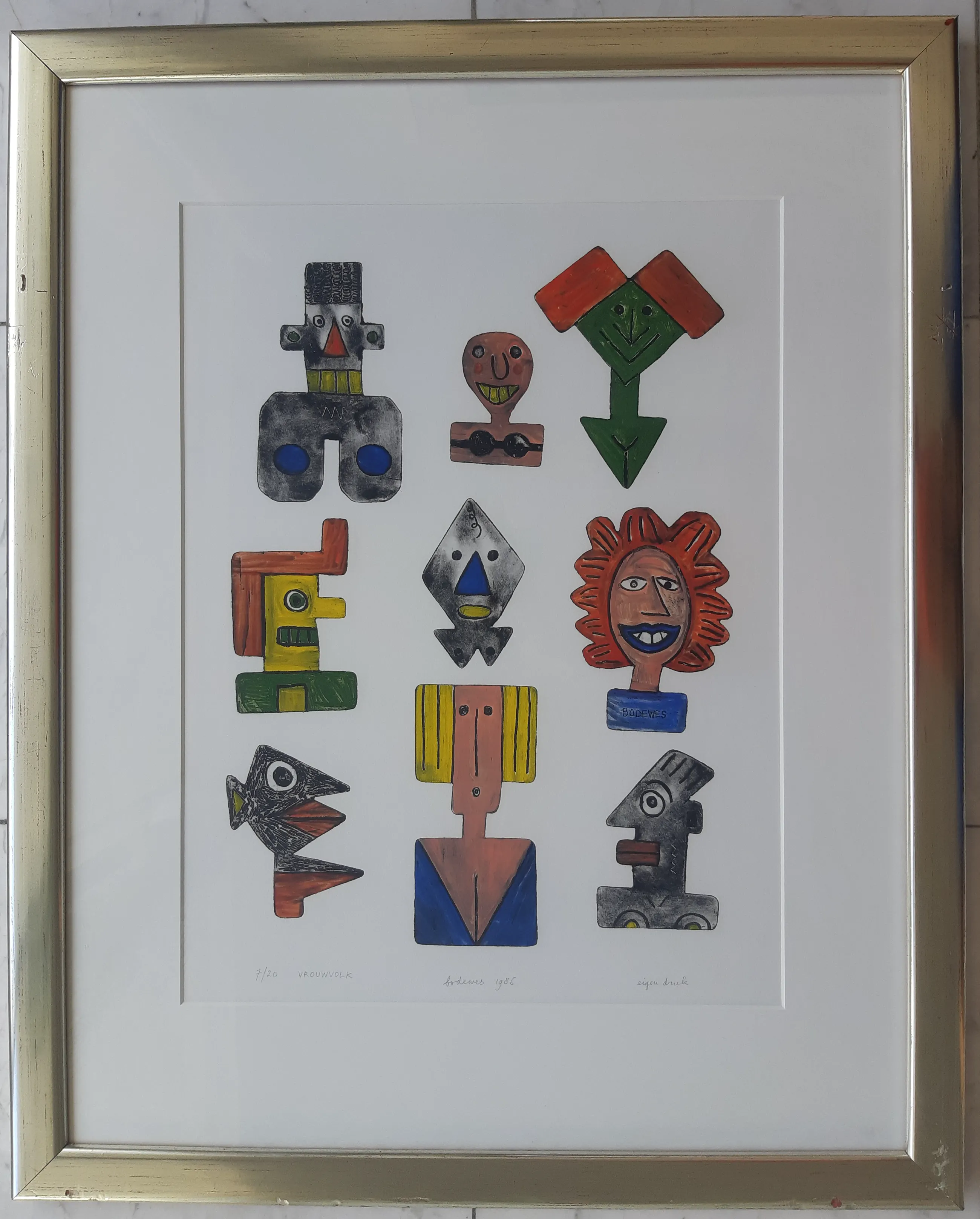 Ets van Bill Bodewes, op de plaat met de hand ingekleurd, waardoor ieder exemplaar uniek is. Met potlood gesigneerd, genummerd, gedateerd en van titel en annotatie eigen druk voorzien. De ets is in uitmuntende staat, de zilverkleurige houten lijst heeft beschadigingen (zie foto).