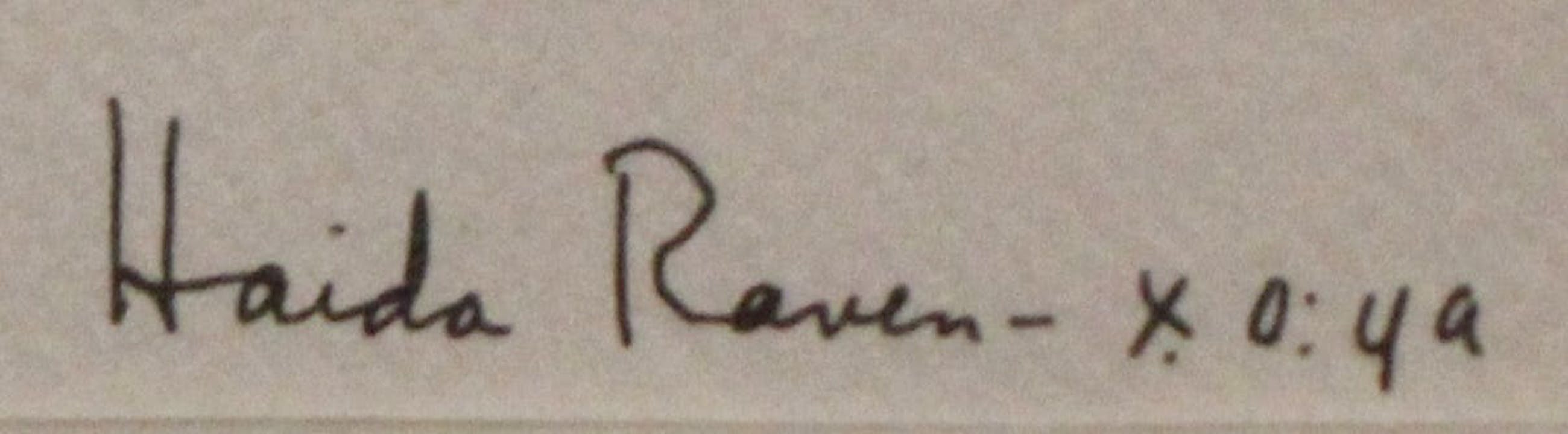 Een kleine ingelijste zeefdruk van de Canadese kunstenaar Bill Reid (1920-1998), naar een schilderij van de kunstenaar: Raven “Xuuya”. Jaar: 1972. Afmetingen incl lijst: H33 x 23cm. Afmetingen voorstelling: H11 x b11 cm. Het werk is rechtsonder, met potlood, gesigneerd door de kunstenaar. De authenticiteit van het aangeboden werk wordt volledig gegarandeerd. Een certificaat van echtheid kan, op aanvraag, worden gegarandeerd.