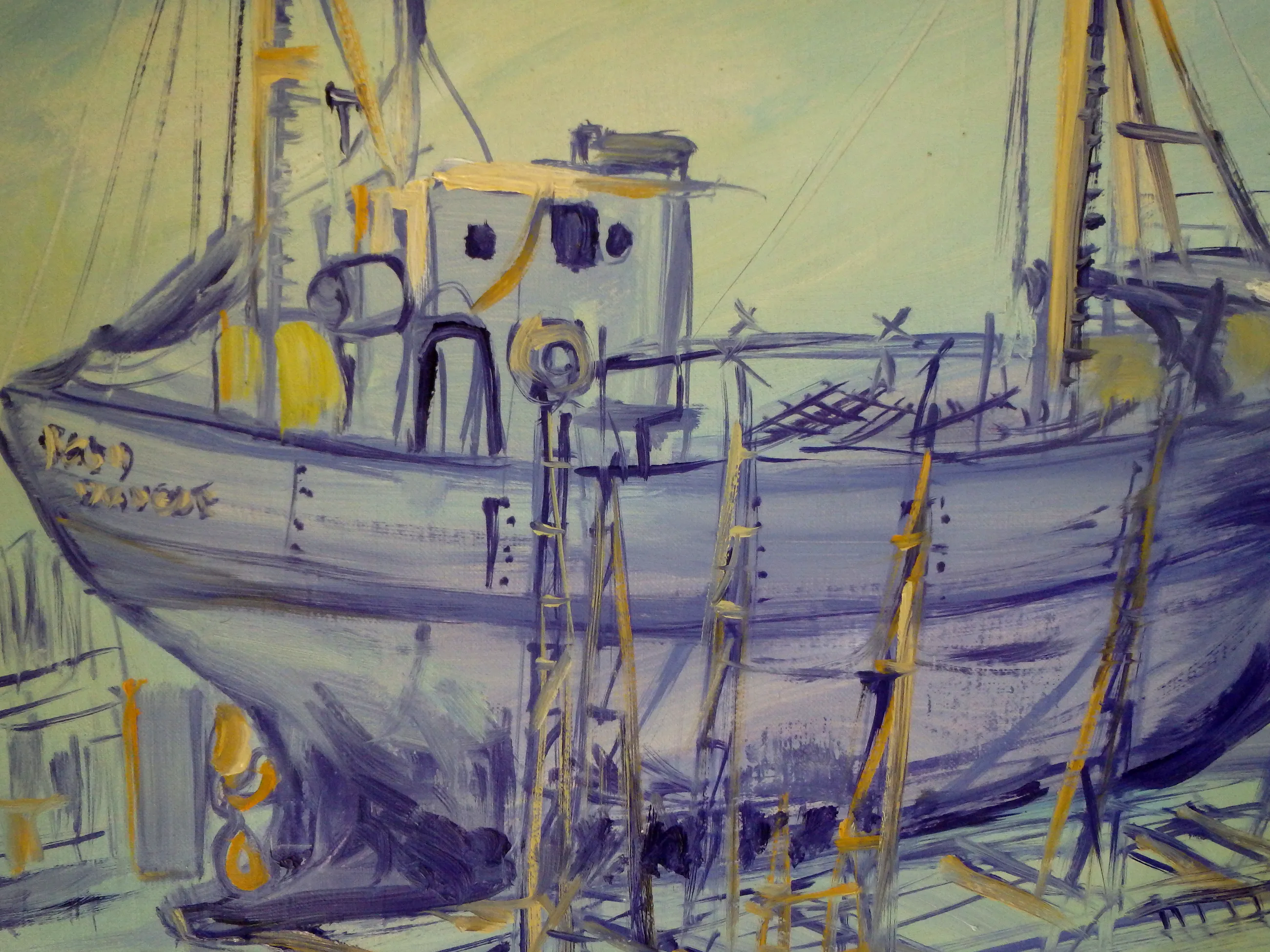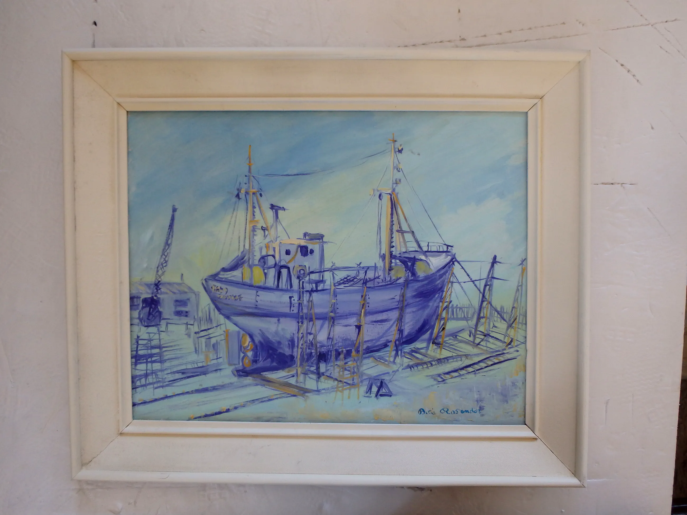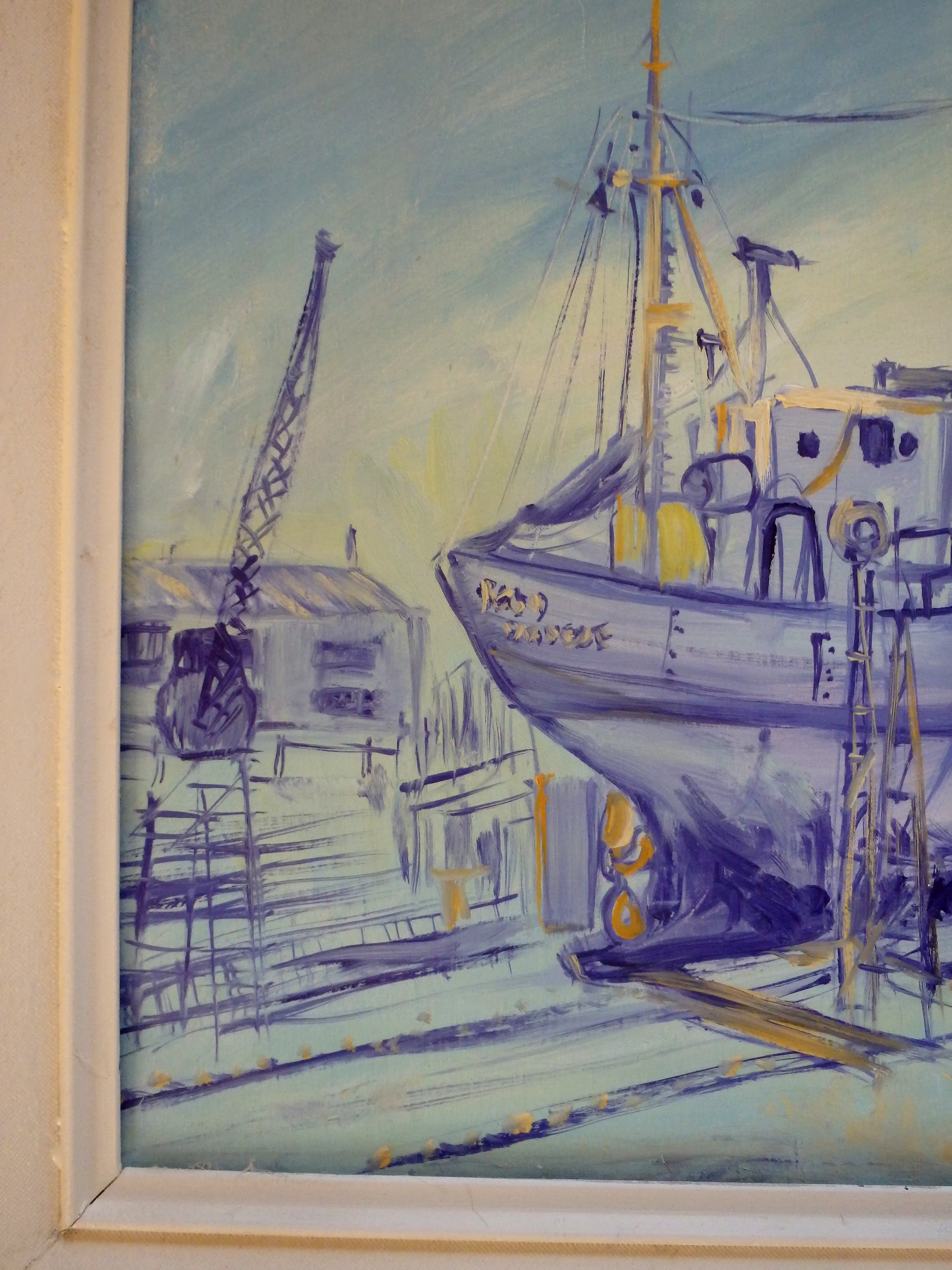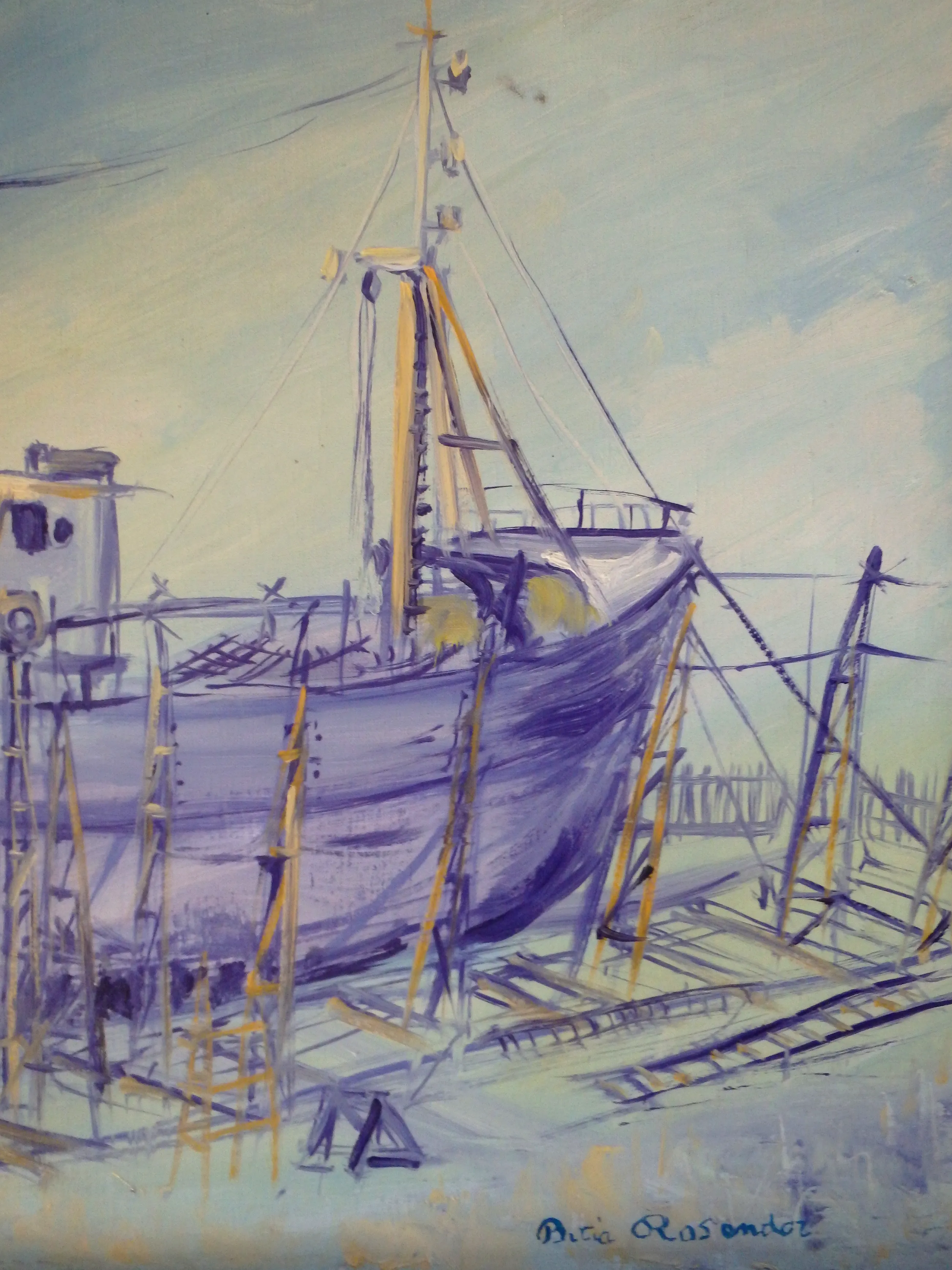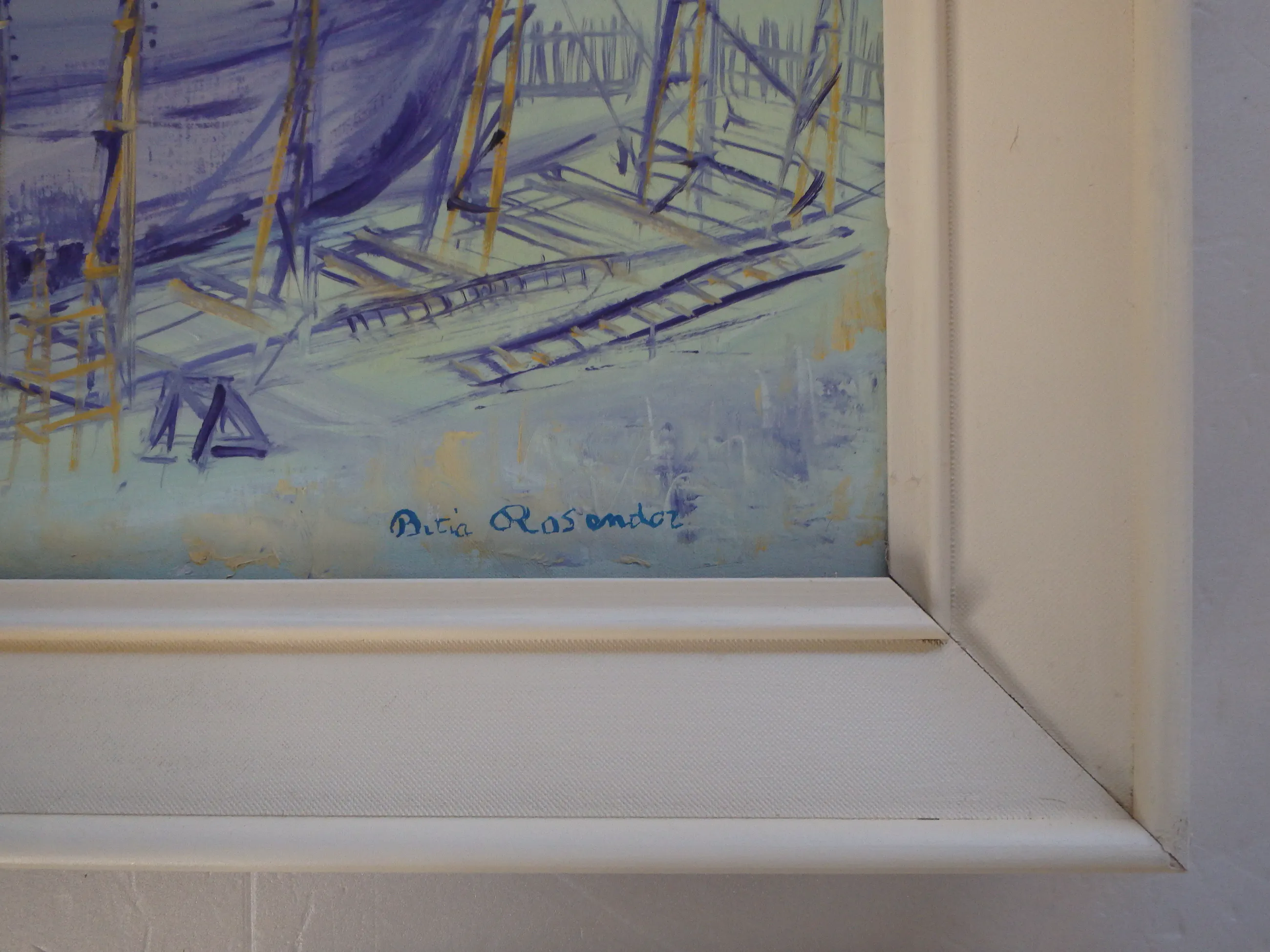 Olieverf op doek 40x50, rechtsonder gesigneerd Bitia Rosendor, geschilderd ca. 1960, lijst is opgeknapt, past ook wel bij het thema, maar heeft zijn beste tijd wel gehad.