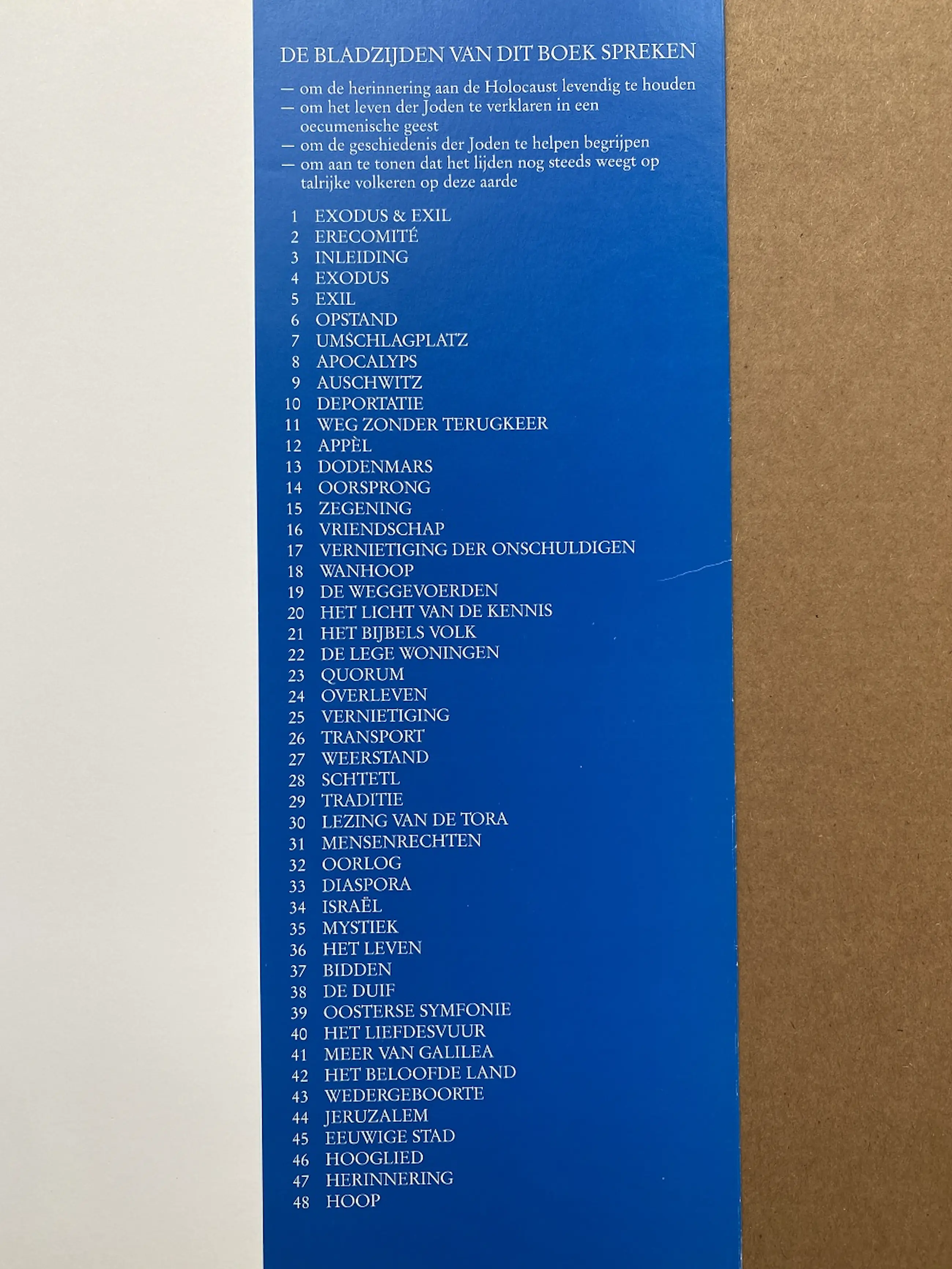Exodus & Exil: een pleidooi tegen de oorlog, het exil, het lijden, het vergeten. De schilderijen, grafiek, aquarellen en tekeningen in het boek verwijzen naar bepaalde aspecten van de Joodse traditie en geschiedenis die doorgaans minder gekend zijn.