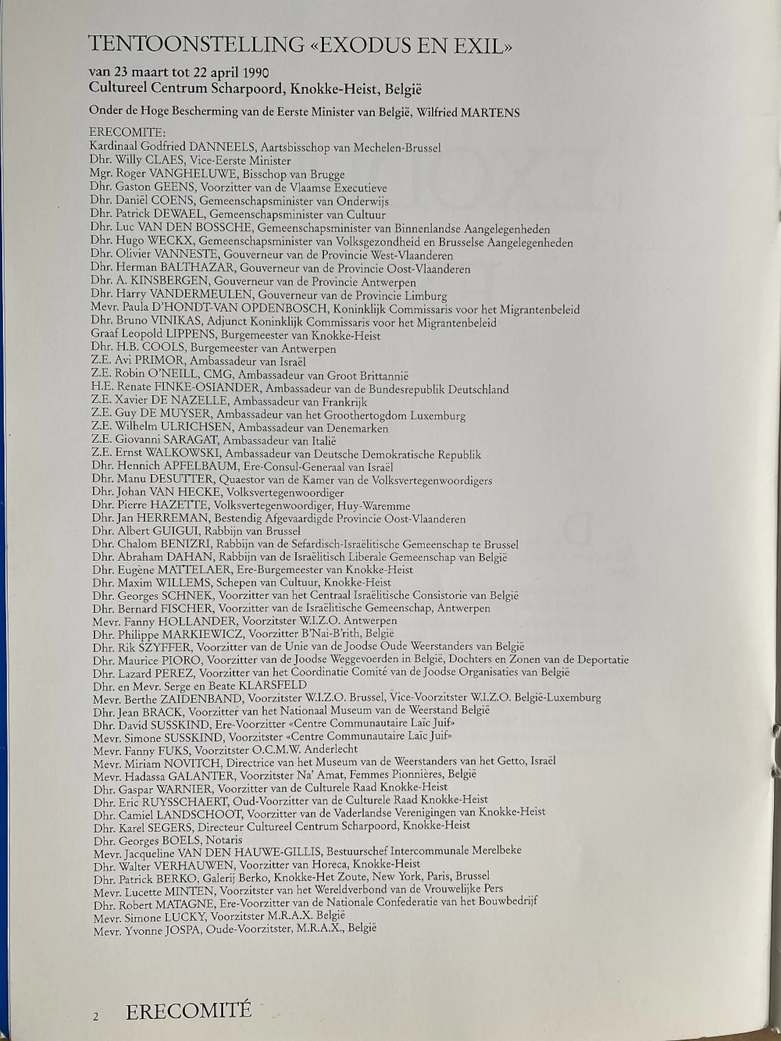 Het kunstwerk maakte deel uit van een thematentoonstelling 'Exodus & Exil' over: "de tragische gebeurtenissen, die zich tijdens Wereldoorlog II afgespeeld hebben en vooral het Joodse Volk troffen".