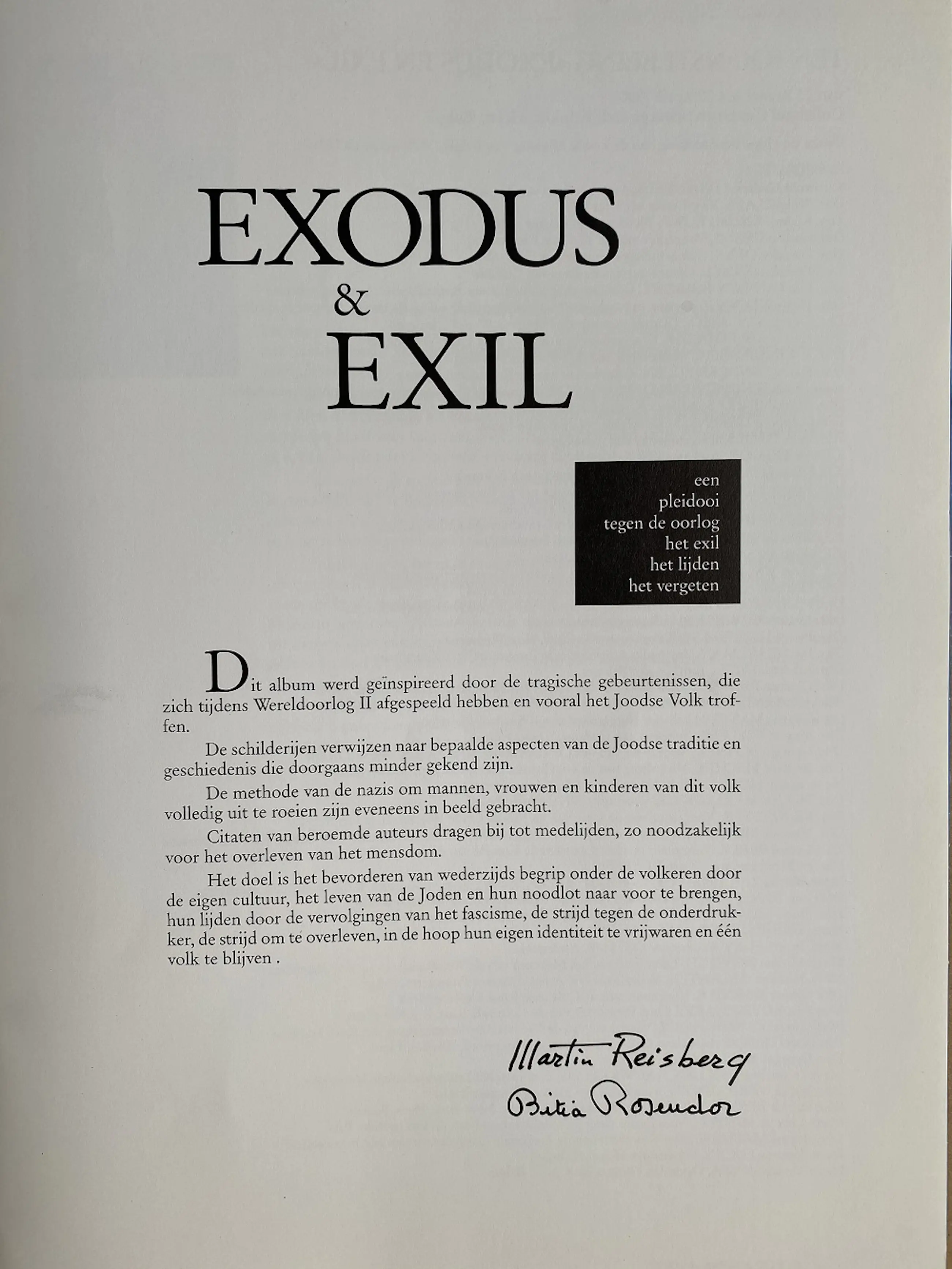 Martin Reisberg en Bitia Rosendor, Exodus & Exil: een pleidooi tegen de oorlog, 1990.