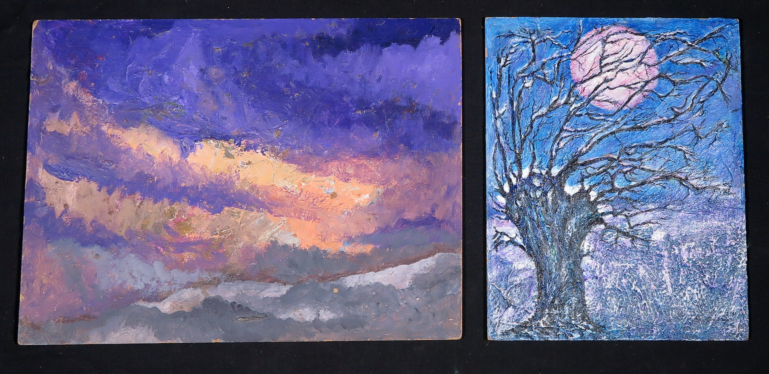Lot van twee werken waarvan de kleinste van Rita Rosendor is en het grotere werk van Martin Reisberg (niet gesigneerd). Bovenstaande afmetingen zijn van het grootste werk, het kleinere werkje is 30x24cm.