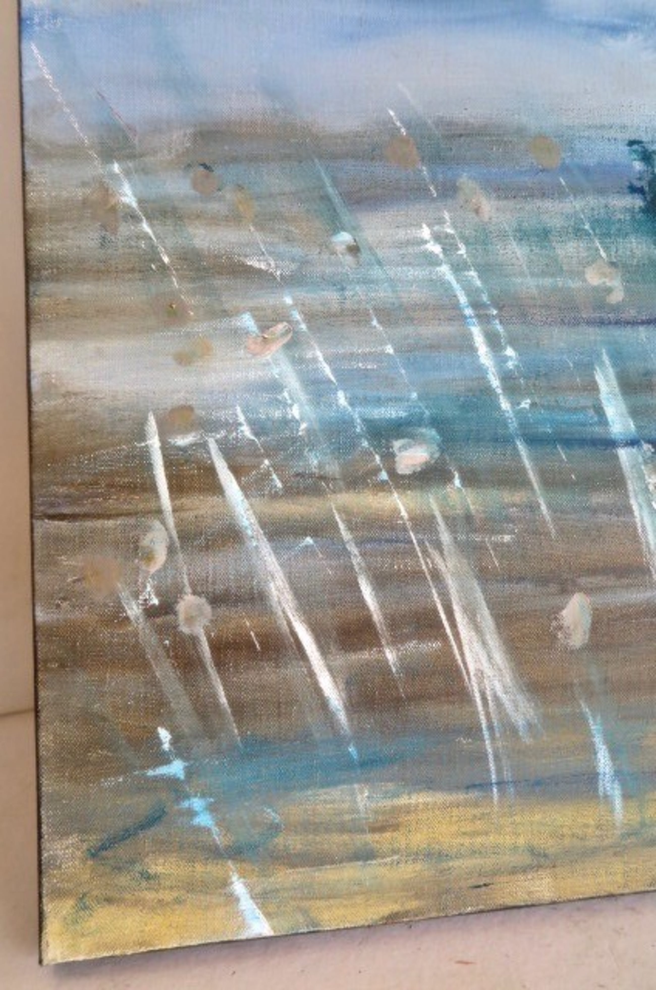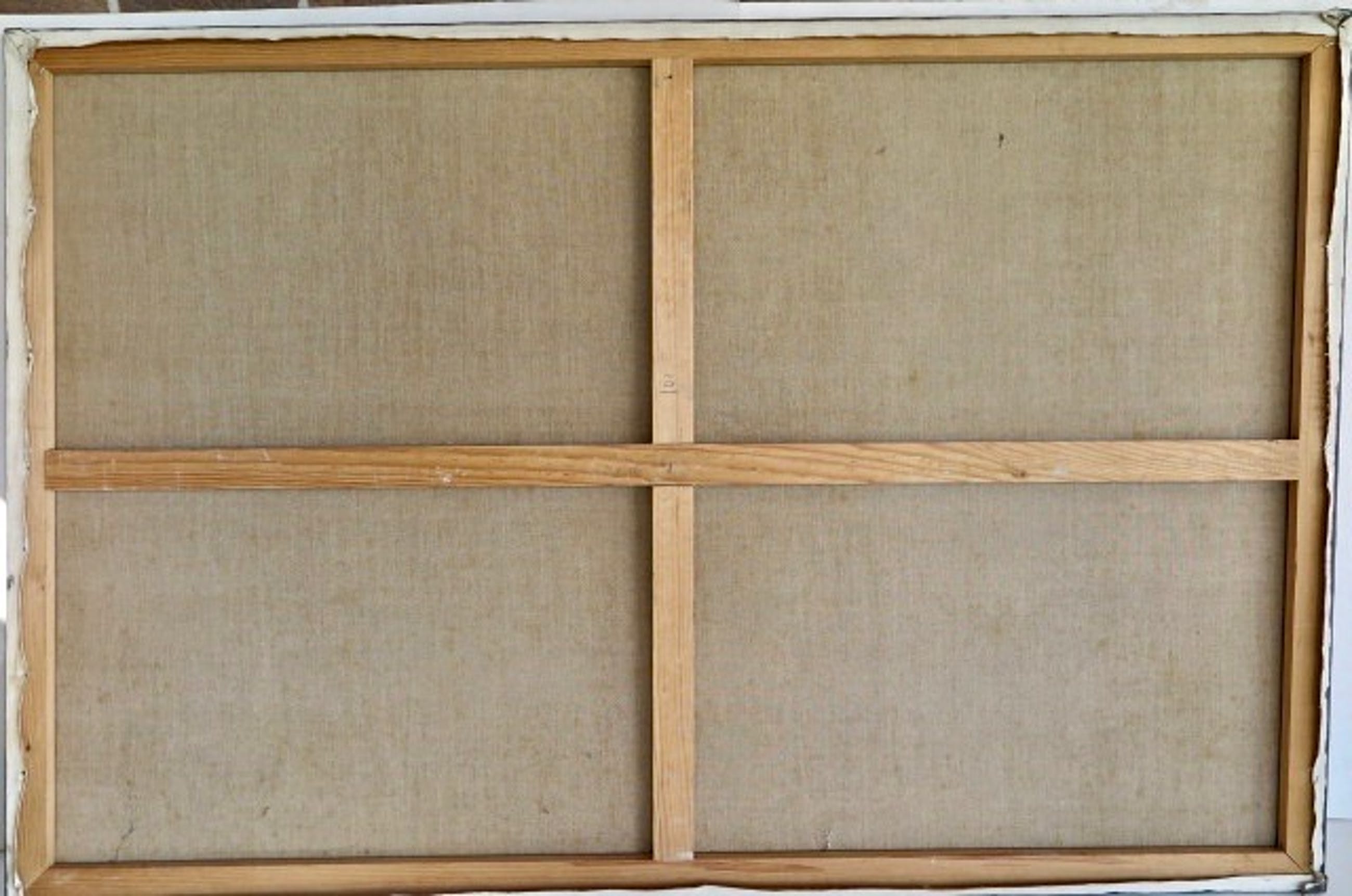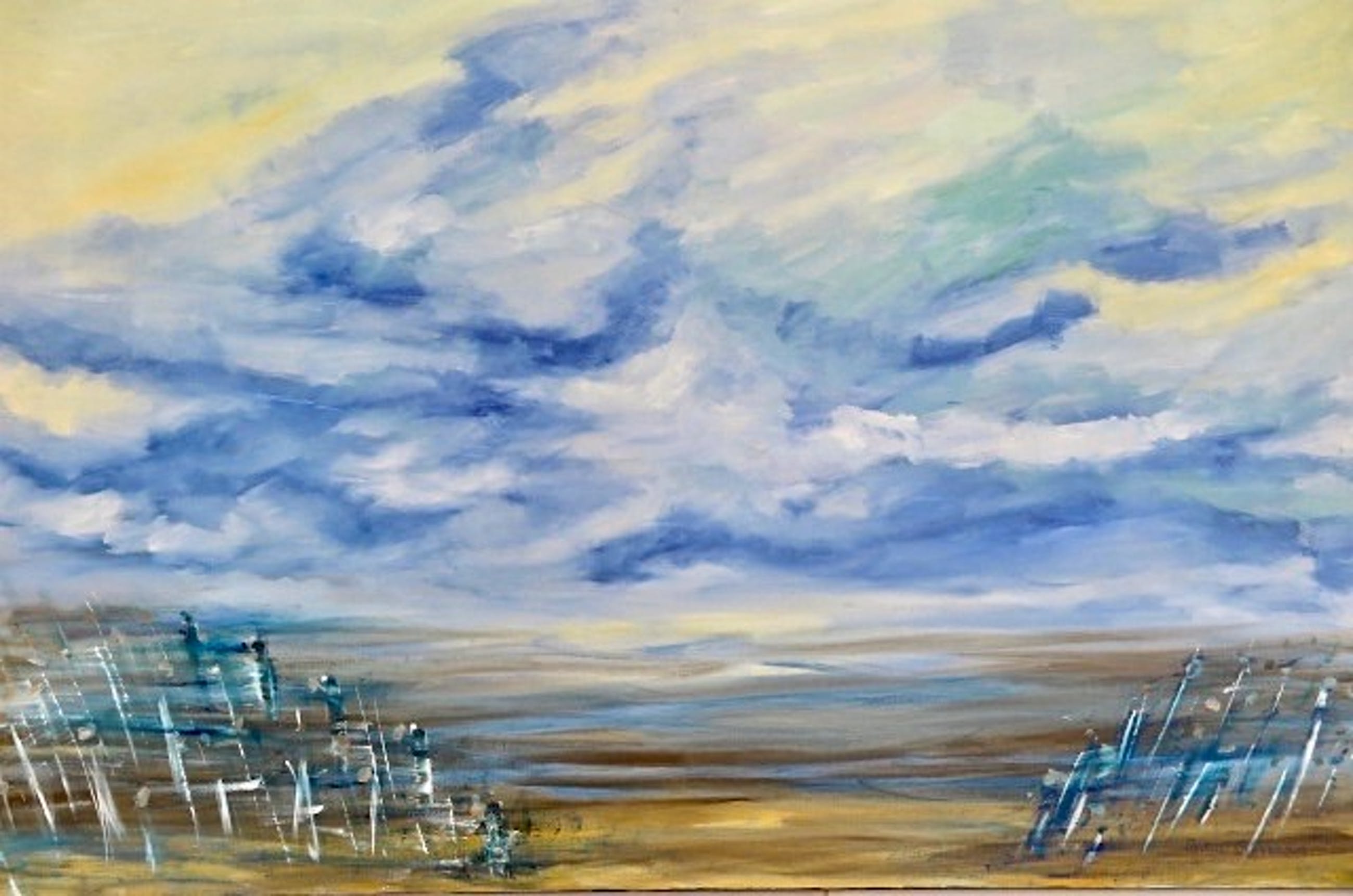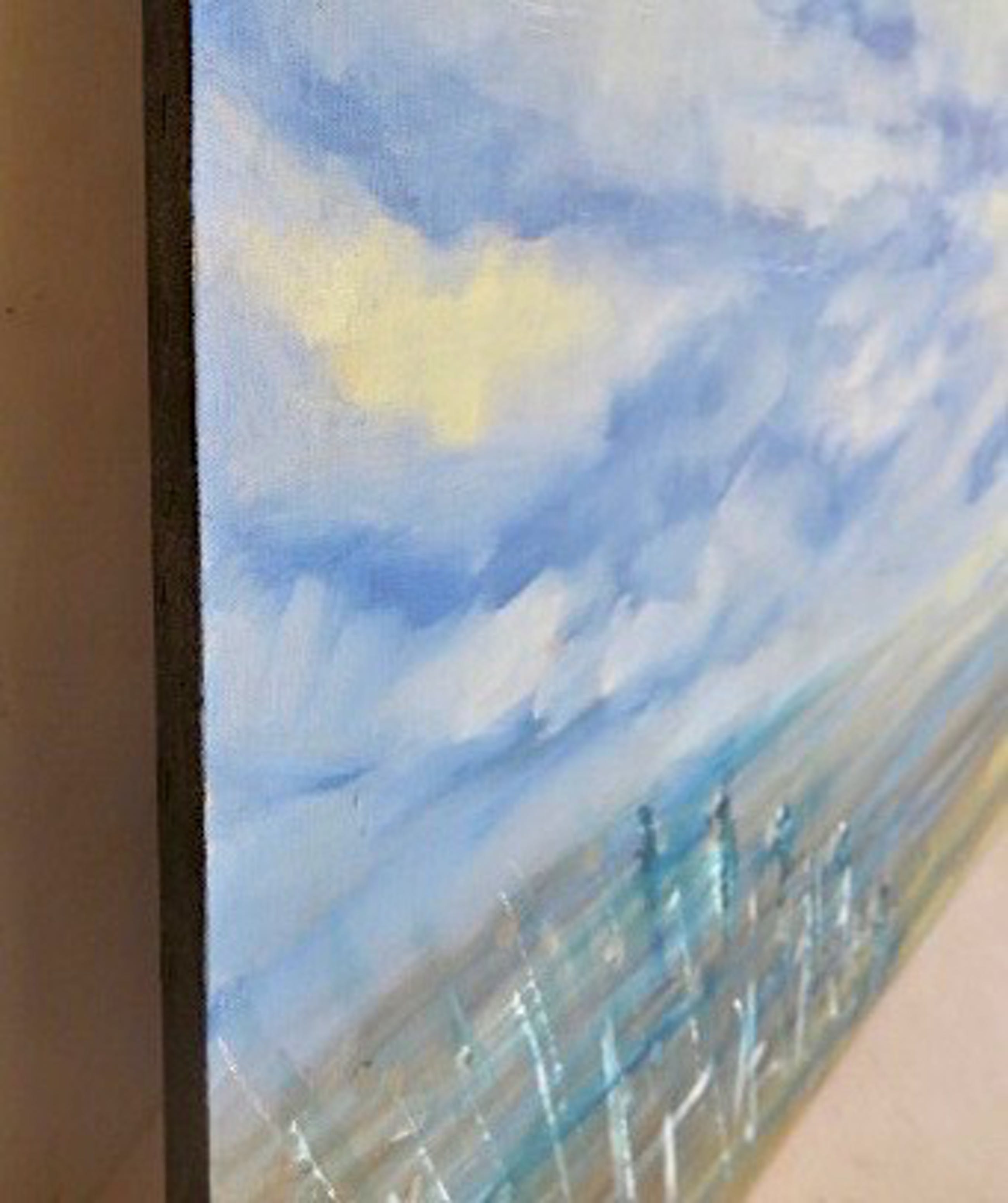 Doek op spierraam. Gemengde techniek olieverf acryl. De zijkanten zijn zwart geschilderd. Een lijst is niet nodig/gewenst.