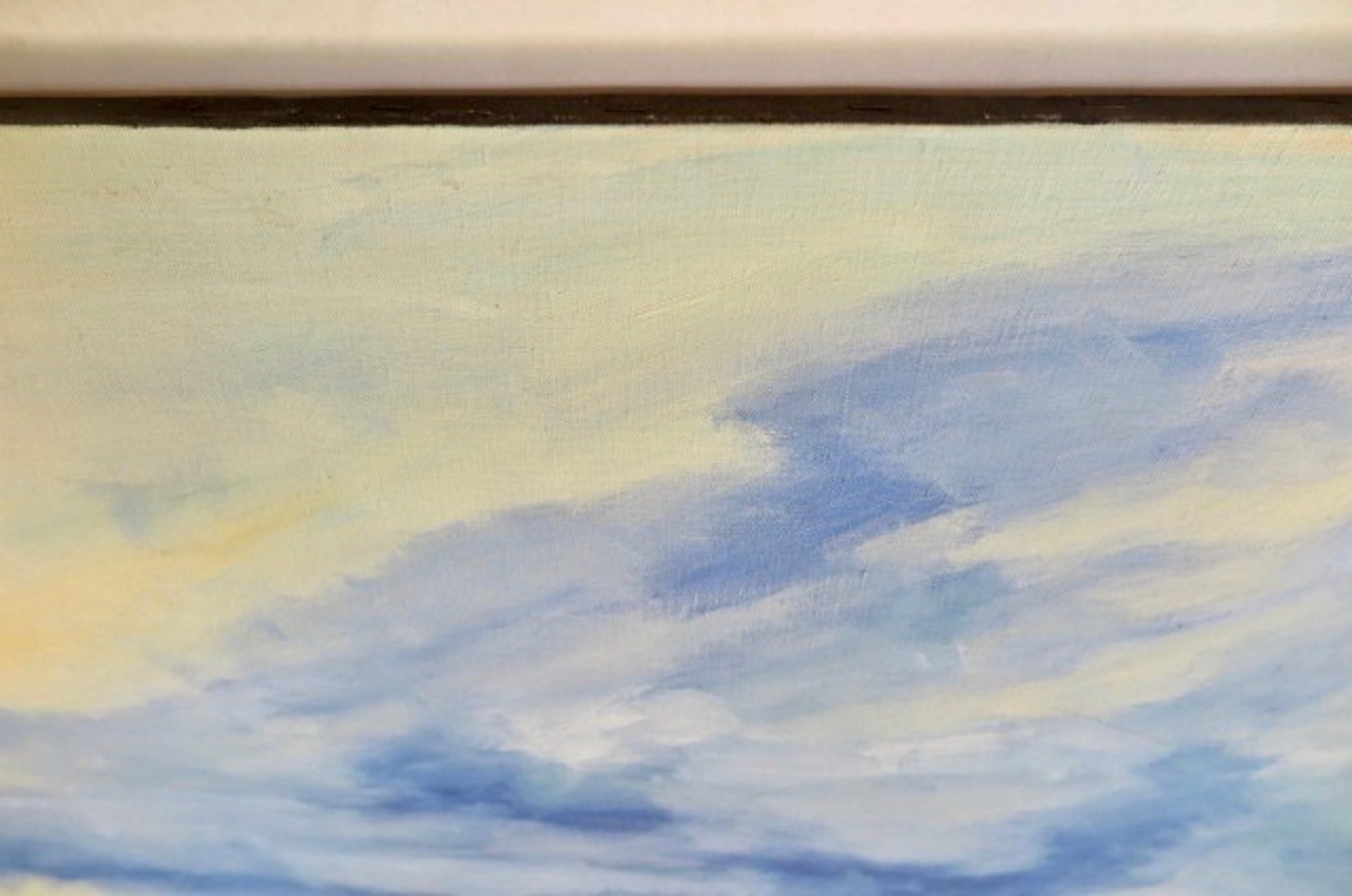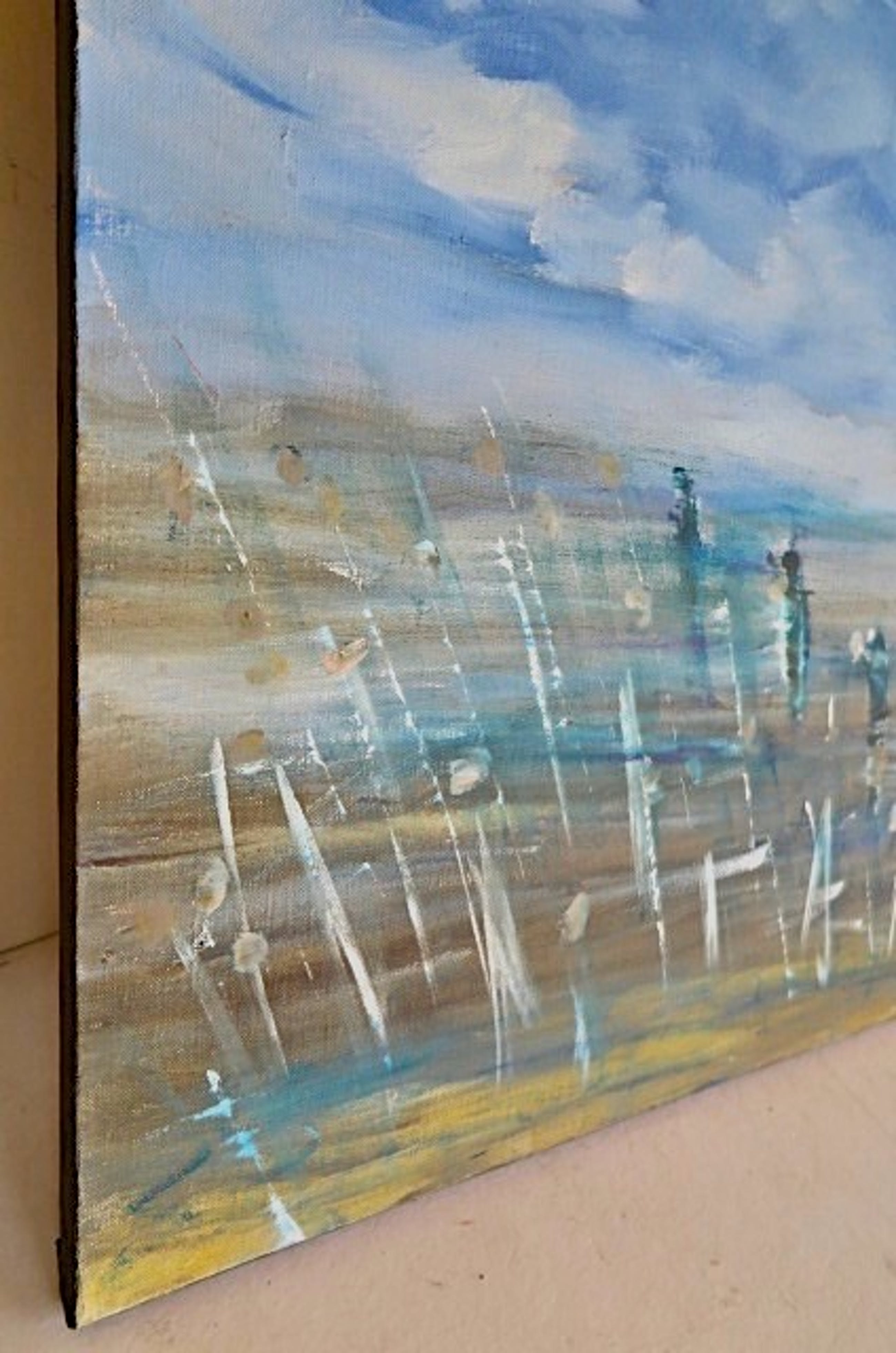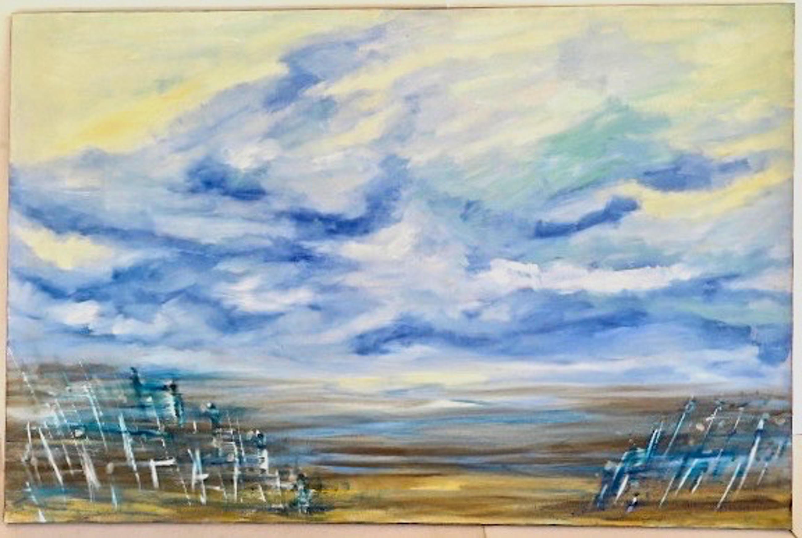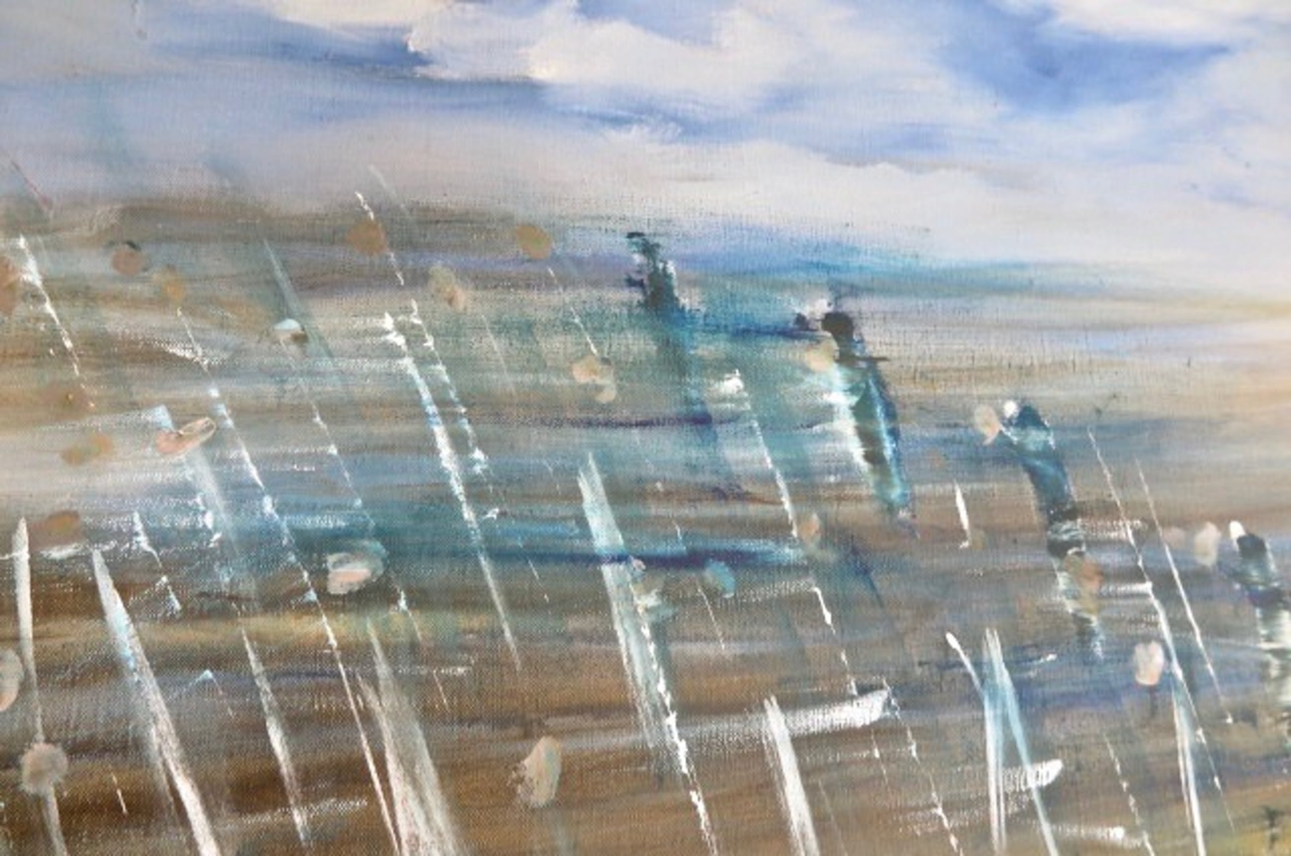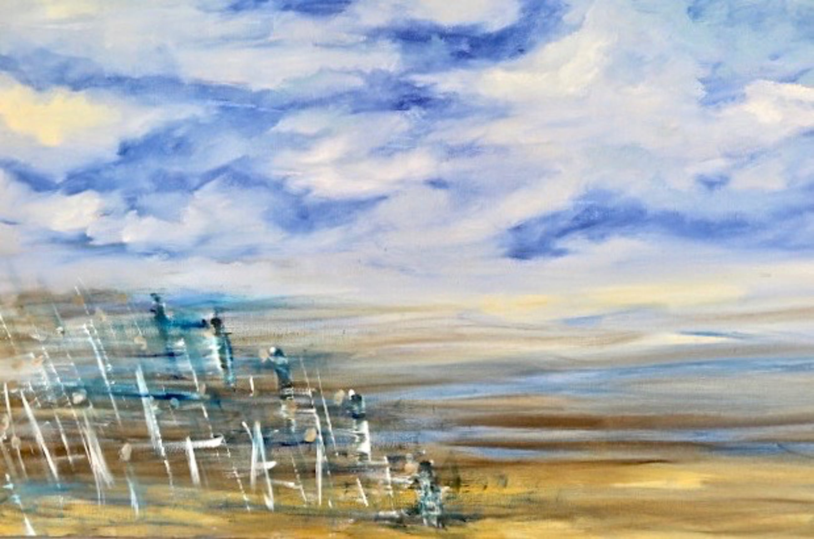 Doek op spierraam. Gemengde techniek olieverf acryl. De zijkanten zijn zwart geschilderd. Een lijst is niet nodig/gewenst.