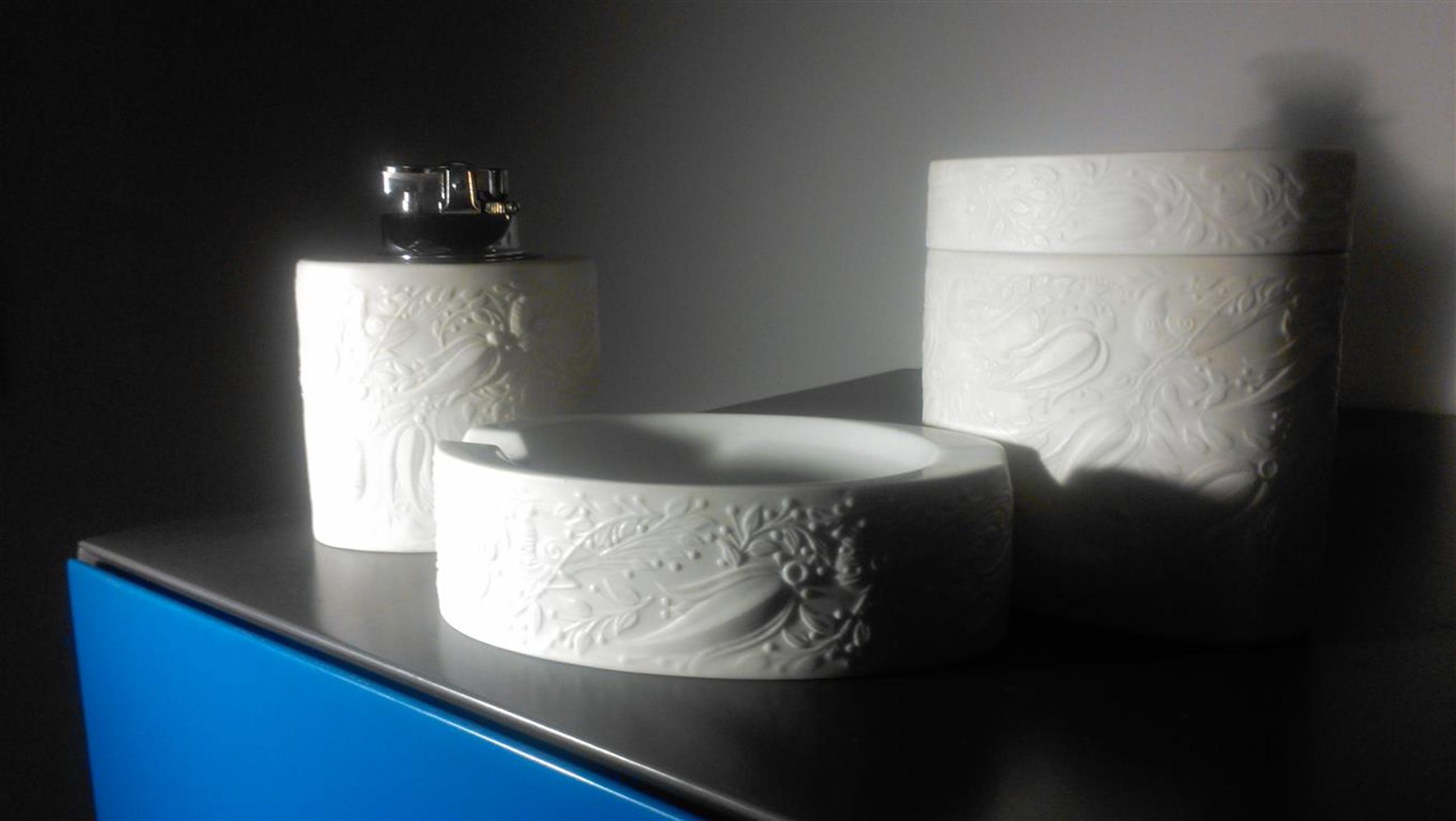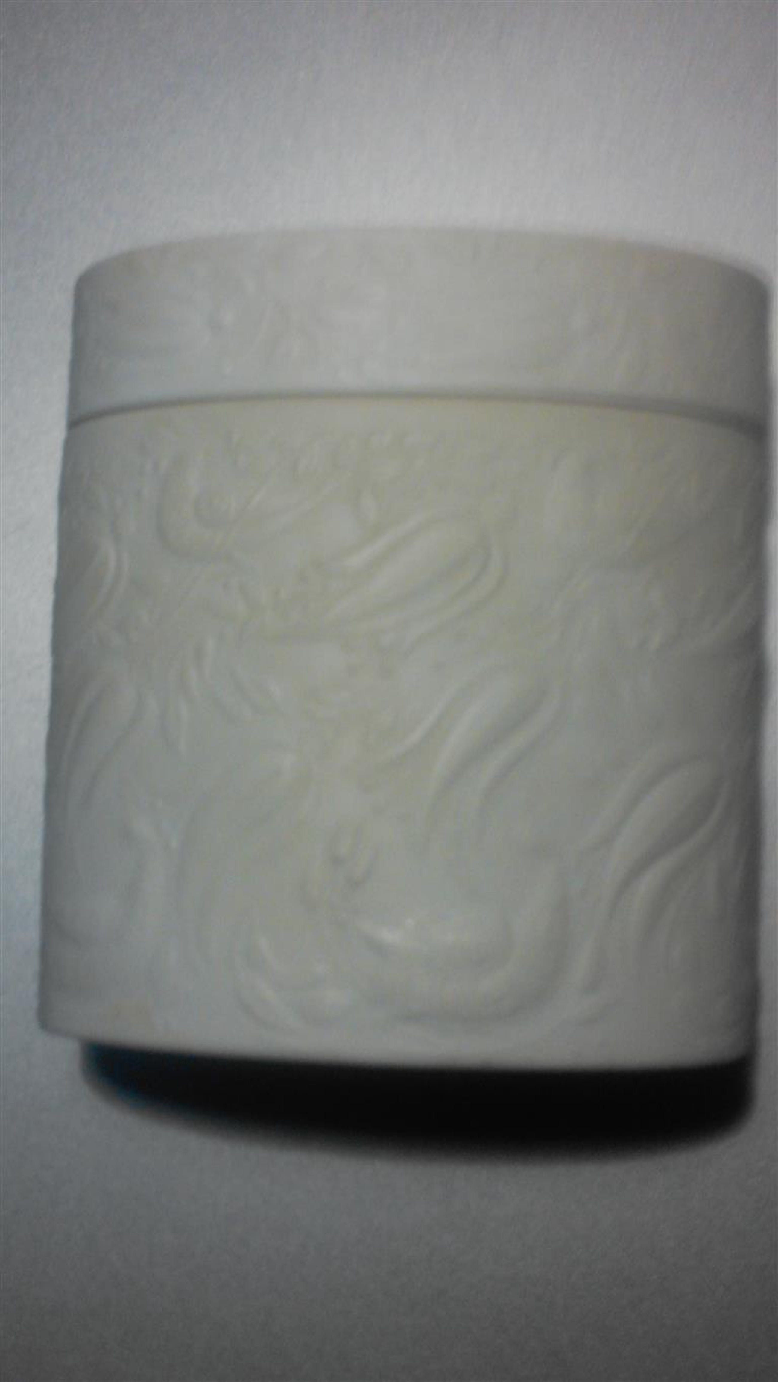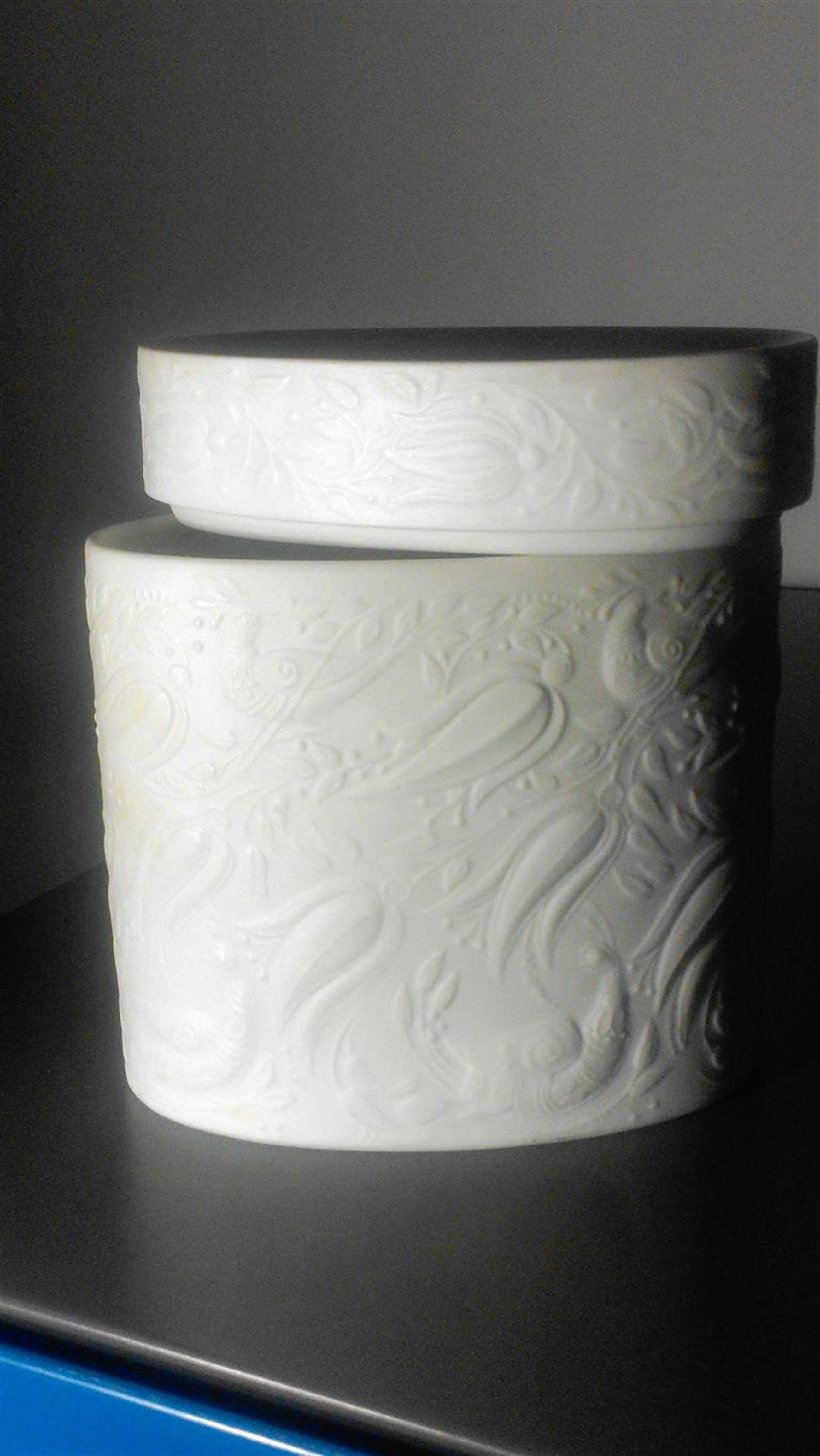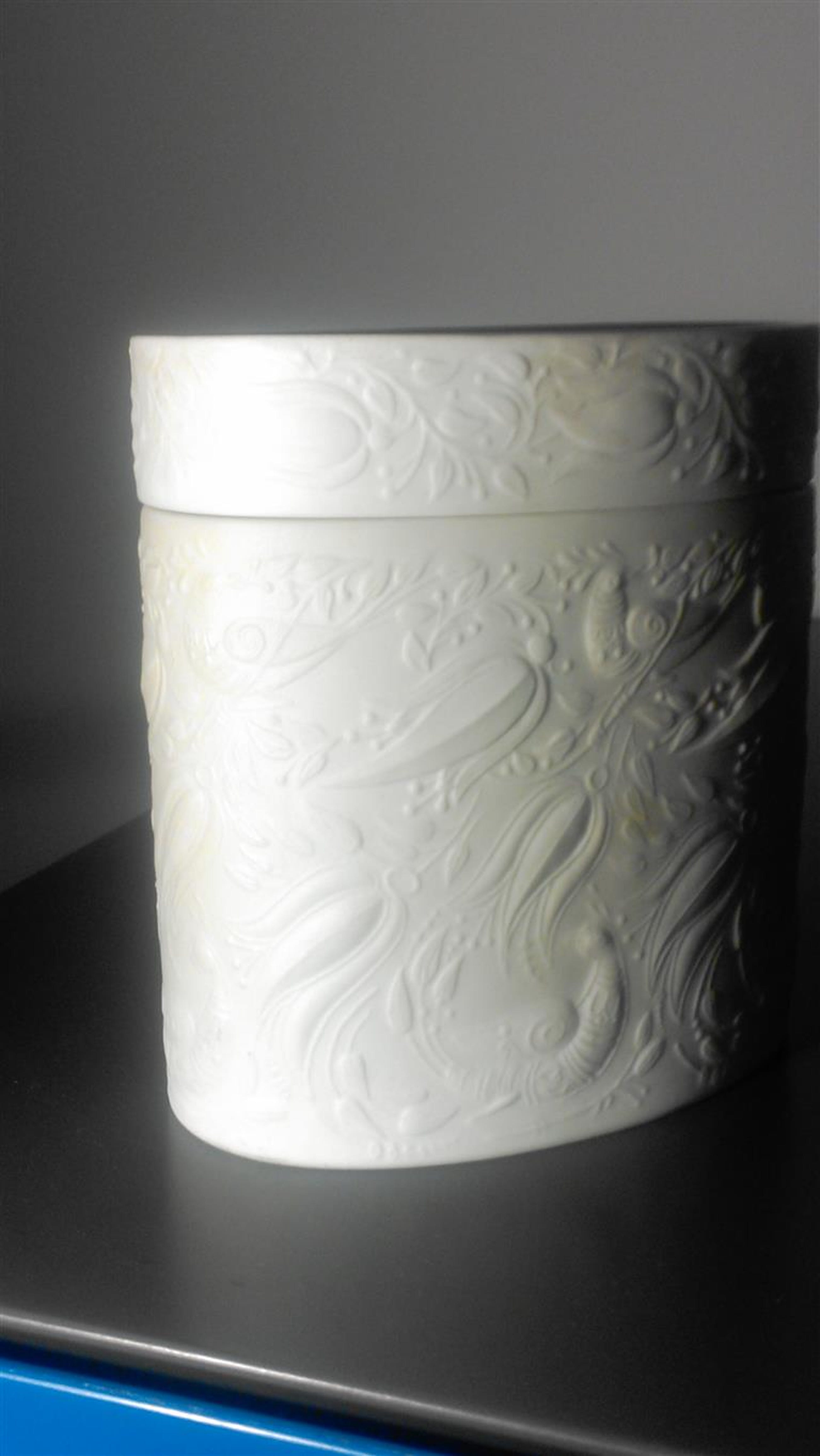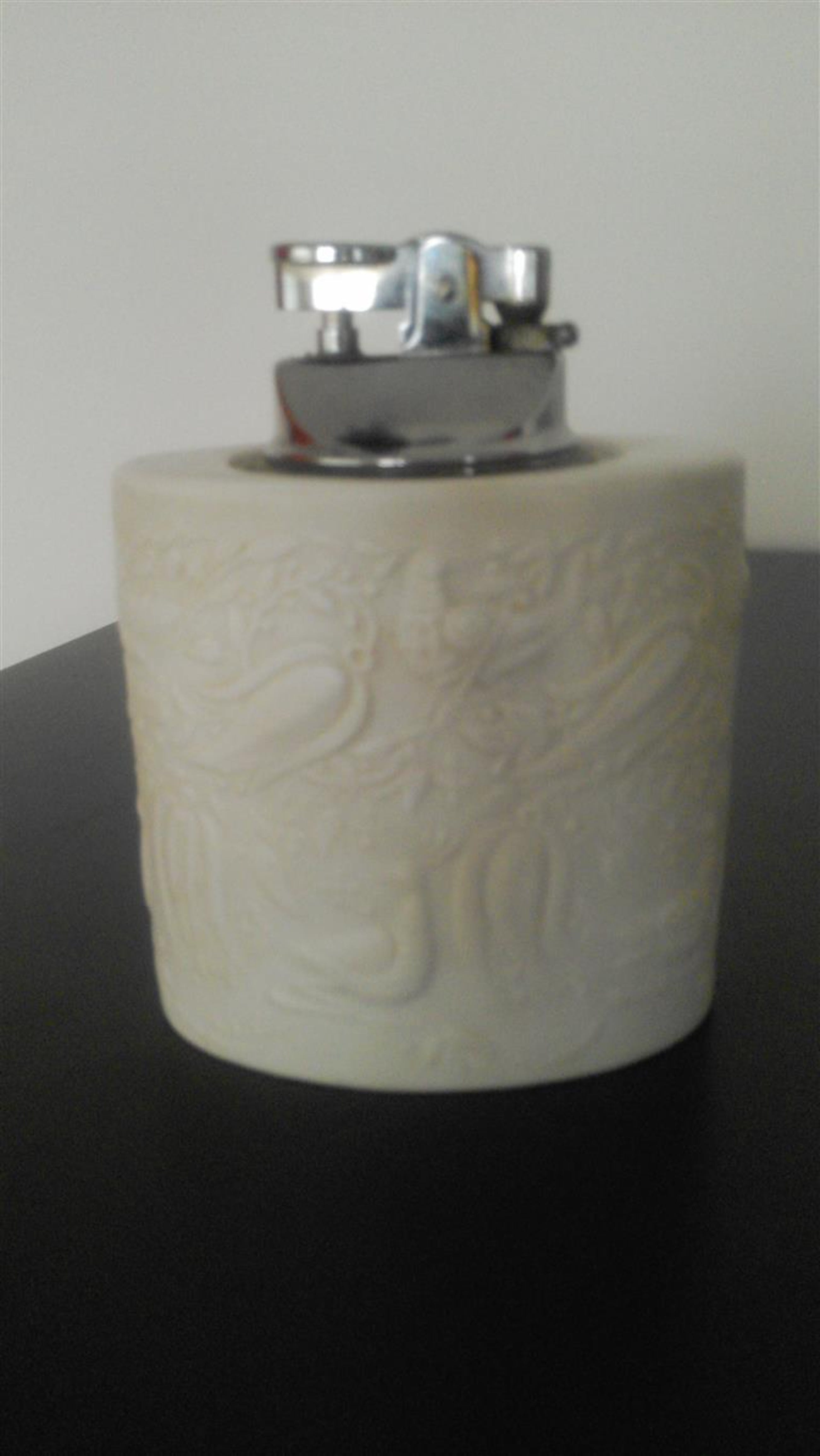 Gemaakt in wit biscuit porselein door Rosenthal De set bestaat uit asbak, aansteker en sigarettendoosje met deksel