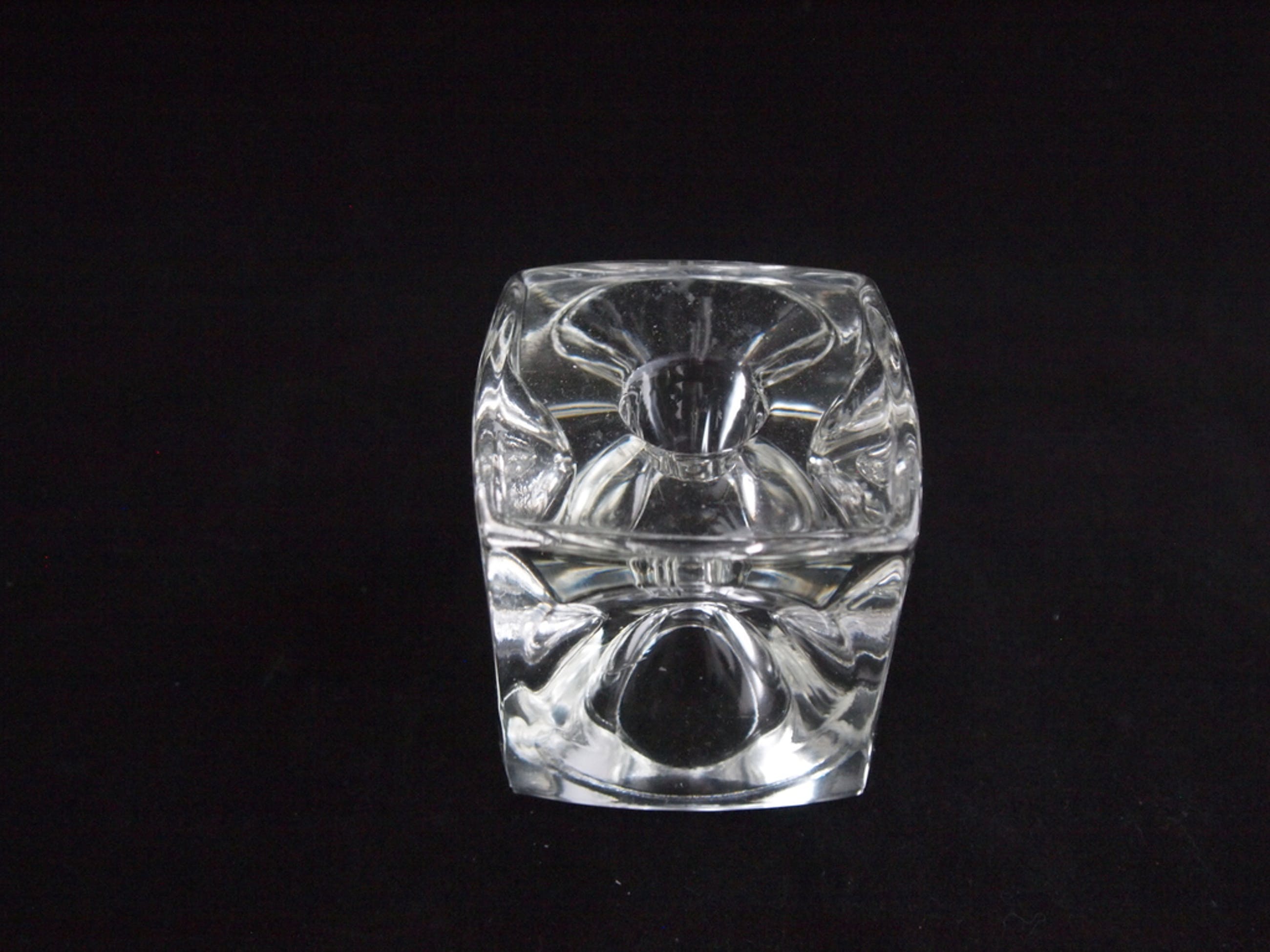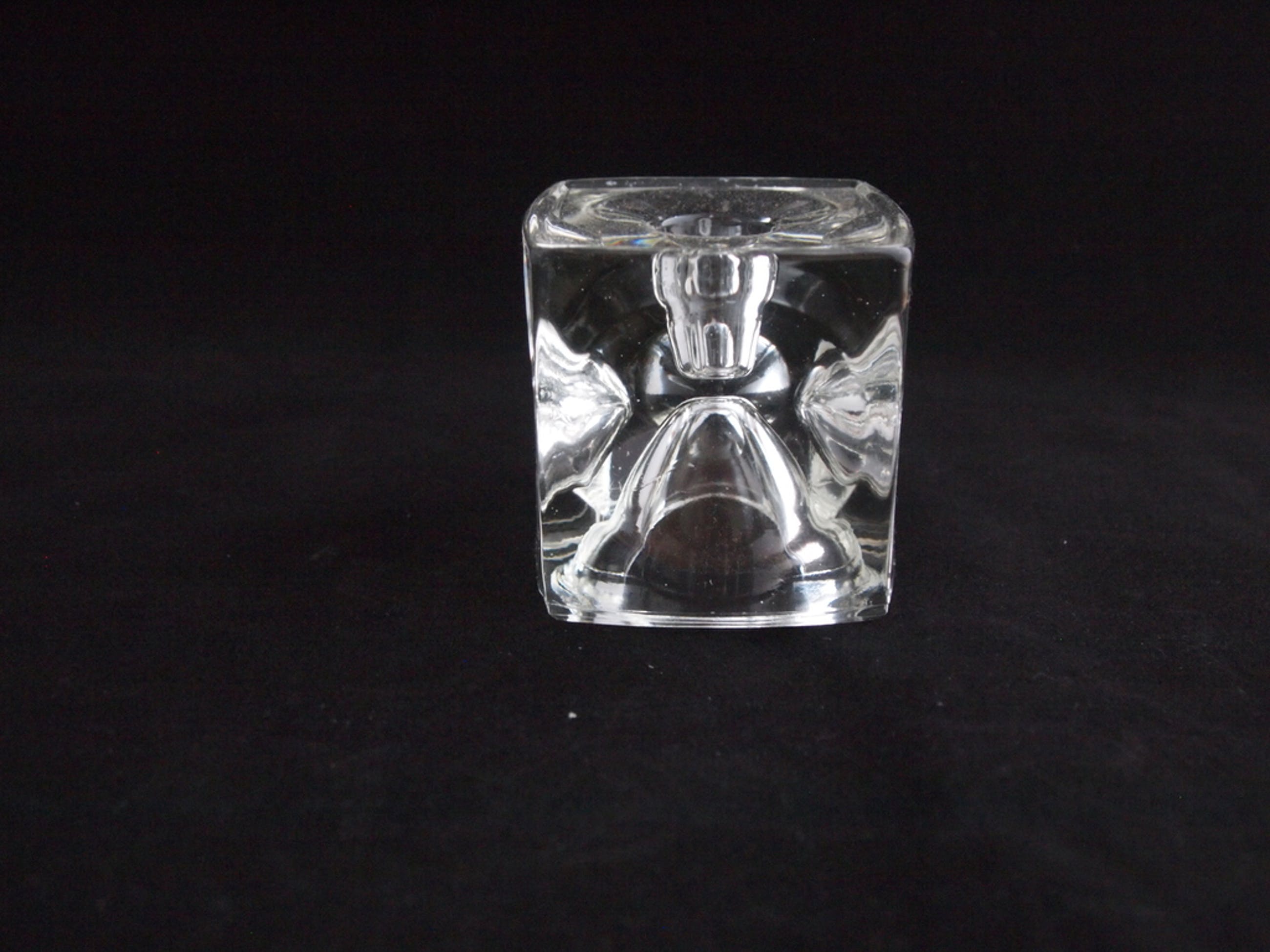 Blank glazen kaarsenstandaard "Cube", ontwerp Rudolf Jurnikl voor Rudolfova Hut, Sklo Union in 1965. In prima onbeschadigde conditie. Niet gemerkt.