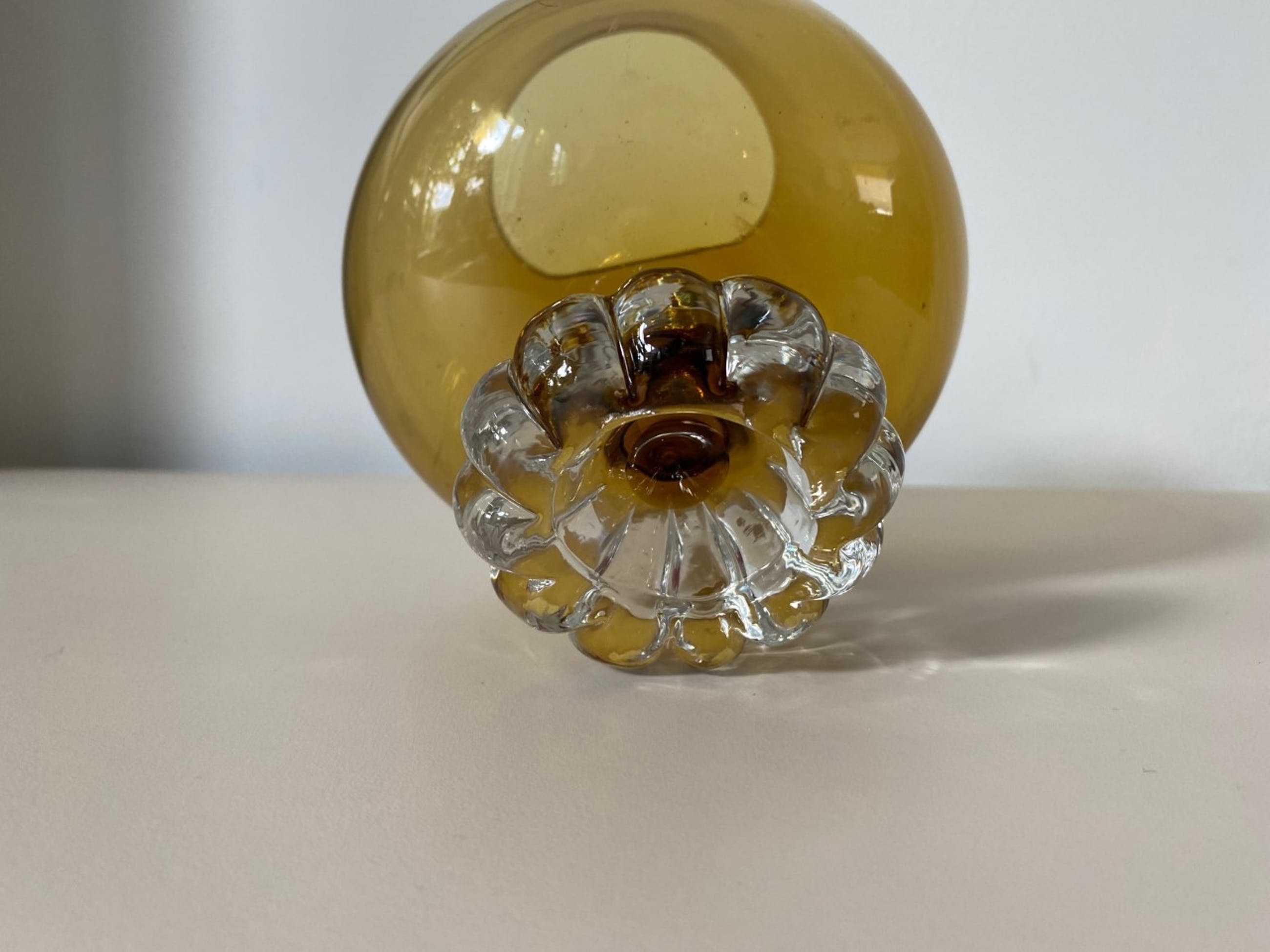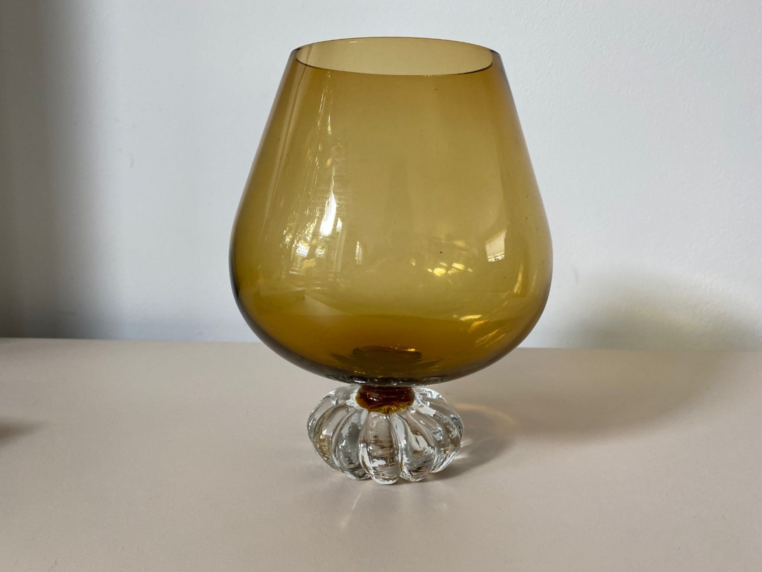 Amber glazen bokaalvaas op voet ontworpen door Bo Bergstrom in de jaren'60 voor Aseda Glasbruk uit Zweden. In zeer goede onbeschadigde conditie.
