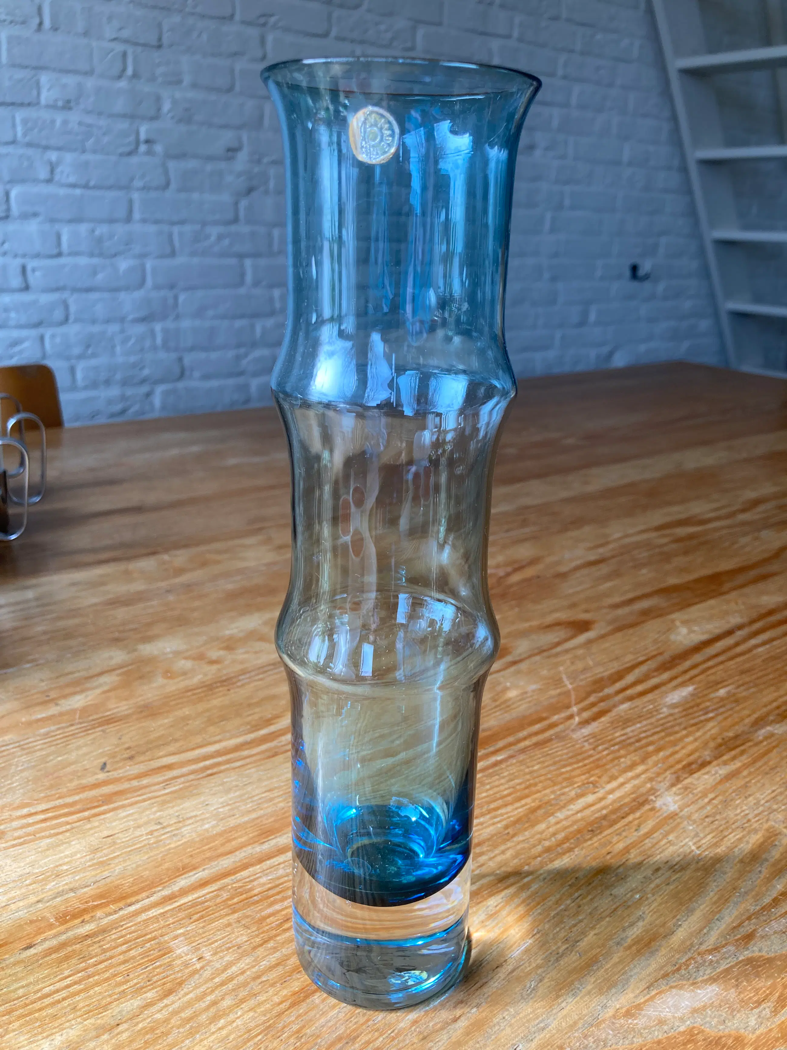 Fantastische kunst glazen vaas van Bo Borgström voor Åseda Zweden. Dit stuk heeft een mooie blauwe kleur.