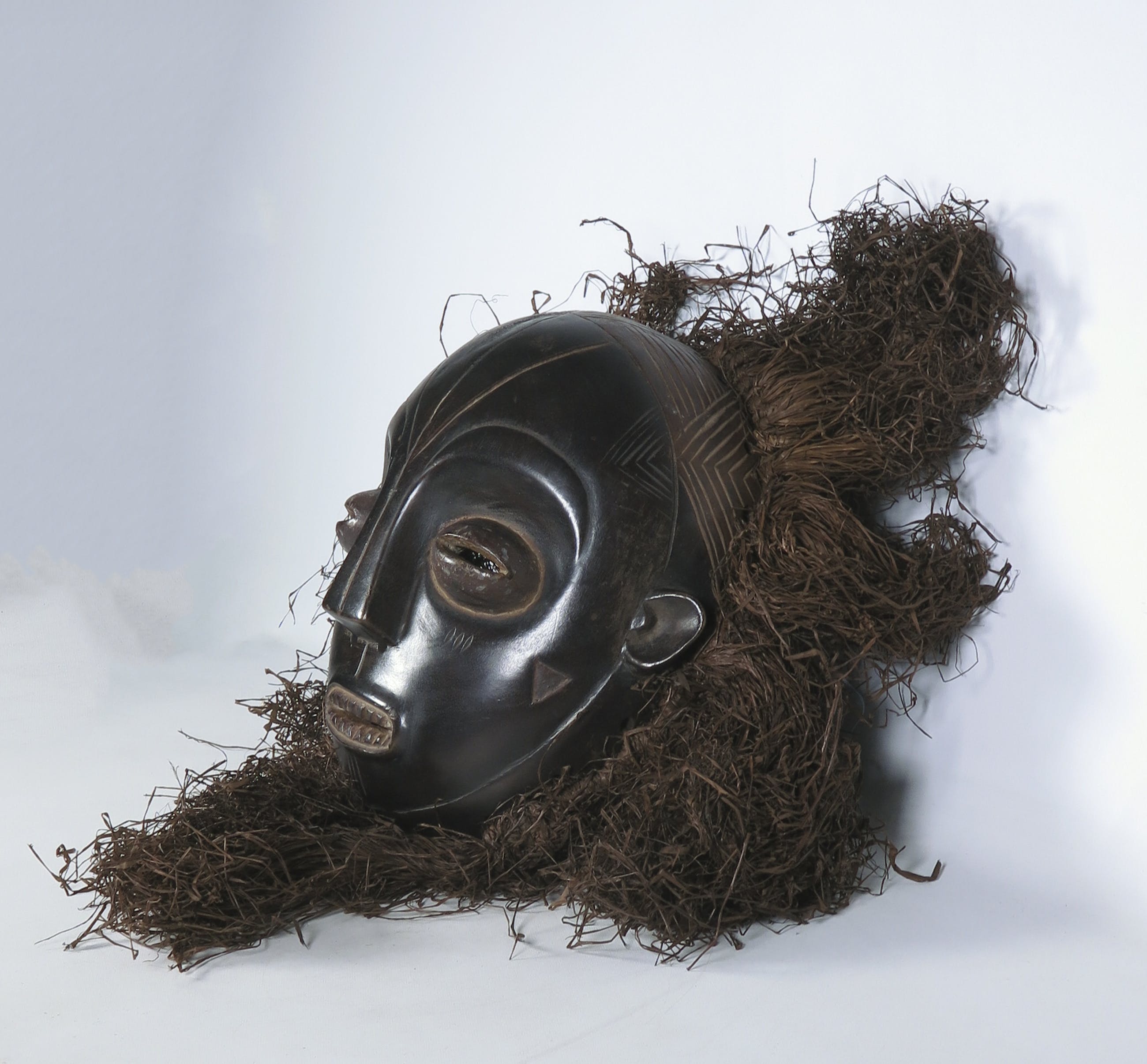 Het item heeft wat slijtage/ gebruikssporen, zie ook afbeeldingen. Het raffiahaar is naar de binnenzijde van het masker gevouwen. | |